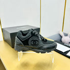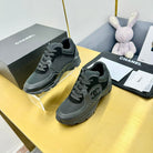 cc womens sneaker in black wool tweed and suede calfskin 137612
