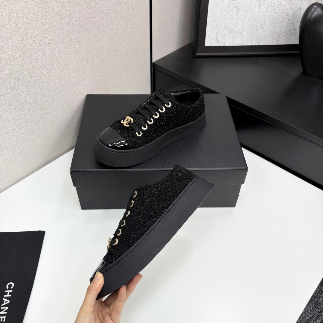CC25 Lace-up Sneakers Black Fabric And Patent Leather 352501