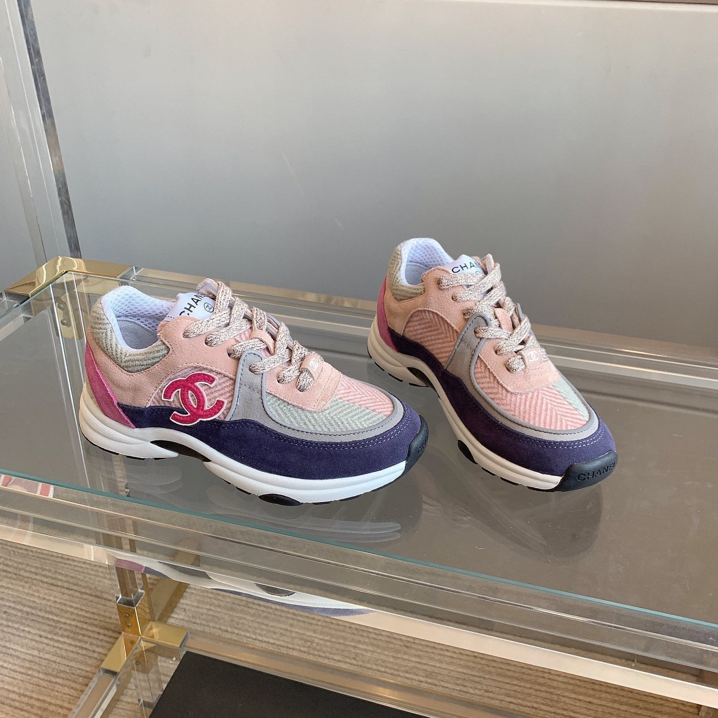 cc womens sneaker in black white wool tweed and light purple suede calfskin 137579