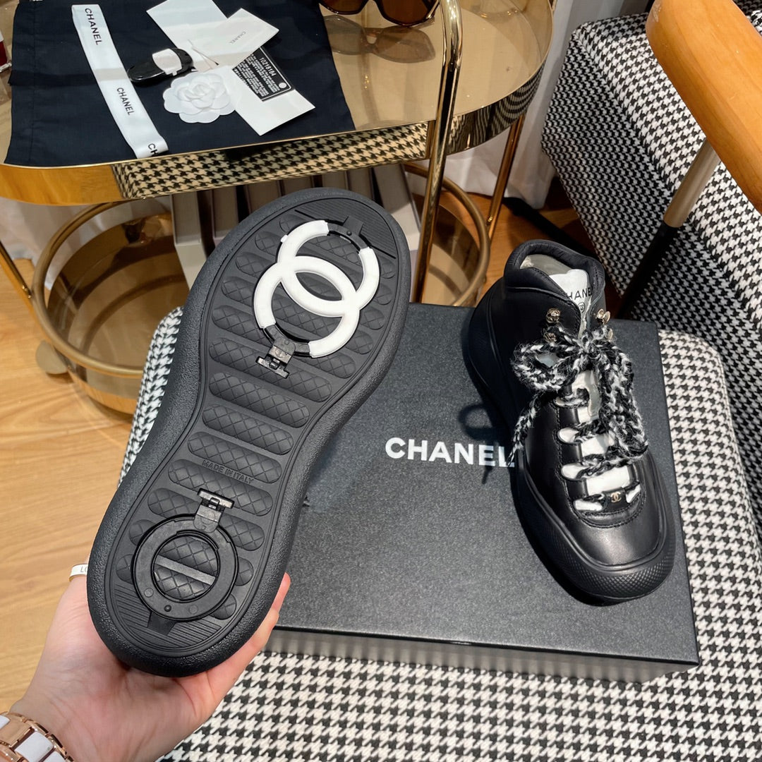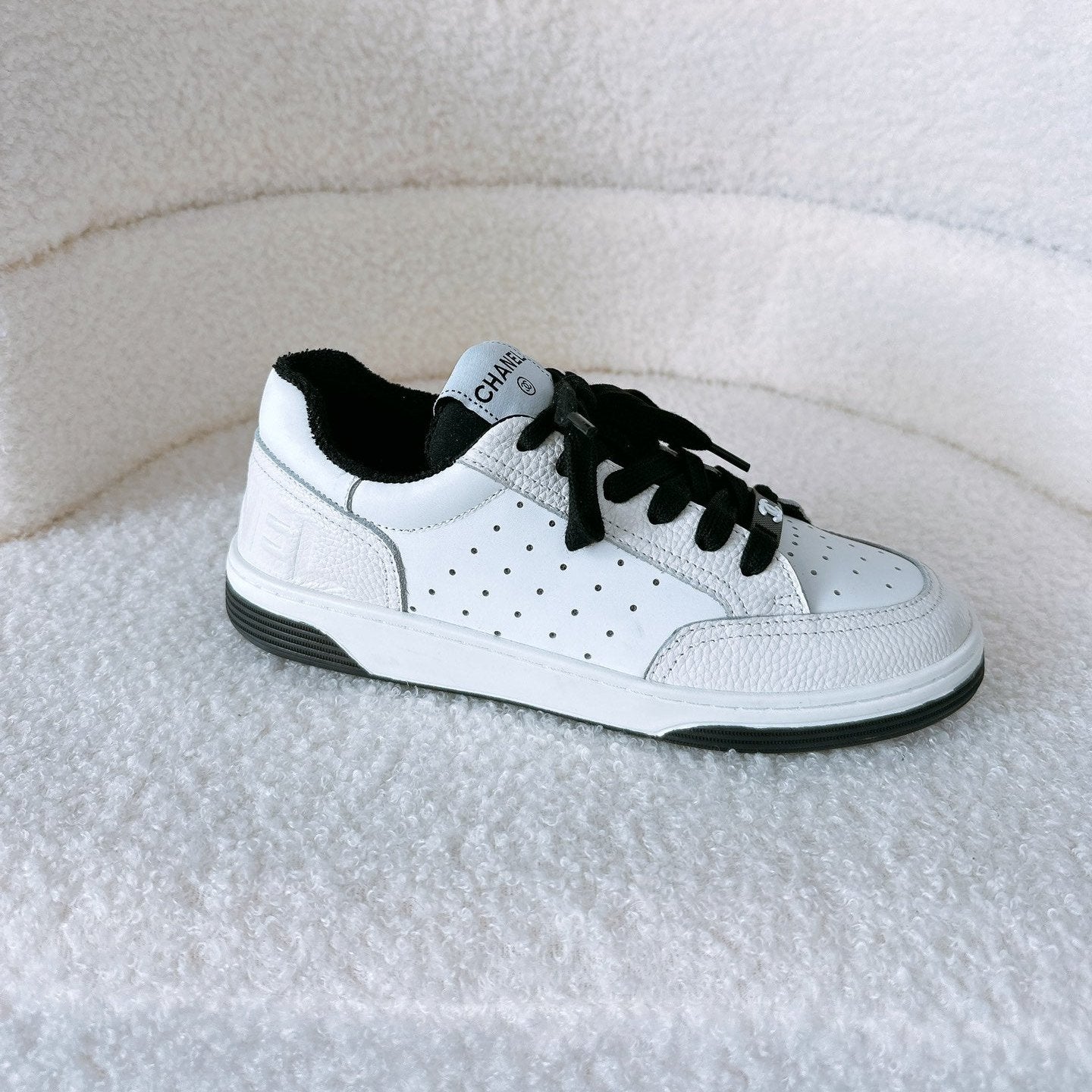 CC Sneaker White Cowhide Black Wool Lining