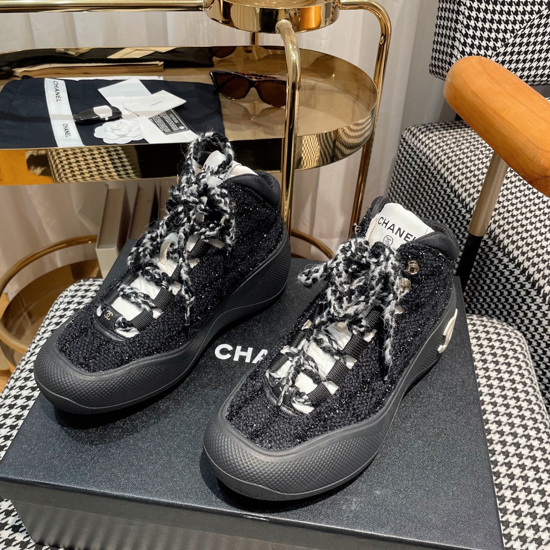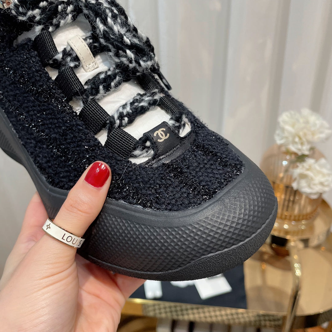CC Sneaker In Black Tweed Fabric 144805
