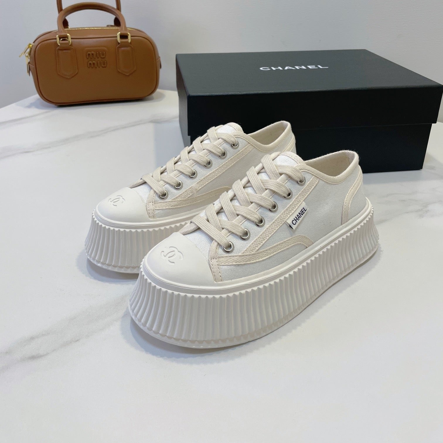 CC Sneaker White Fabric And Lambskin