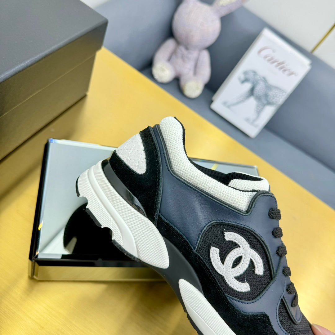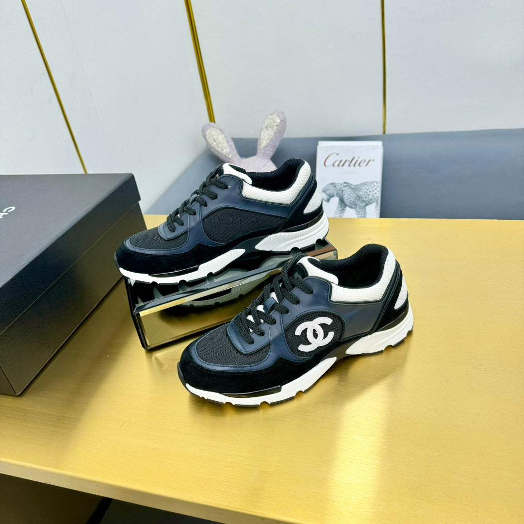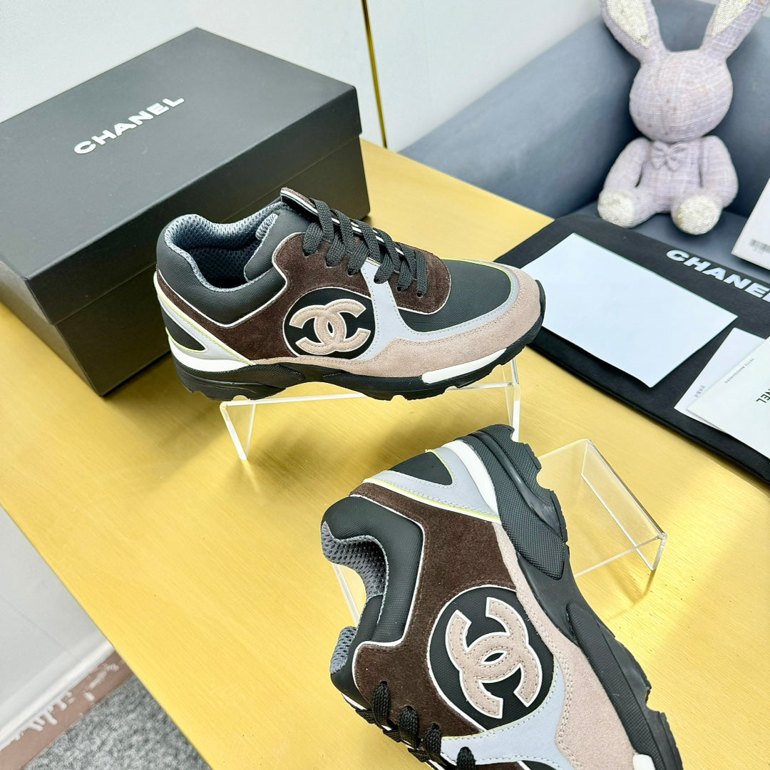 cc womens sneaker in black white calfskin and beige brown suede 137614