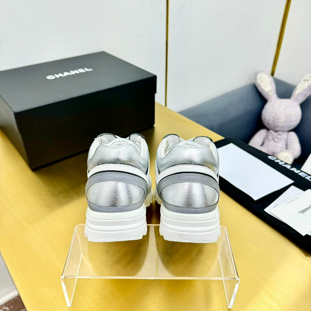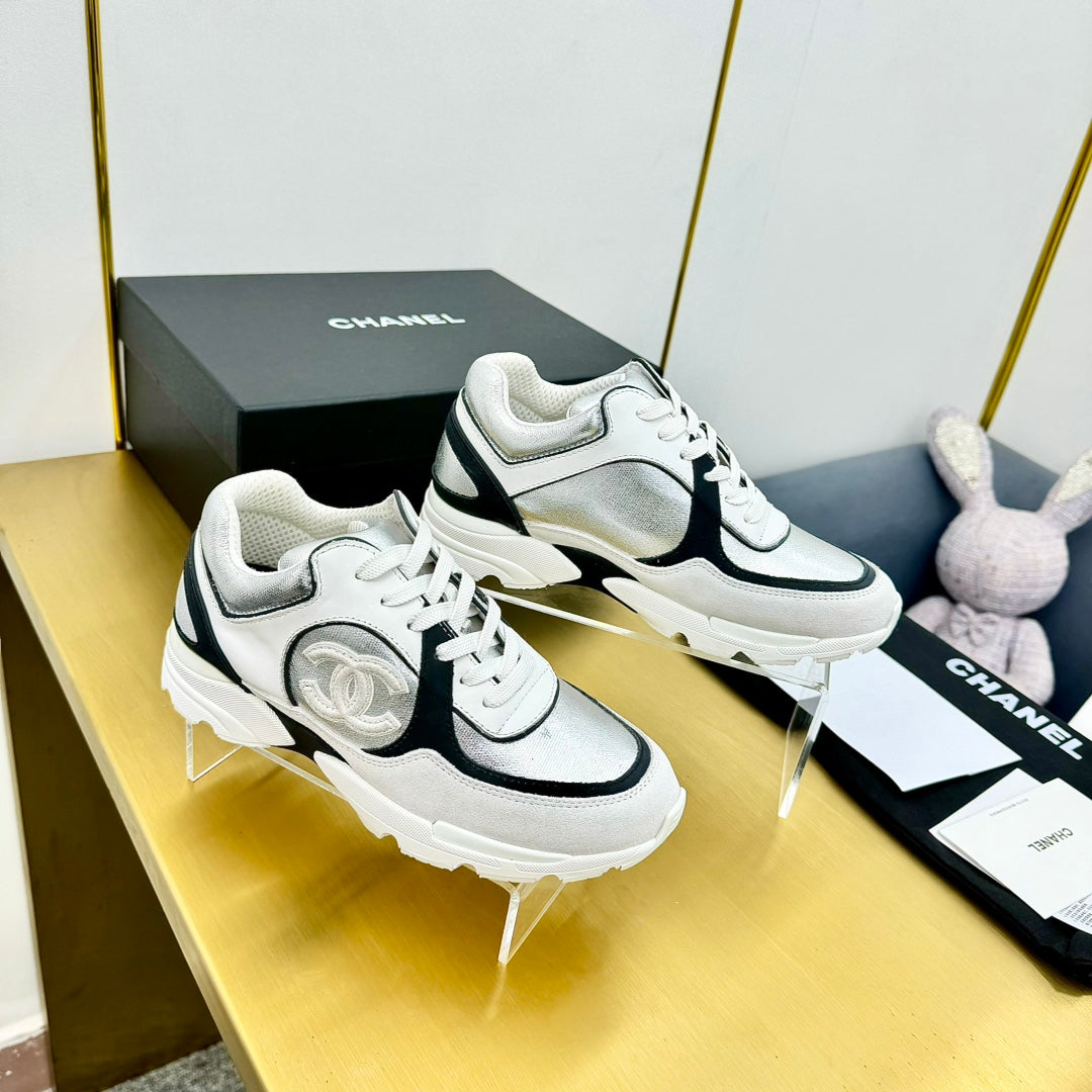 cc womens sneaker in silver wool tweed and white black suede calfskin 137610