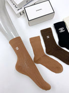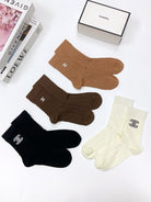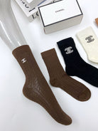 • Classic 3D embossed letter mid-calf socks, made from selected Xinjiang long-staple cotton, soft and skin-friendly.
