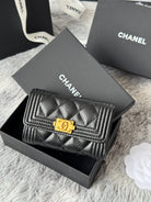 CC Boy Flap Card Holder Black Gold-tone Lambskin 242862