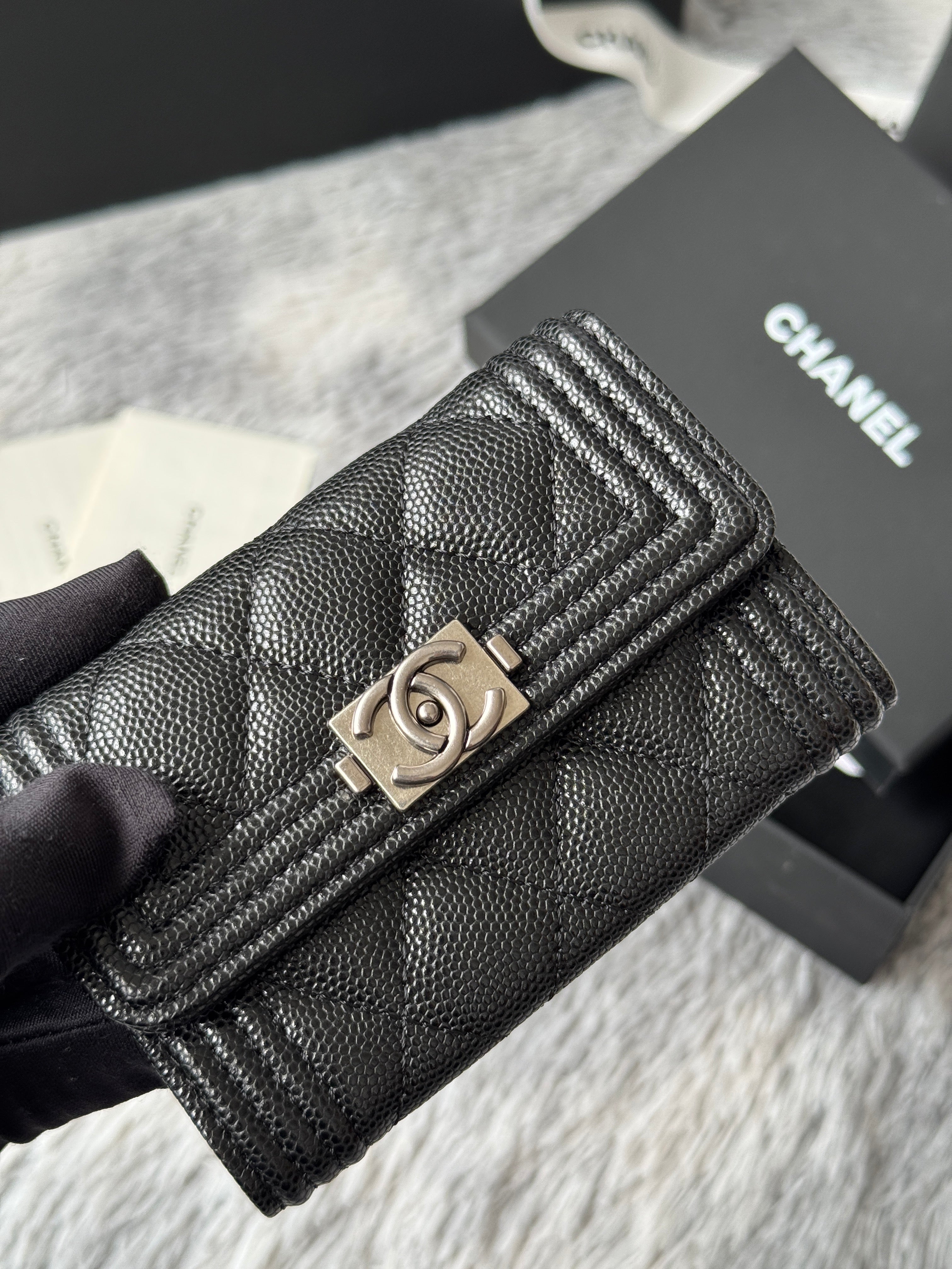 CC Boy Flap Card Holder Black Sliver-tone Grained Calfskin 242888