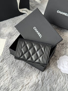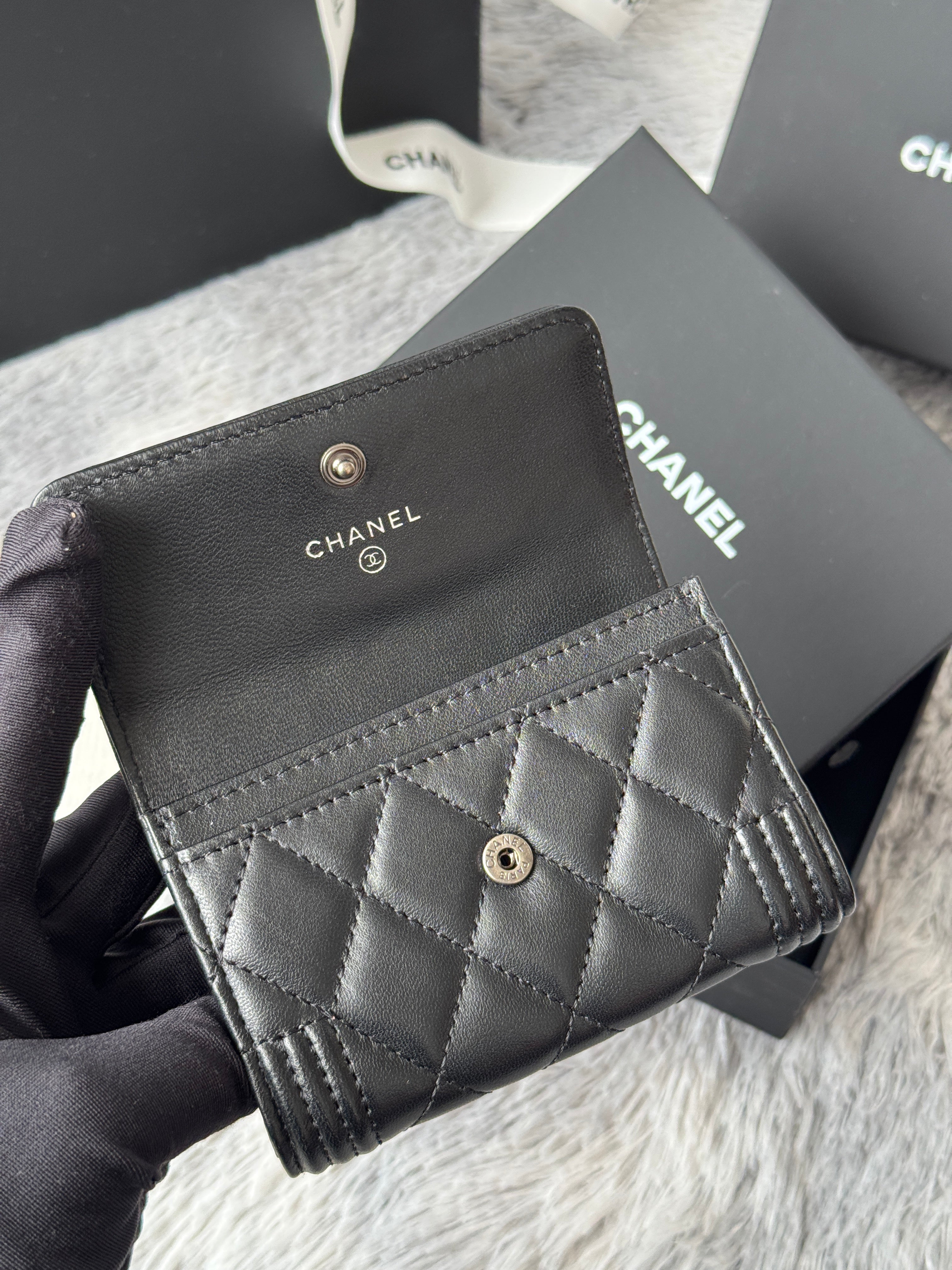 CC Boy Flap Card Holder Black Sliver-tone Lambskin 242864