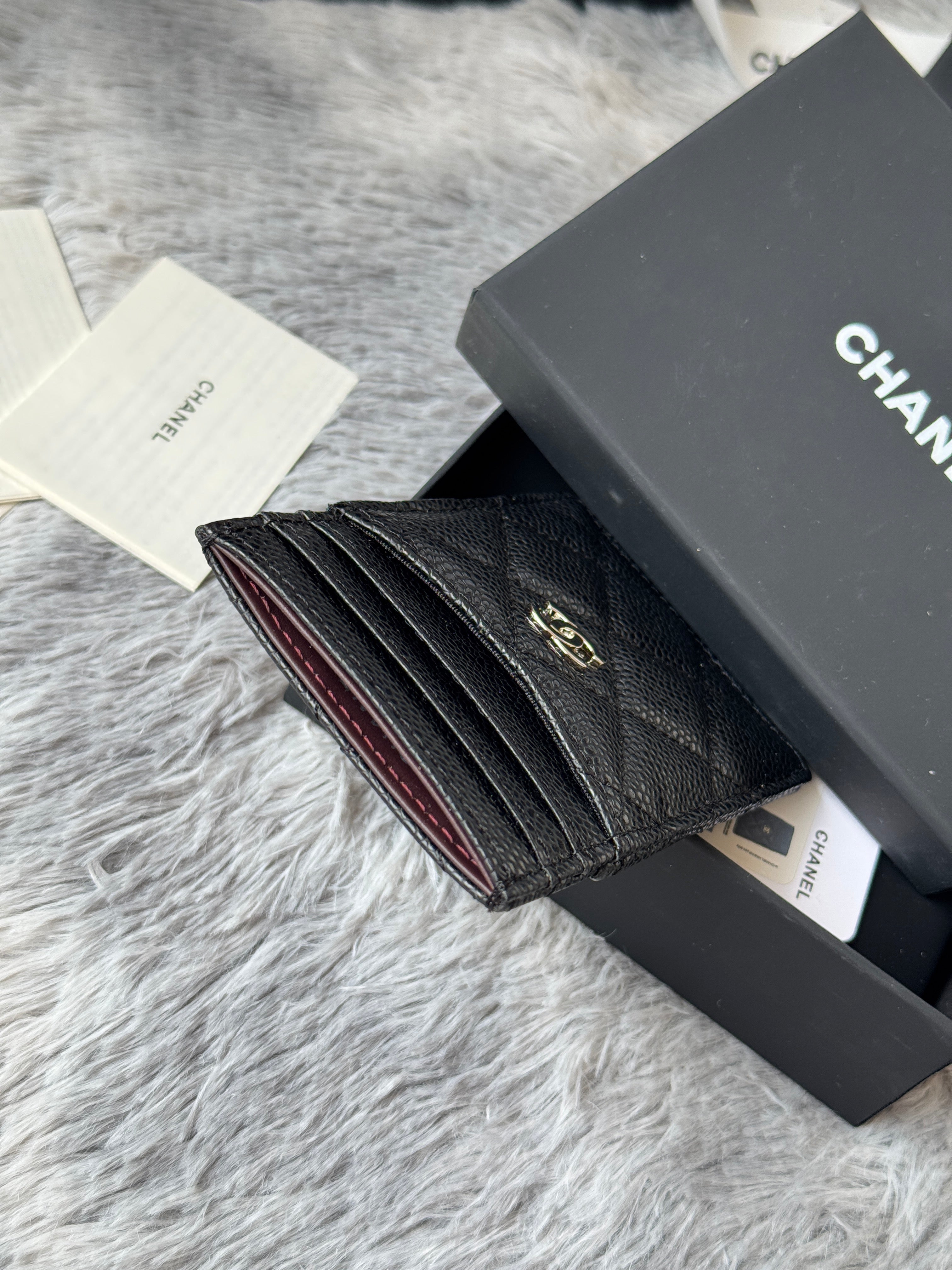 CC Carld Holder Black Golden- tone Metal Grain Calfskin 242680