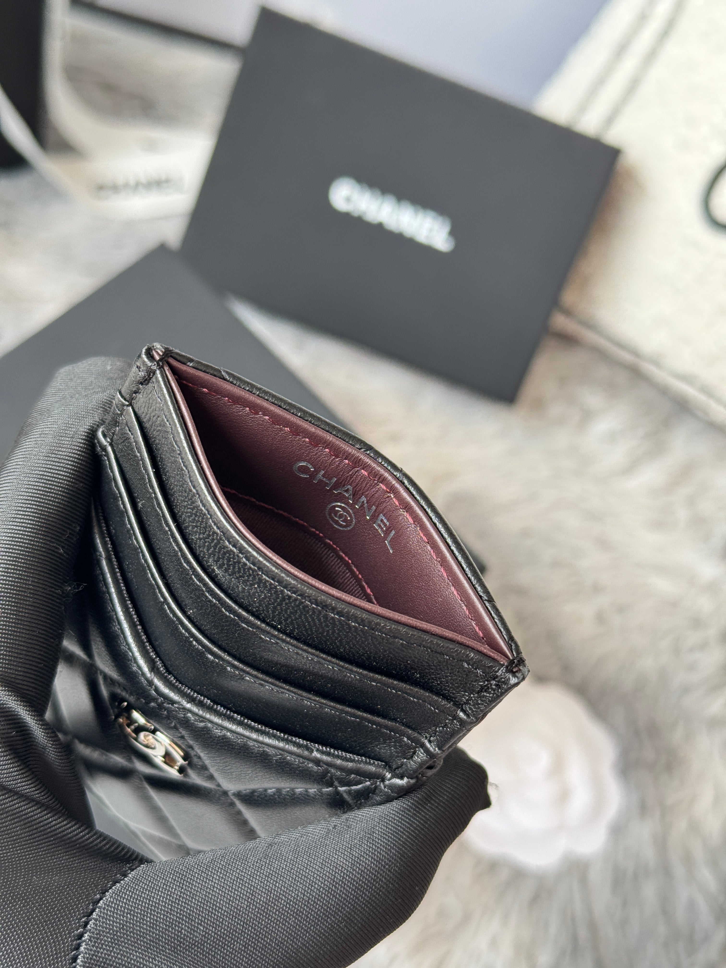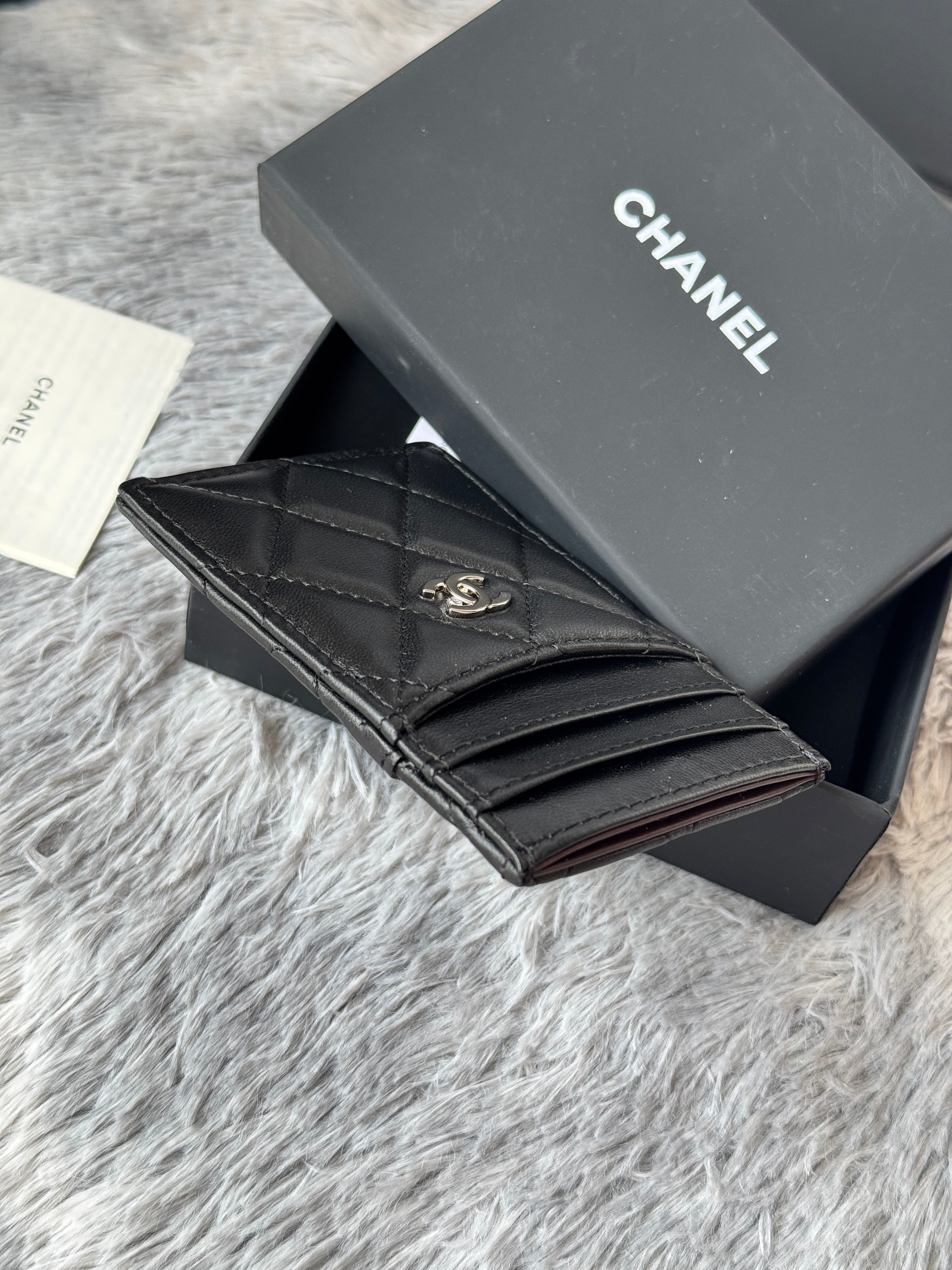 CC Carld Holder Black Sliver-tone Metal Lamskin 242674