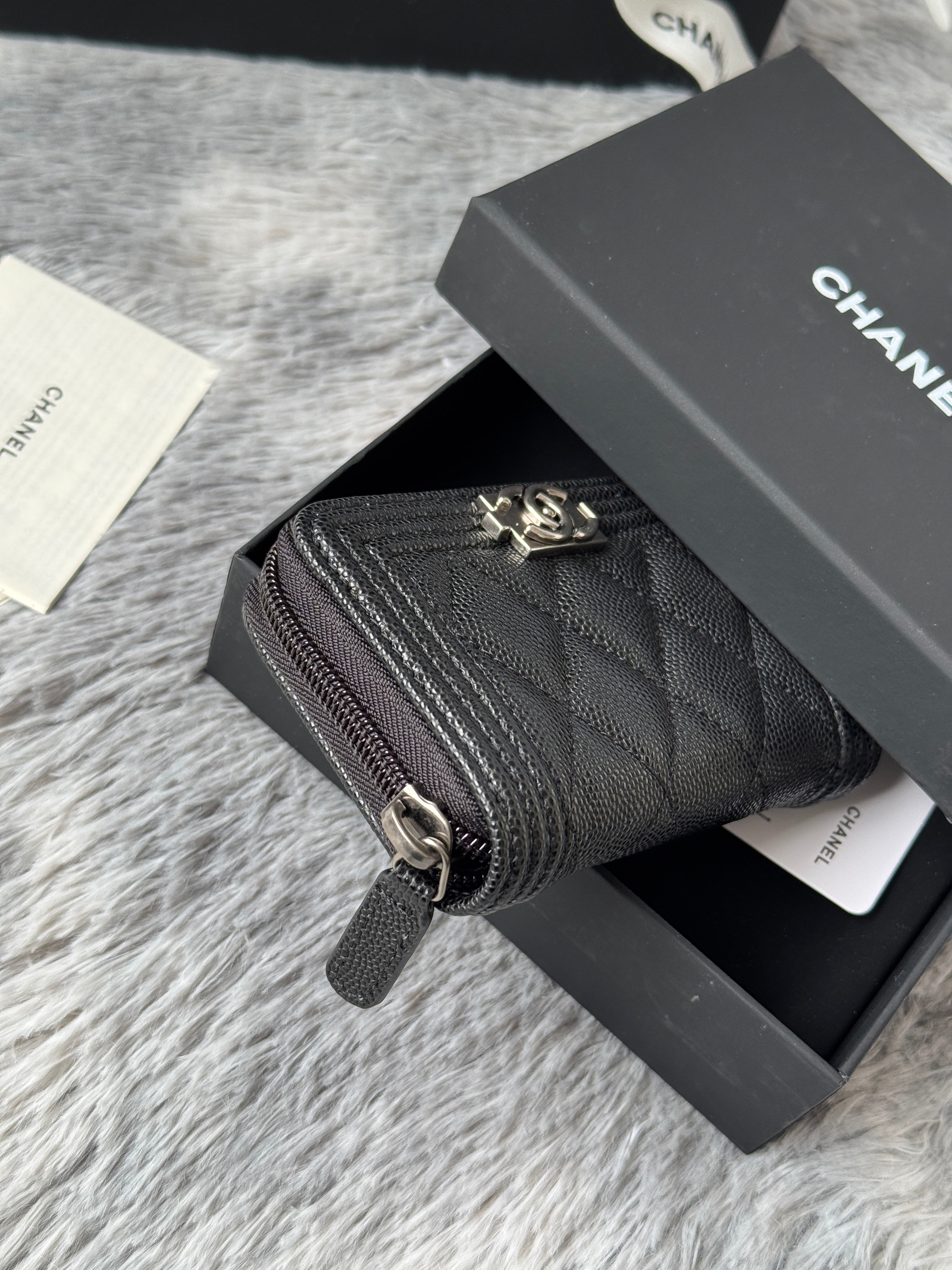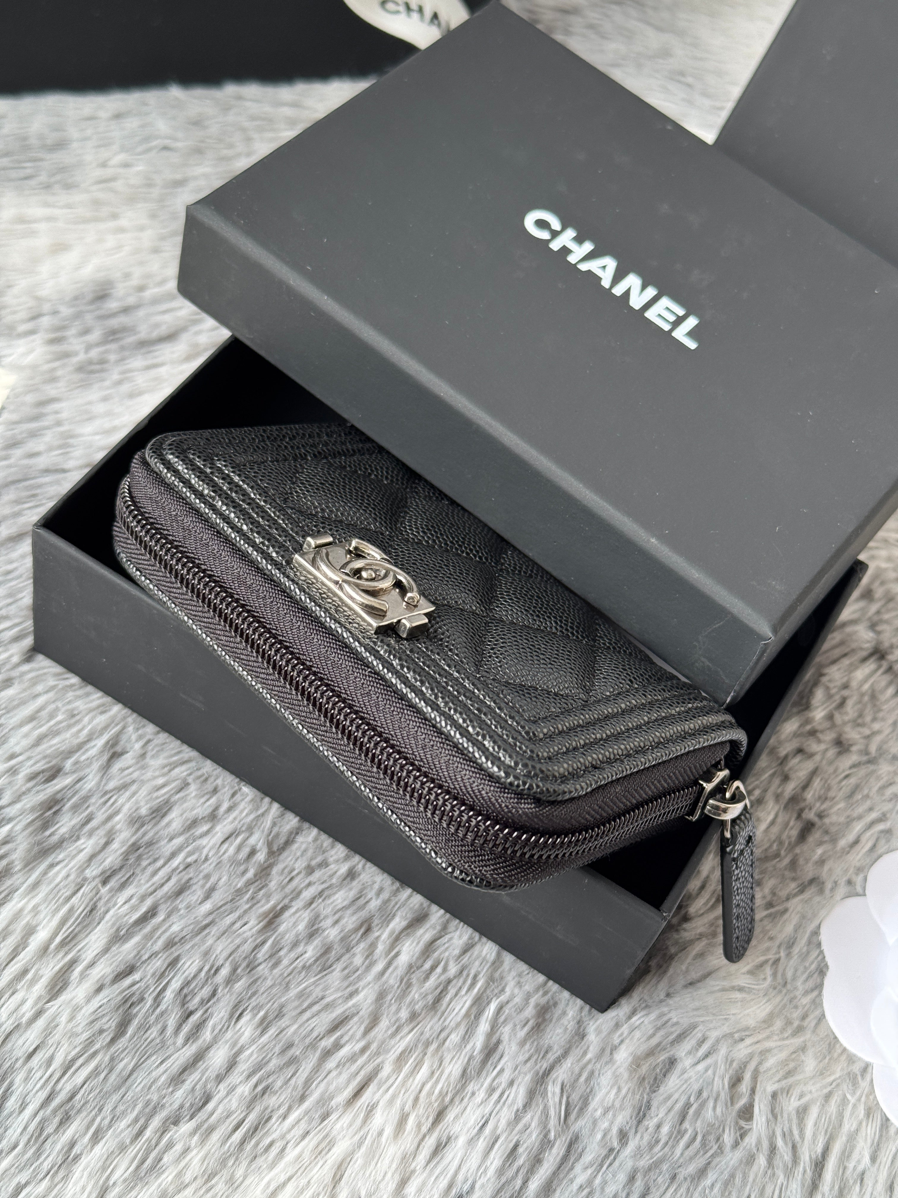 CC Classic Boy Coin Purse Black Sliver-tone Grained Calfskin 242886