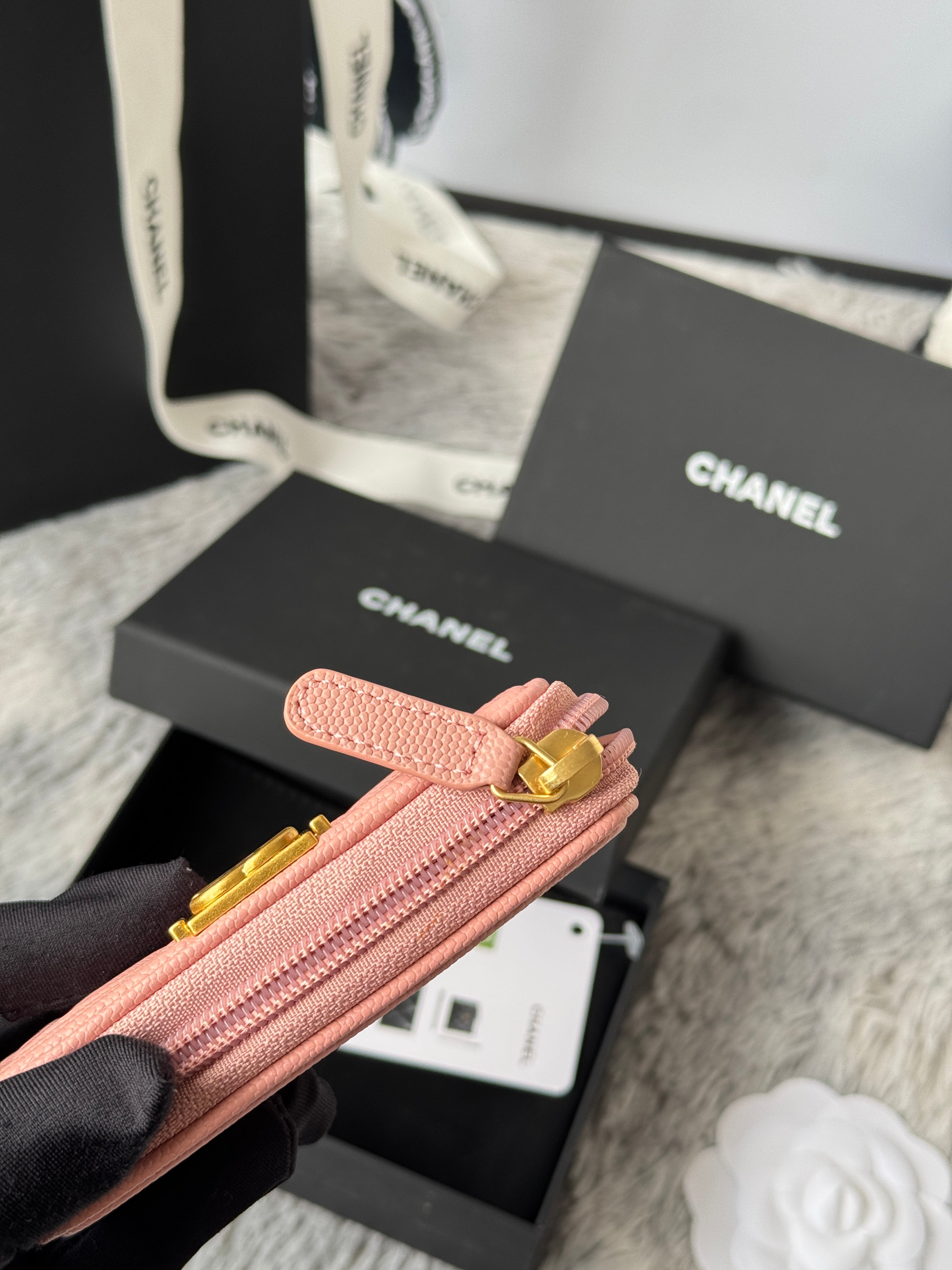CC Classic Boy Coin Purse Light Pink Gold-tone Grained Calfskin 242874