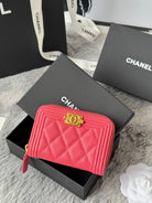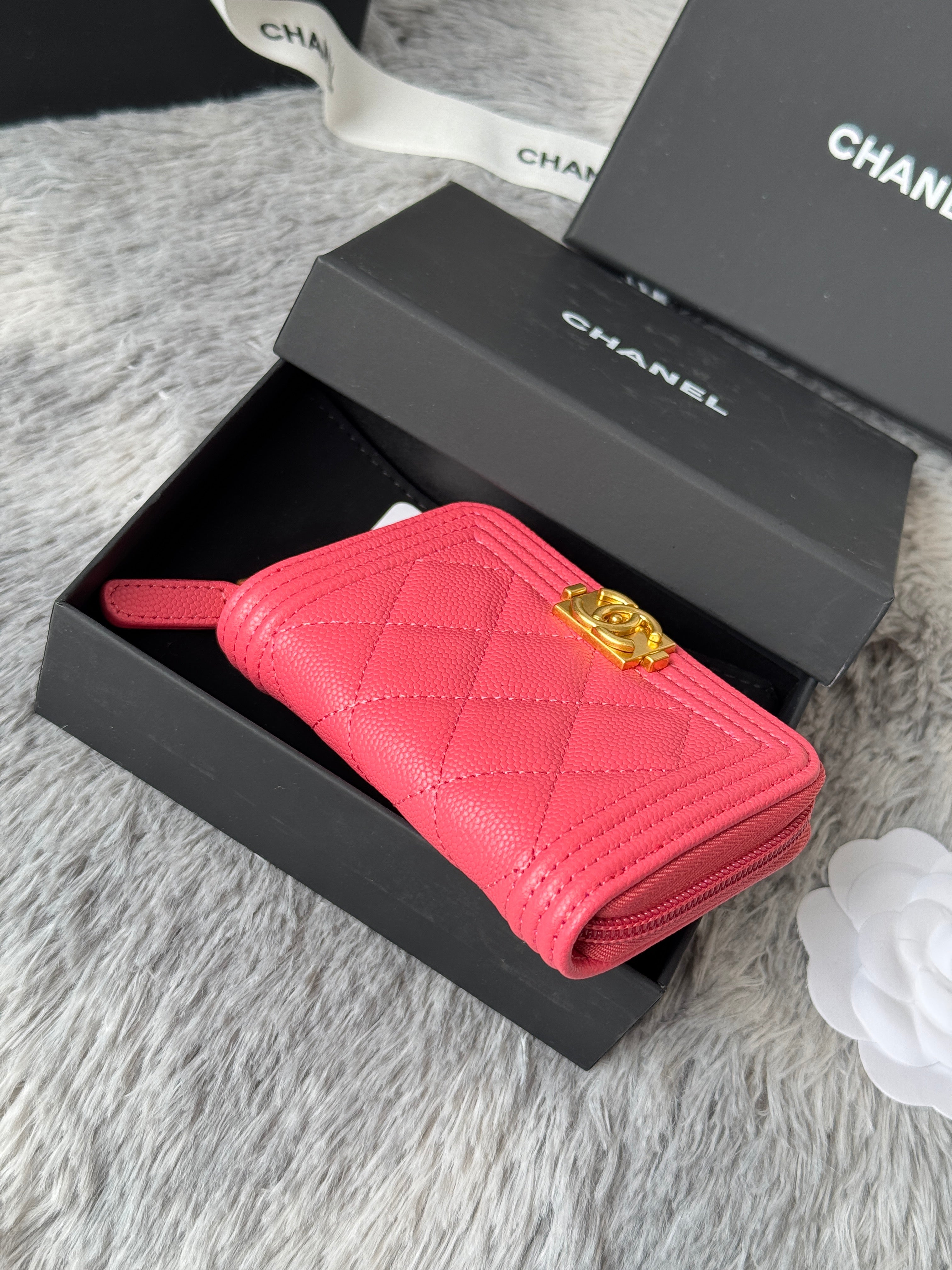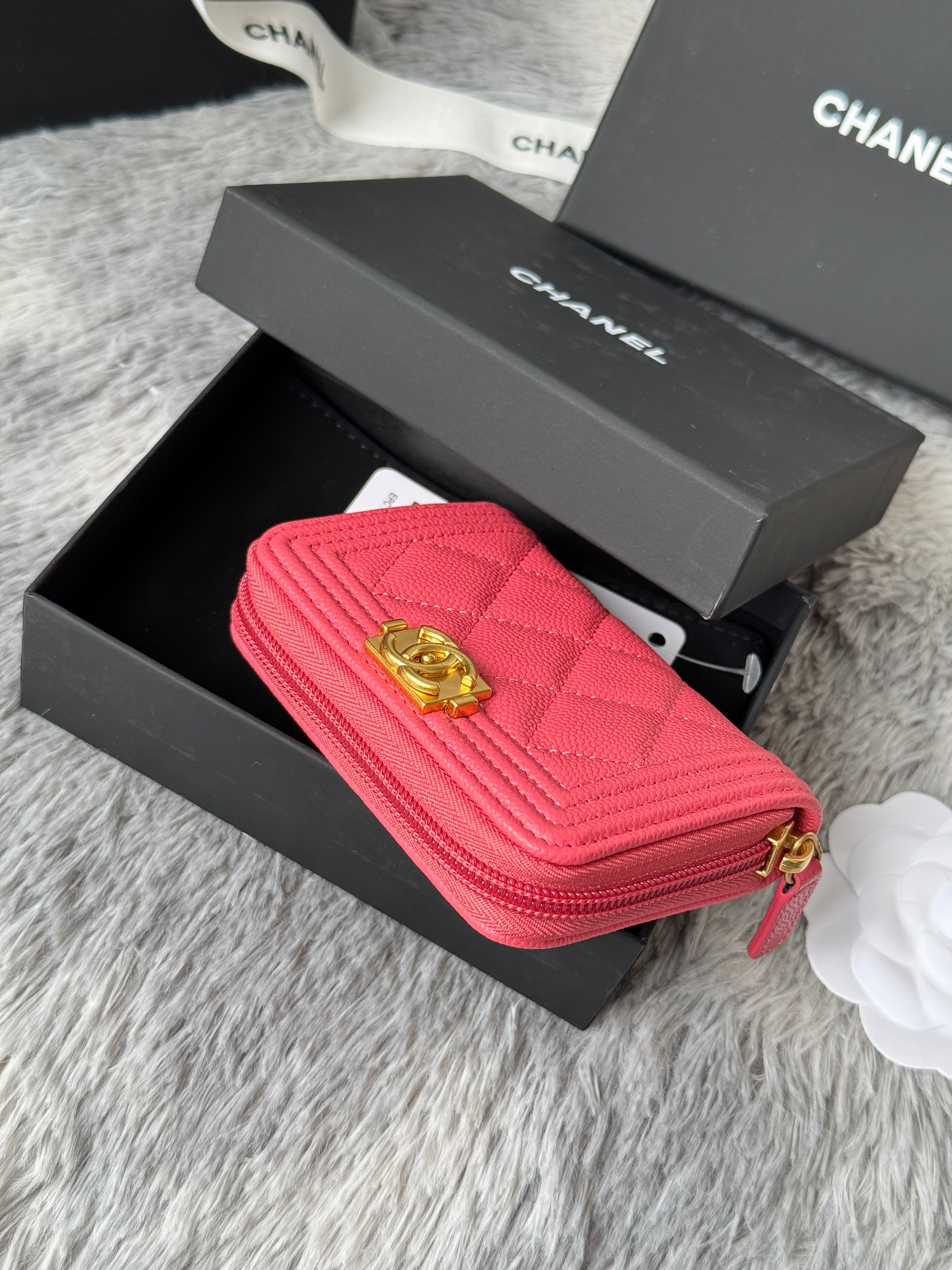 CC Classic Boy Coin Purse Pink Gold-tone Grained Calfskin 242880