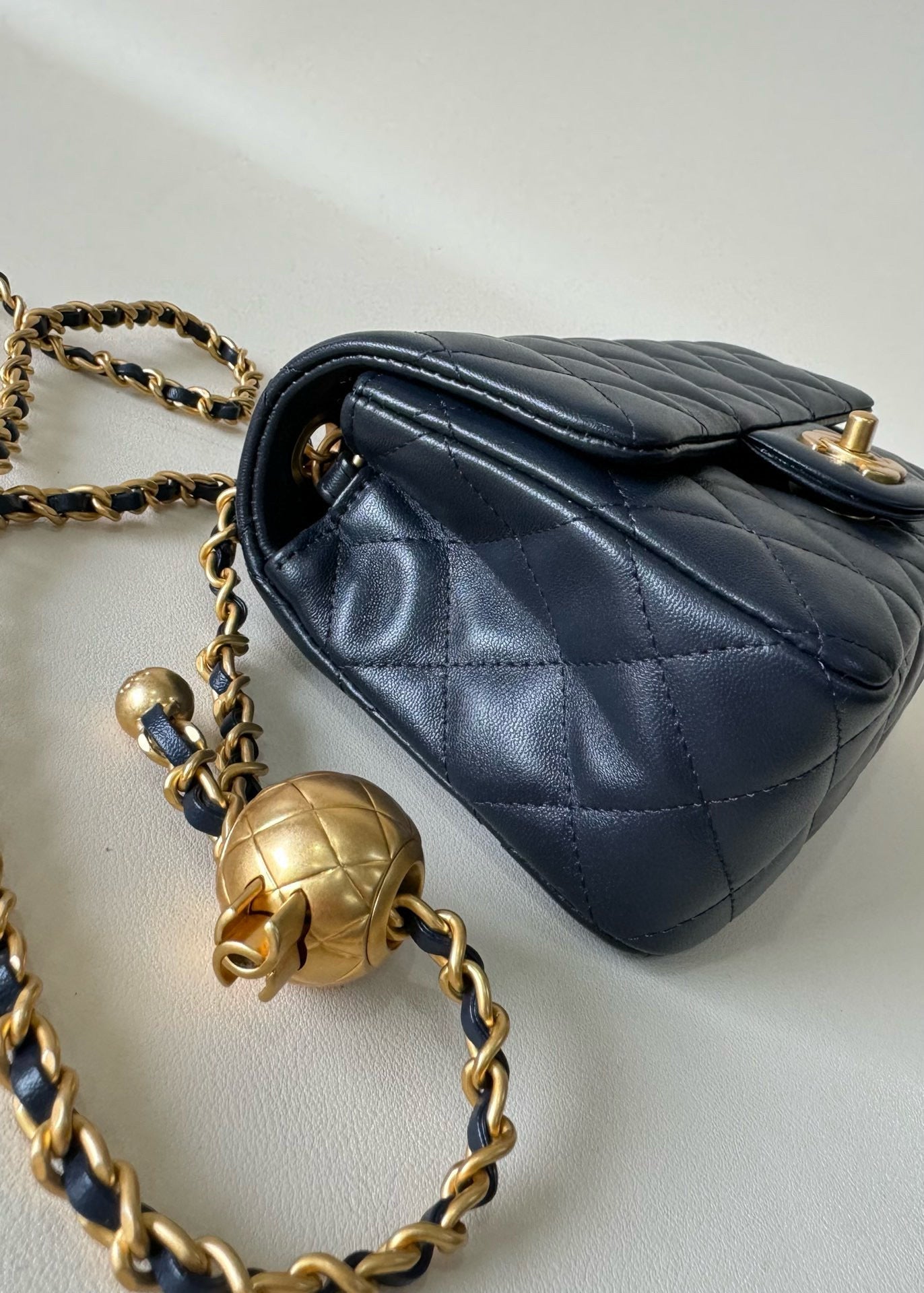 CC 20 Flap Bag 20cm Dark Blue Lambskin