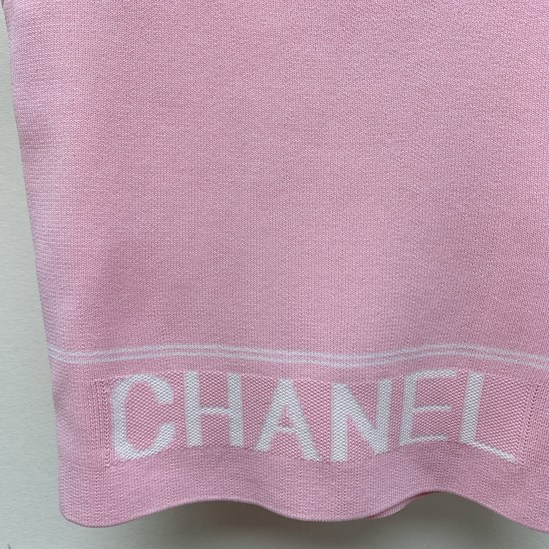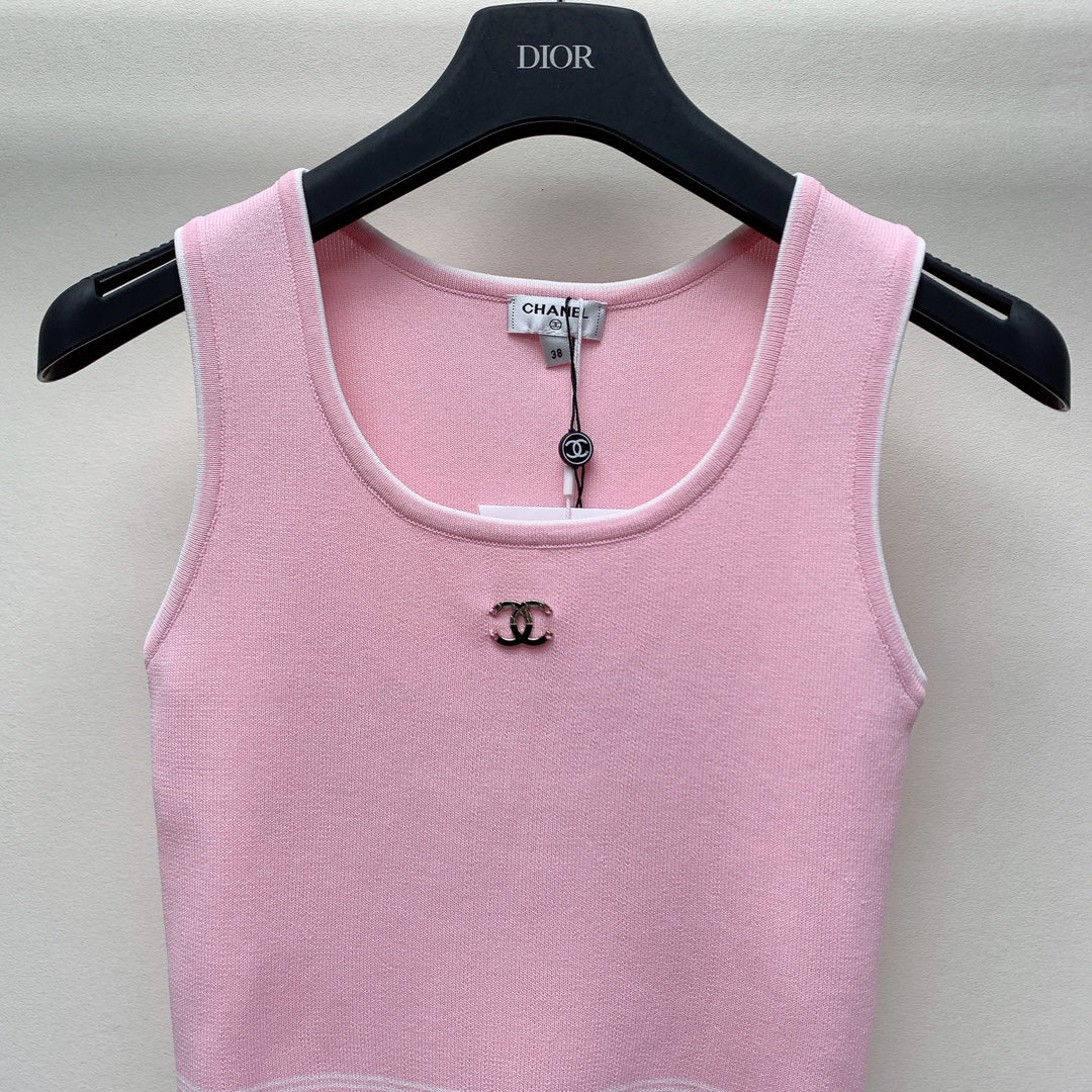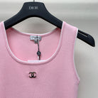 CC 25 Round Neck Knitted Embroidered Logo Vest in Pink 277576