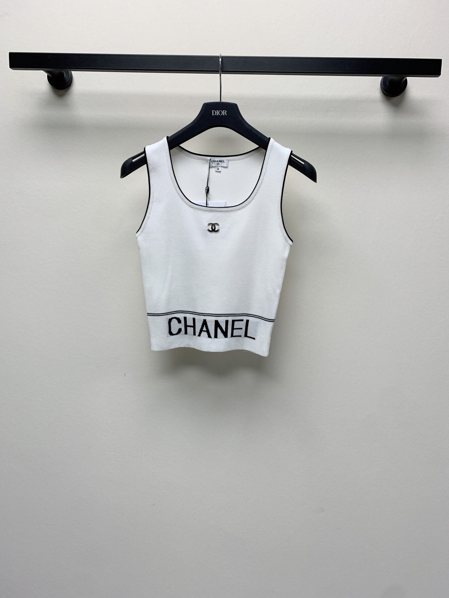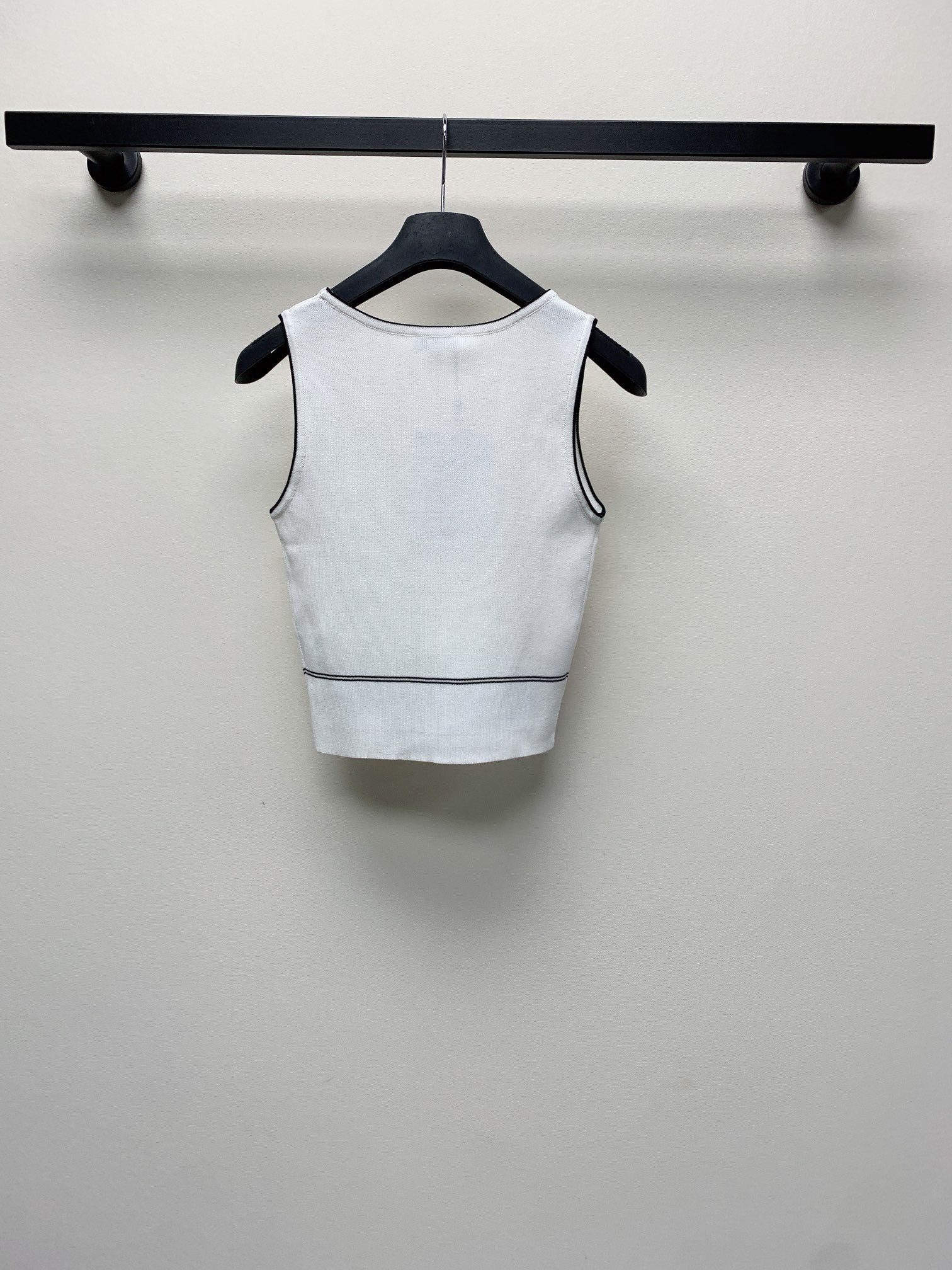 CC 25 Round Neck Knitted Embroidered Logo Vest in White 277575