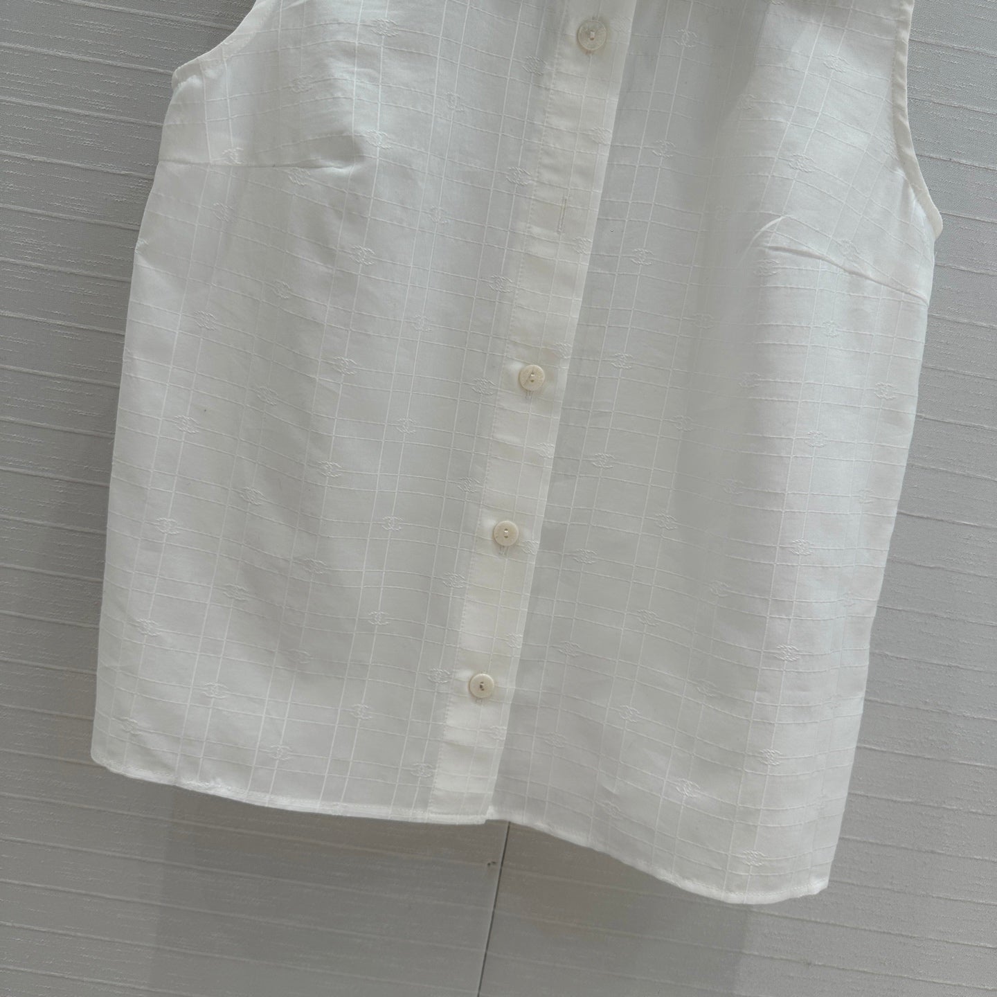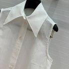 CC 25 Sleeveless Shirt White Silk Cotton Fabric
