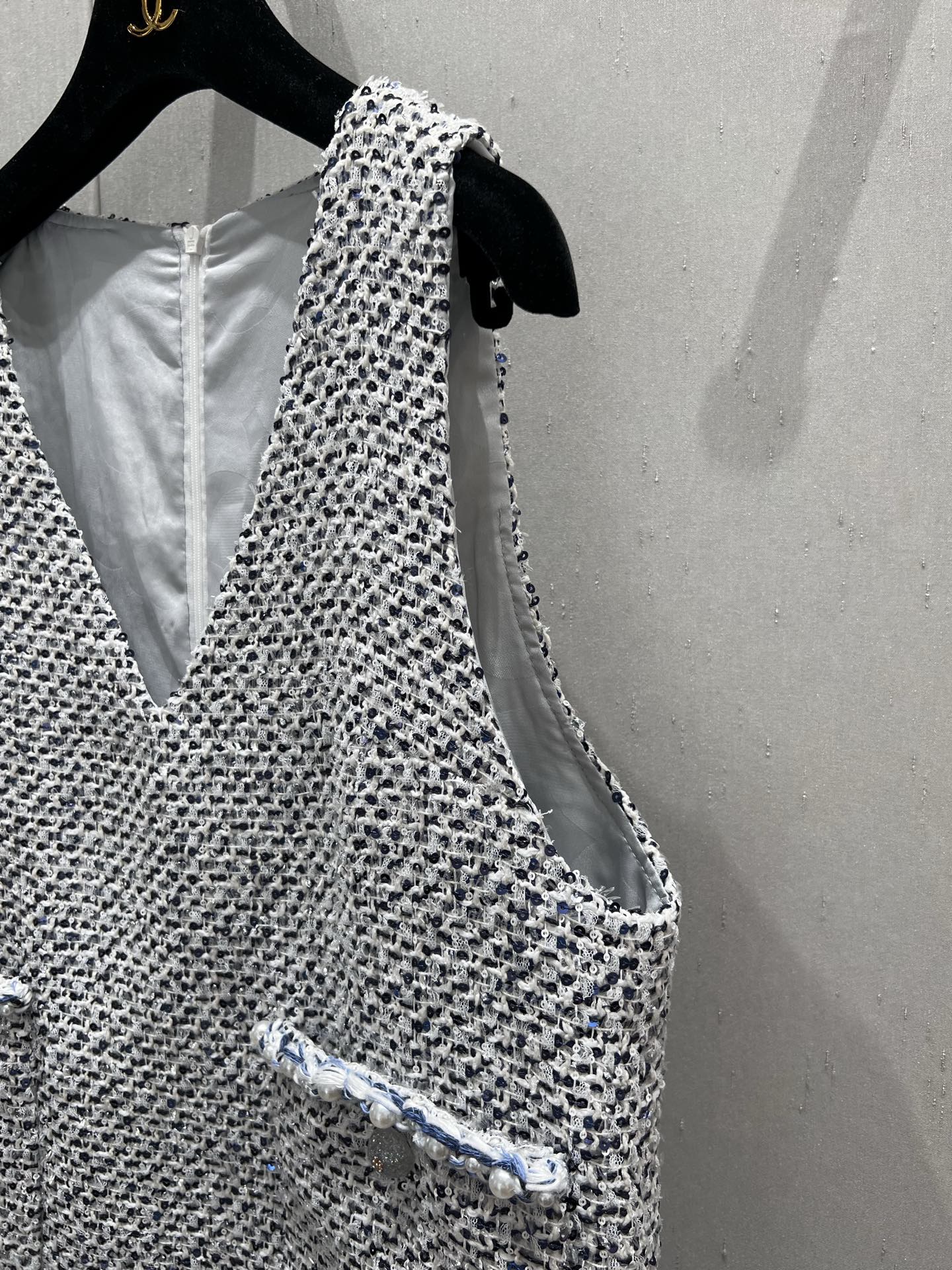CC 25 Tweed Dress Gray Blue Woven Fabric