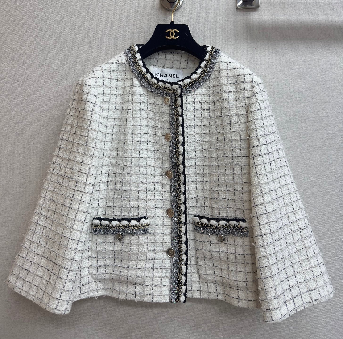 CC 25 Tweed Plaid Jacket White Cotton Polyester 251871