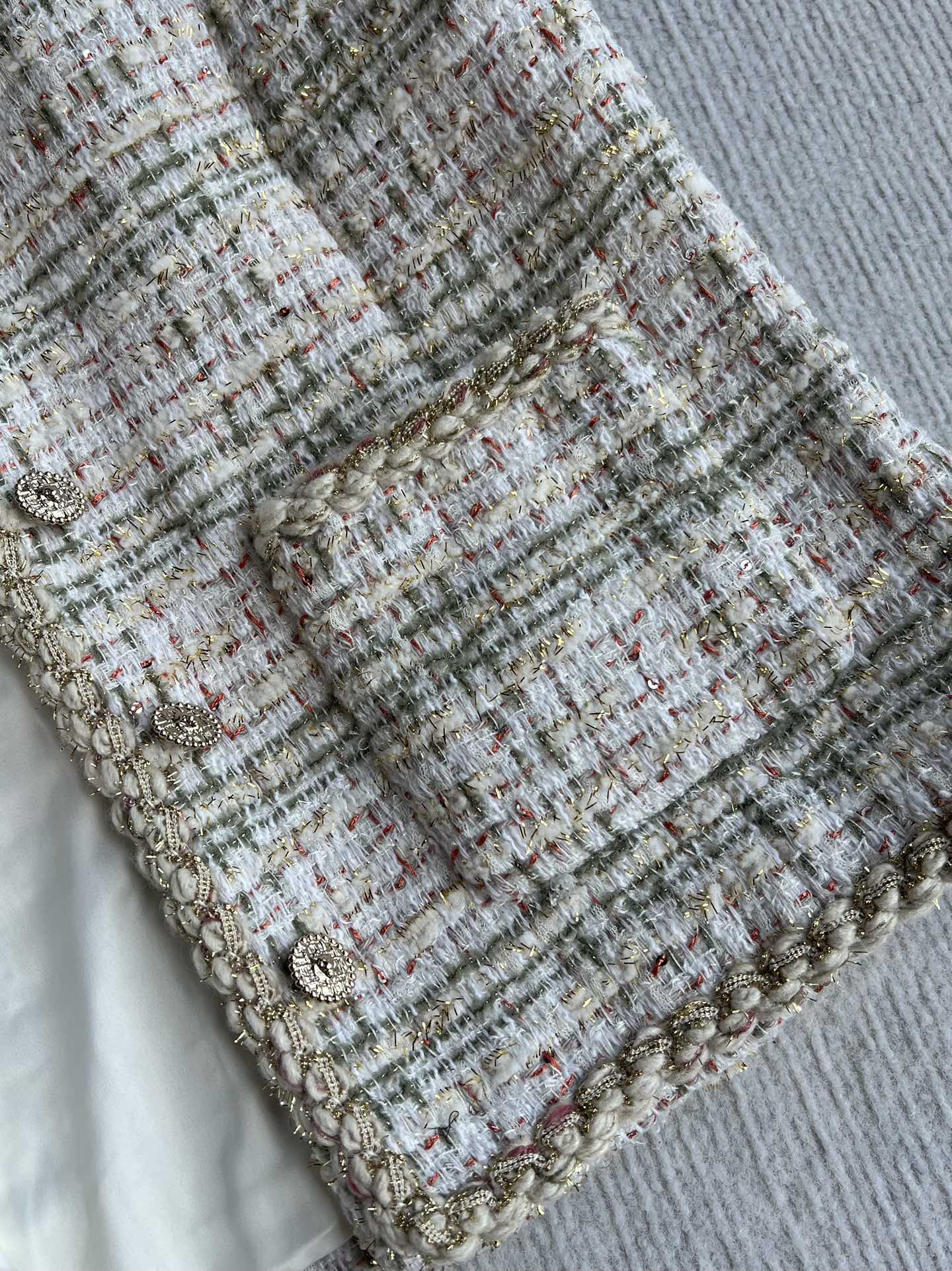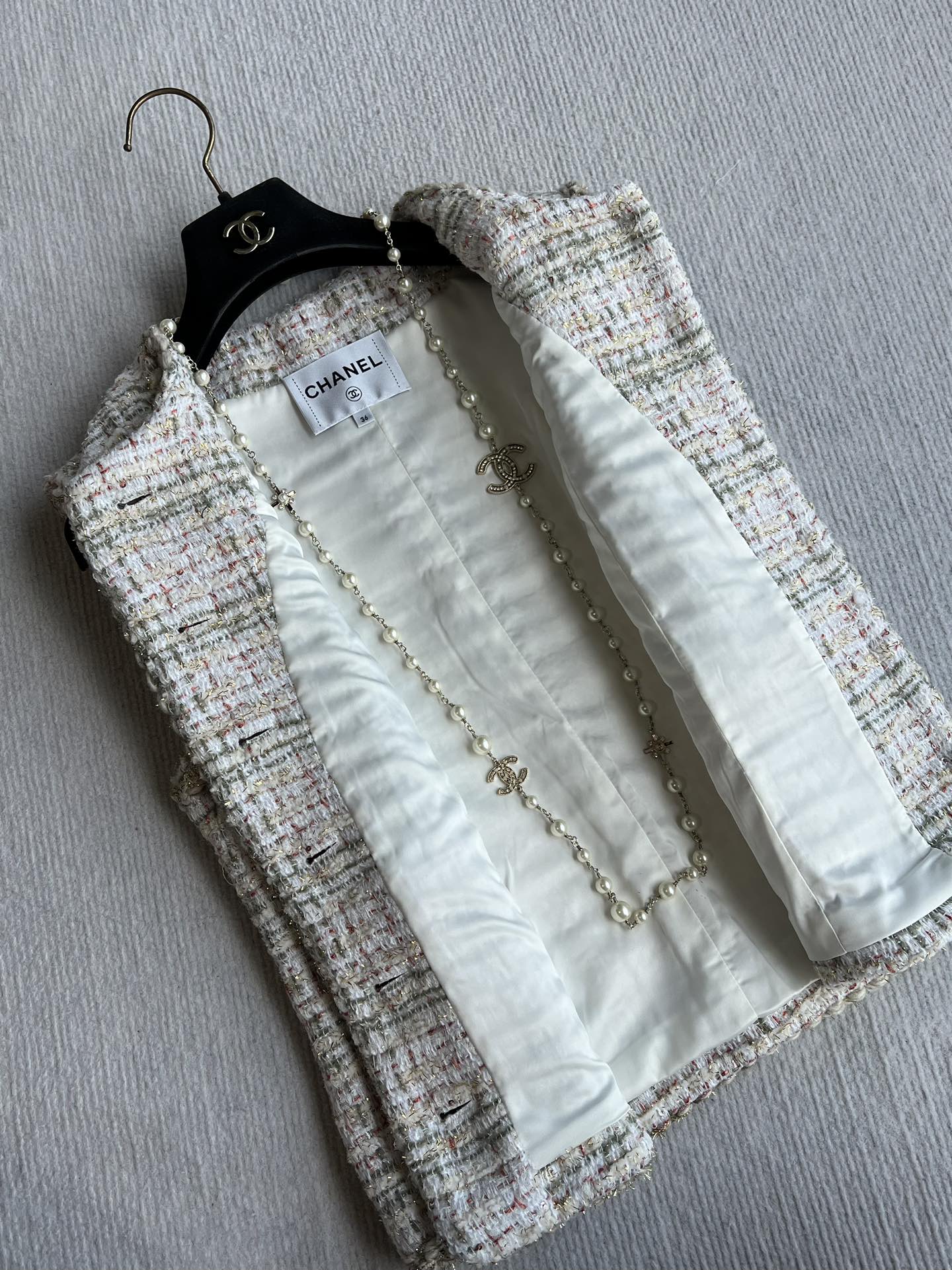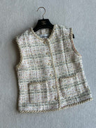 CC 25A Classic Round Collar Vest Jacket In Light Orange Pink Tweed 277181
