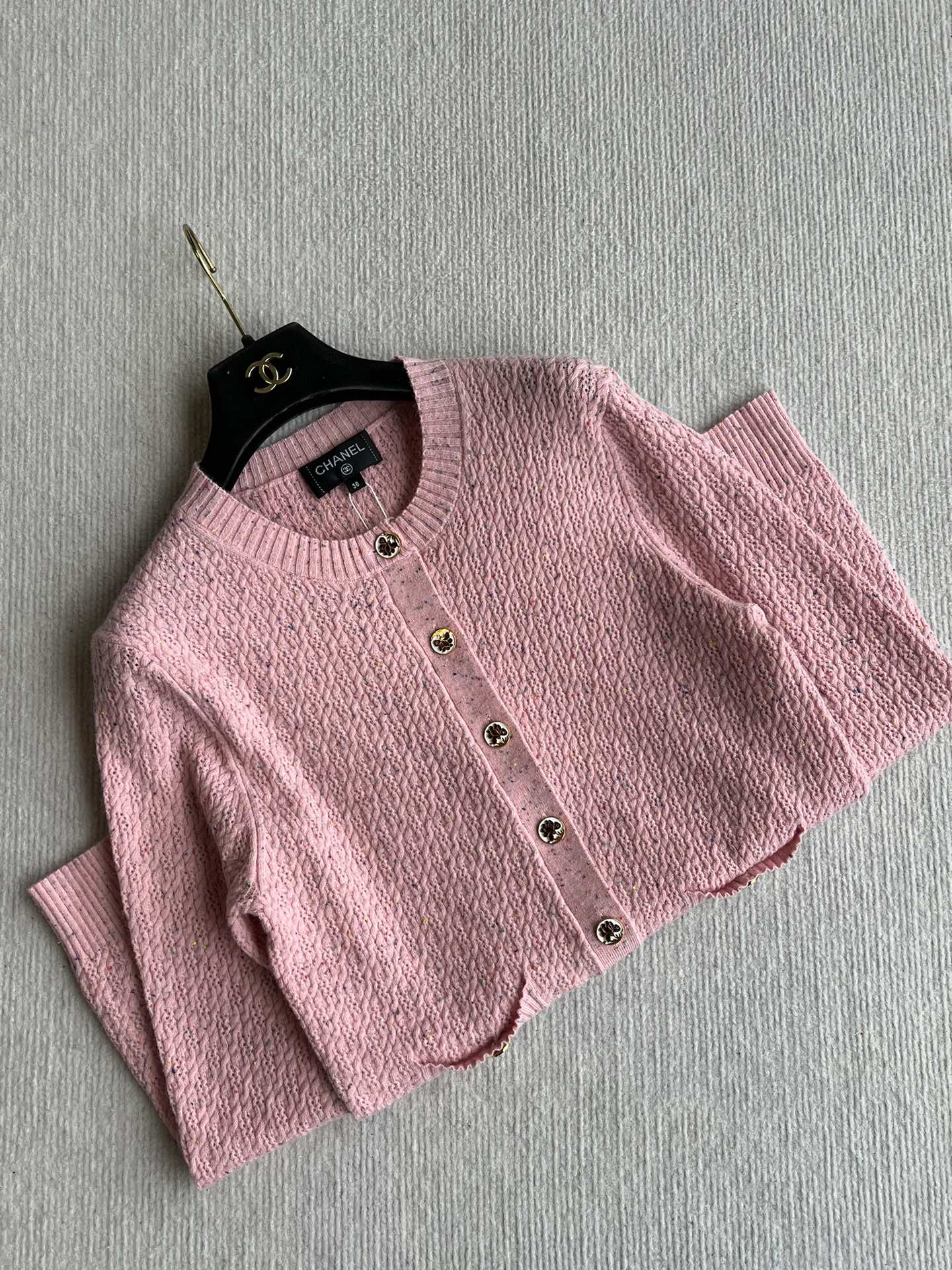 CC 25A Classic Round Neck Floral Wool Cardigan In Pink 275515
