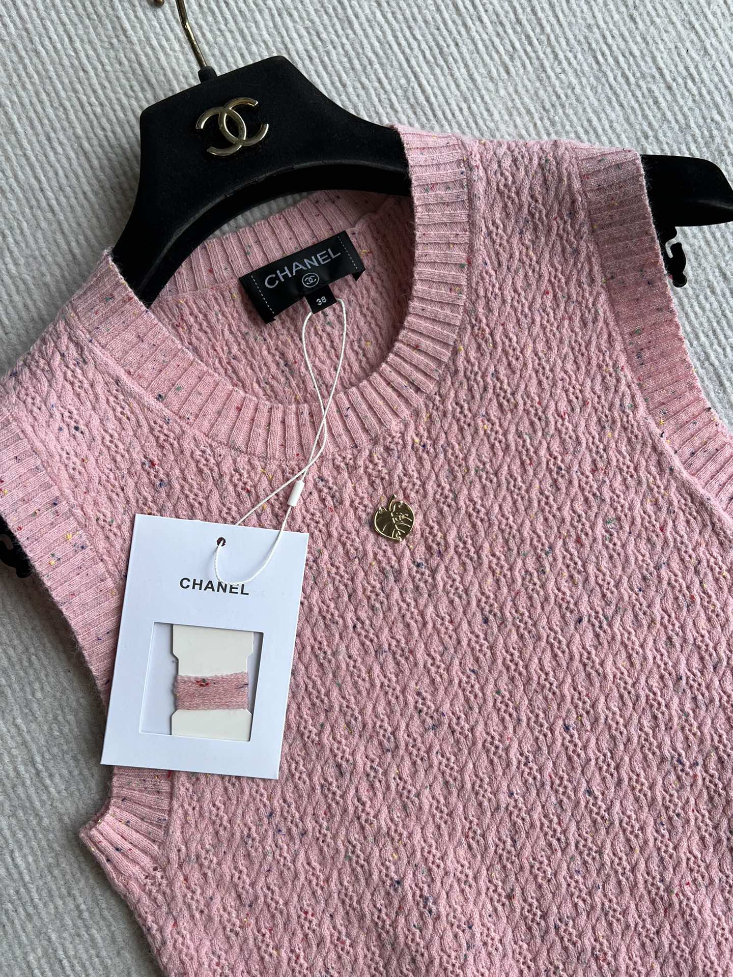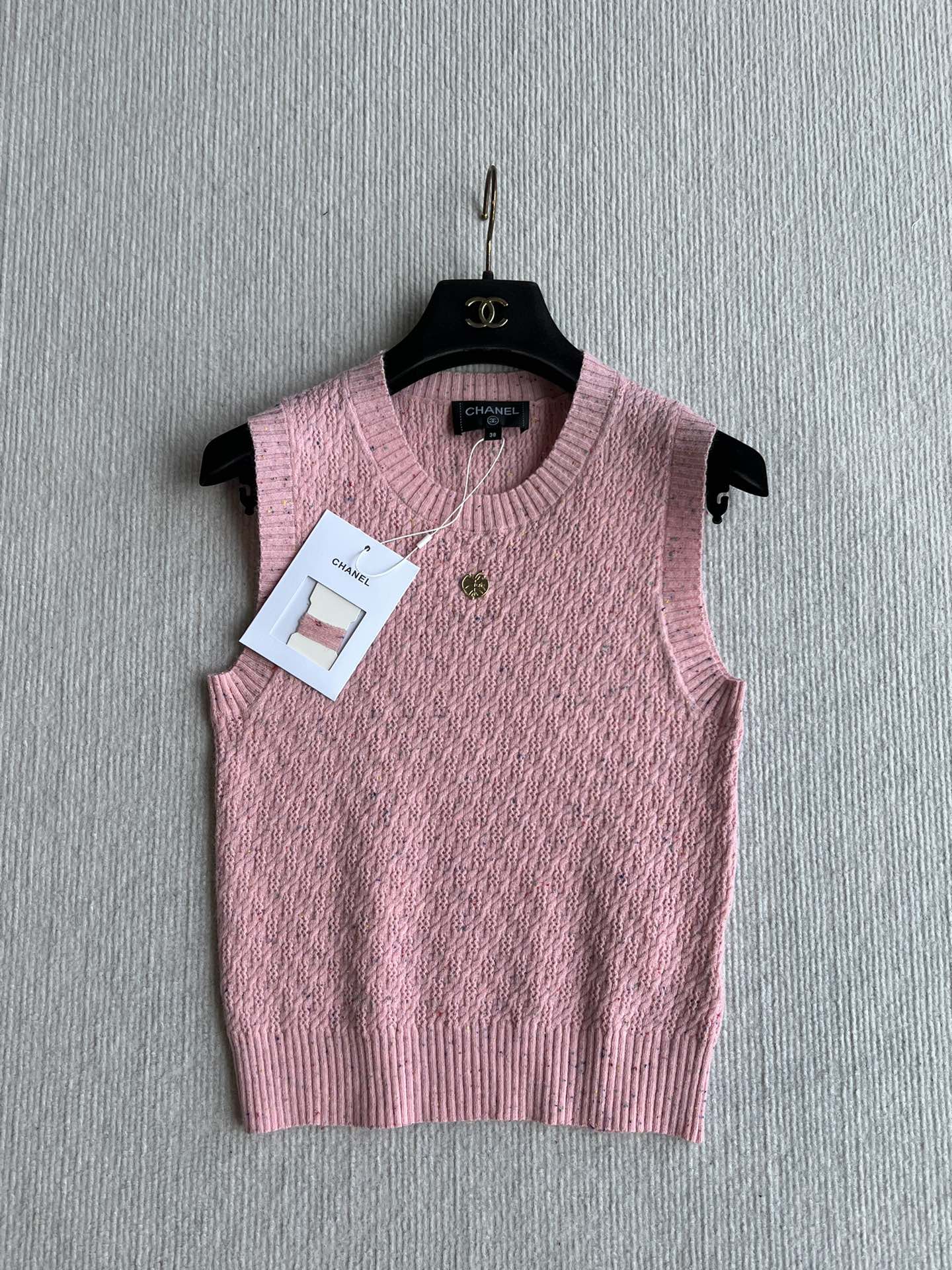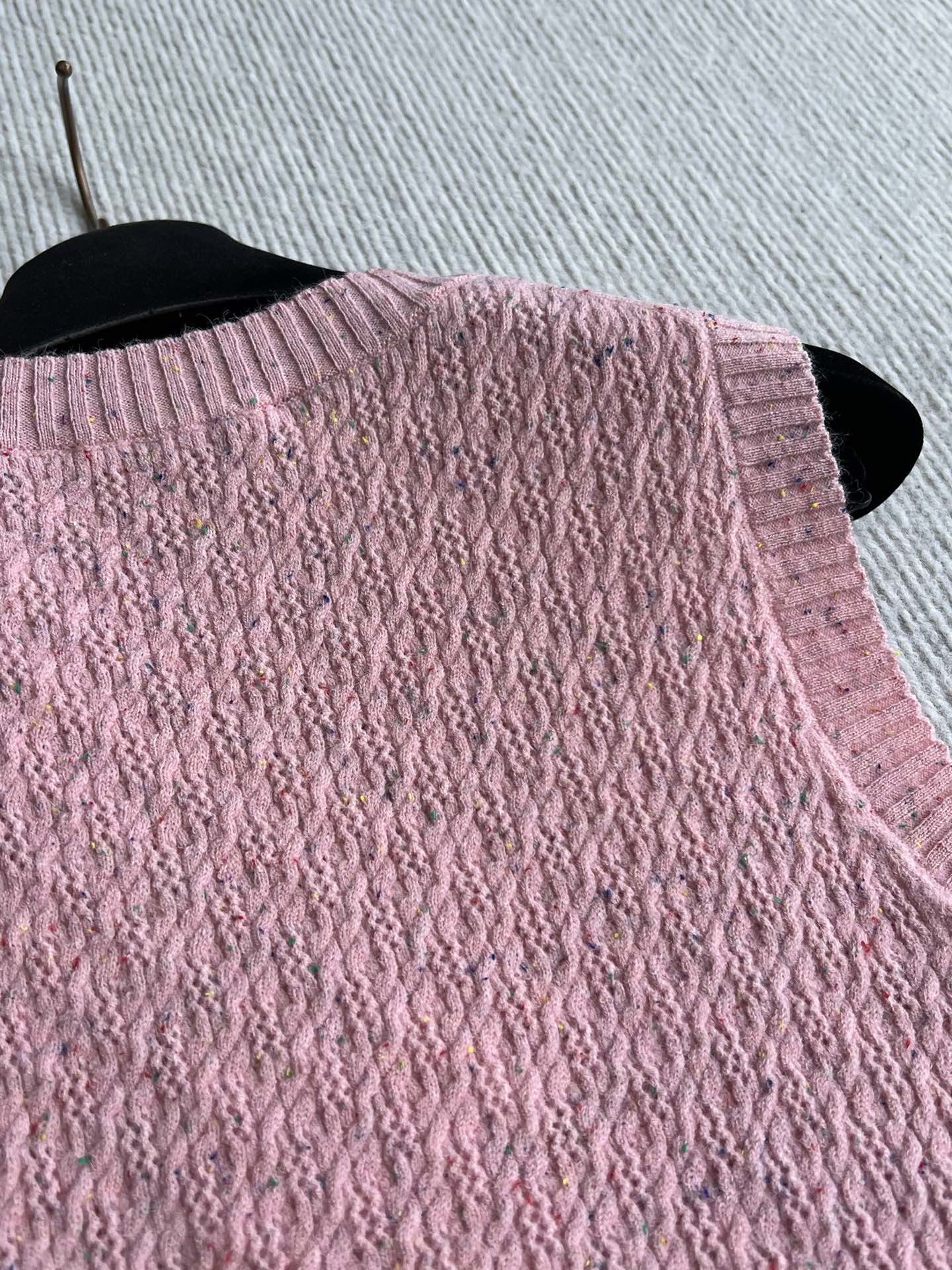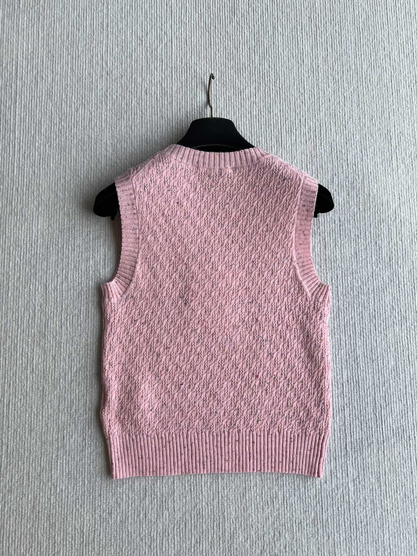 CC 25A Round Neck Sleeveless Vest In Pink Wool 269549