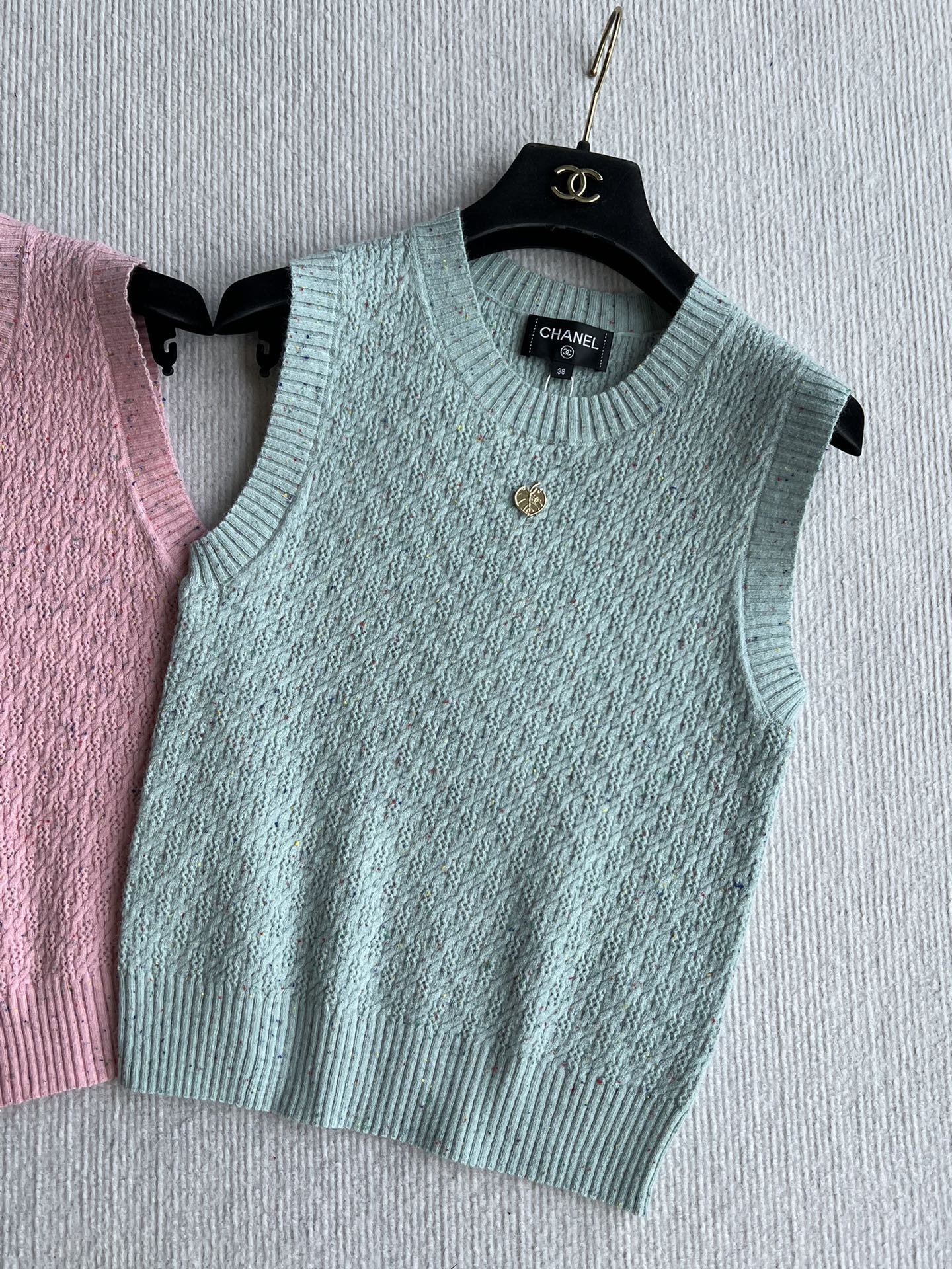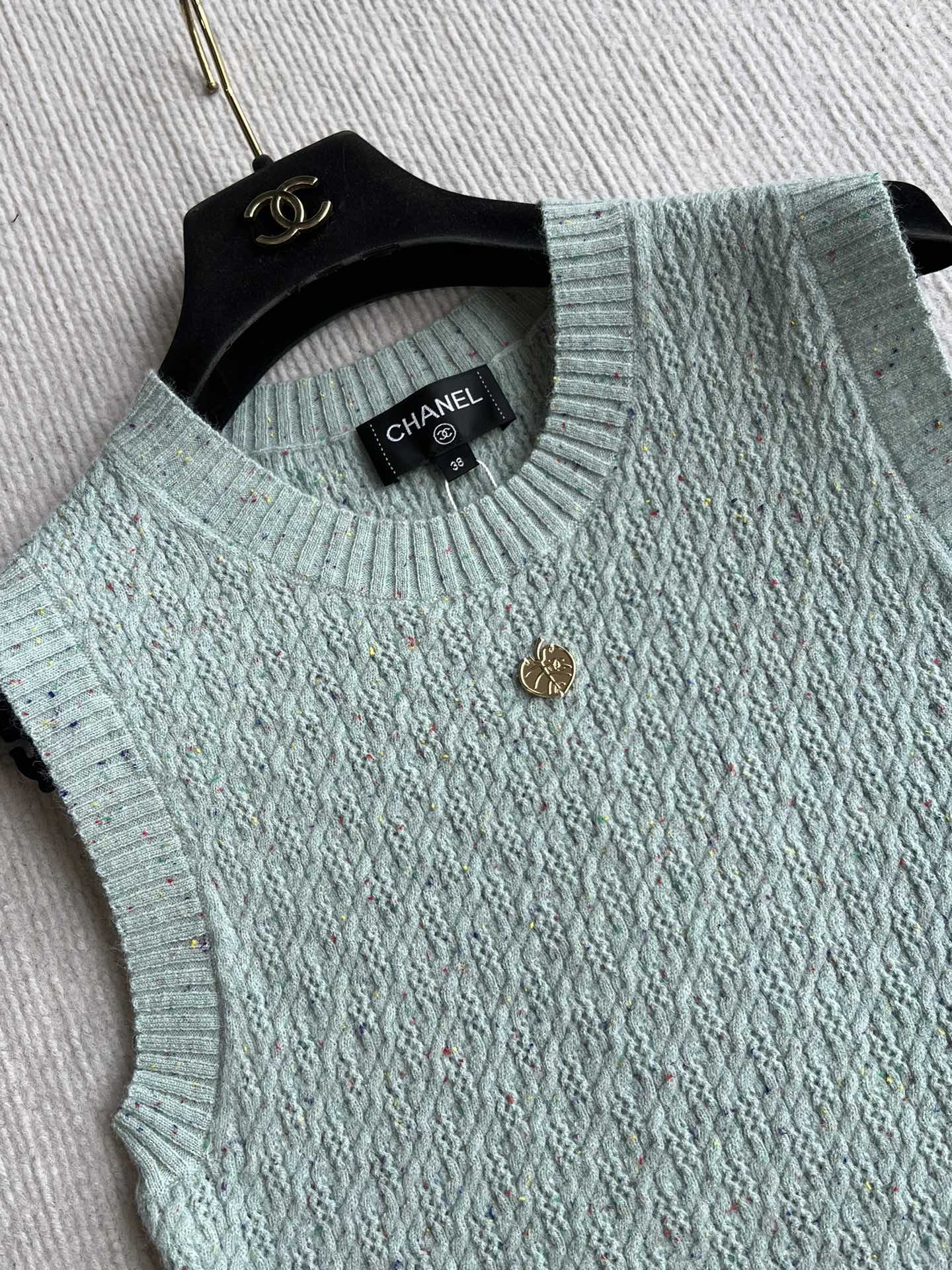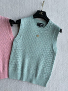 CC 25A Round Neck Sleeveless Vest In Turquoise Wool 269548