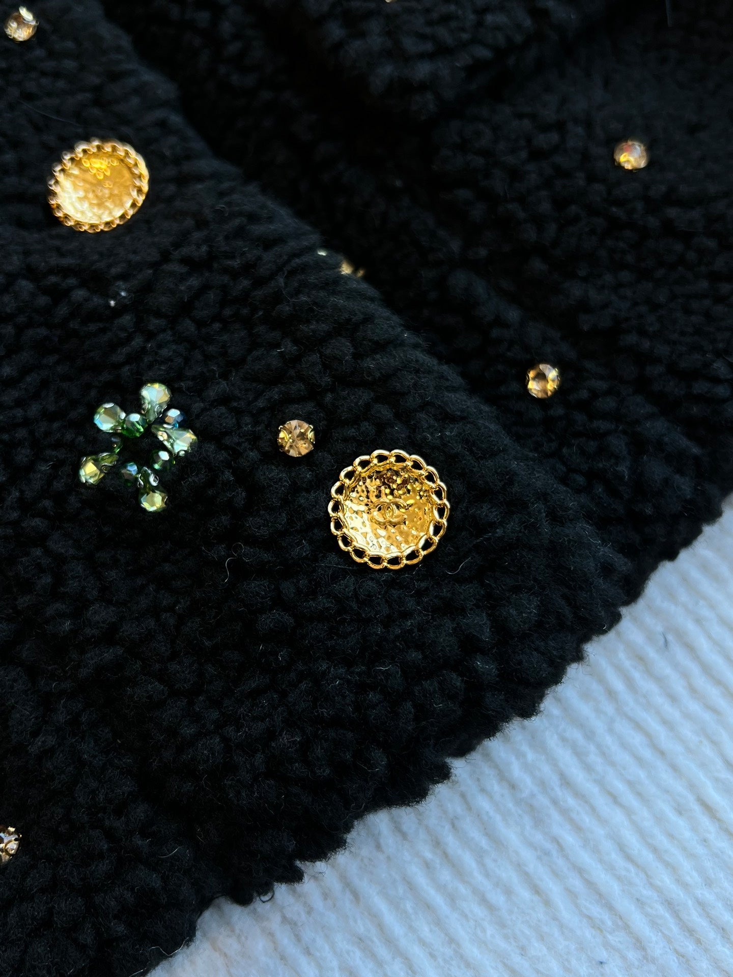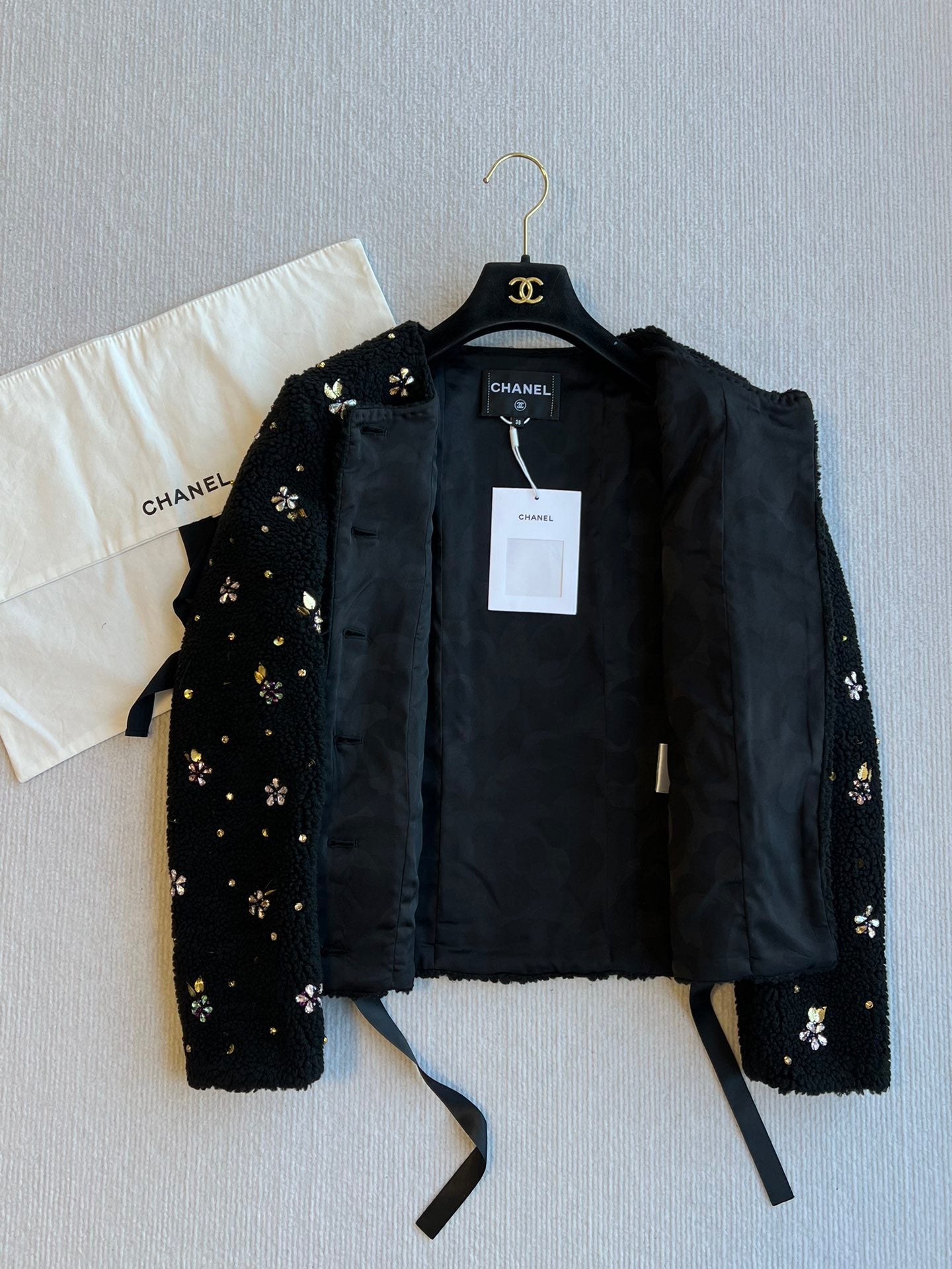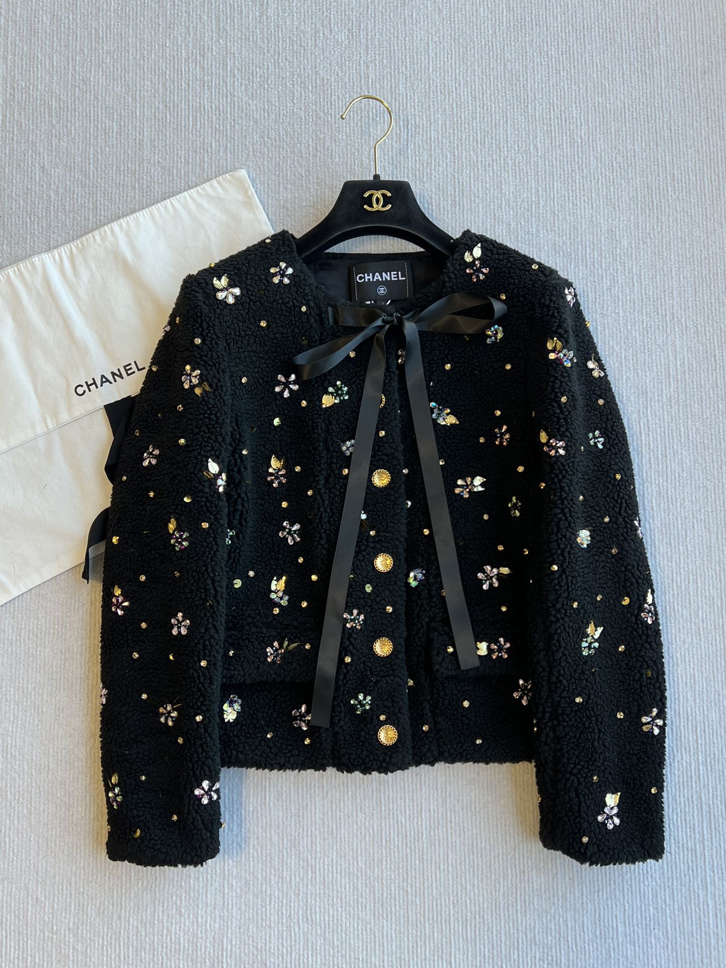 CC 25C Round Neck Jacket Strappy Bow In Black Laine Wool 212350