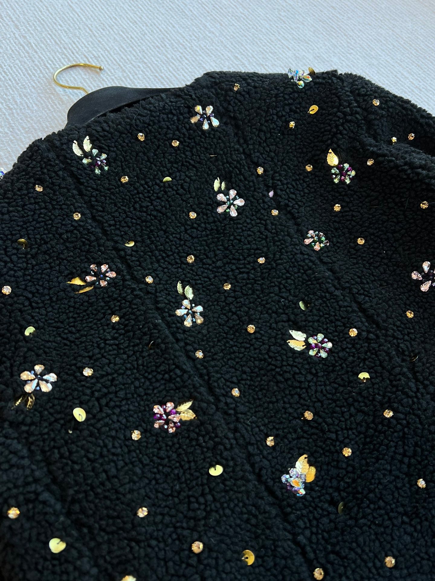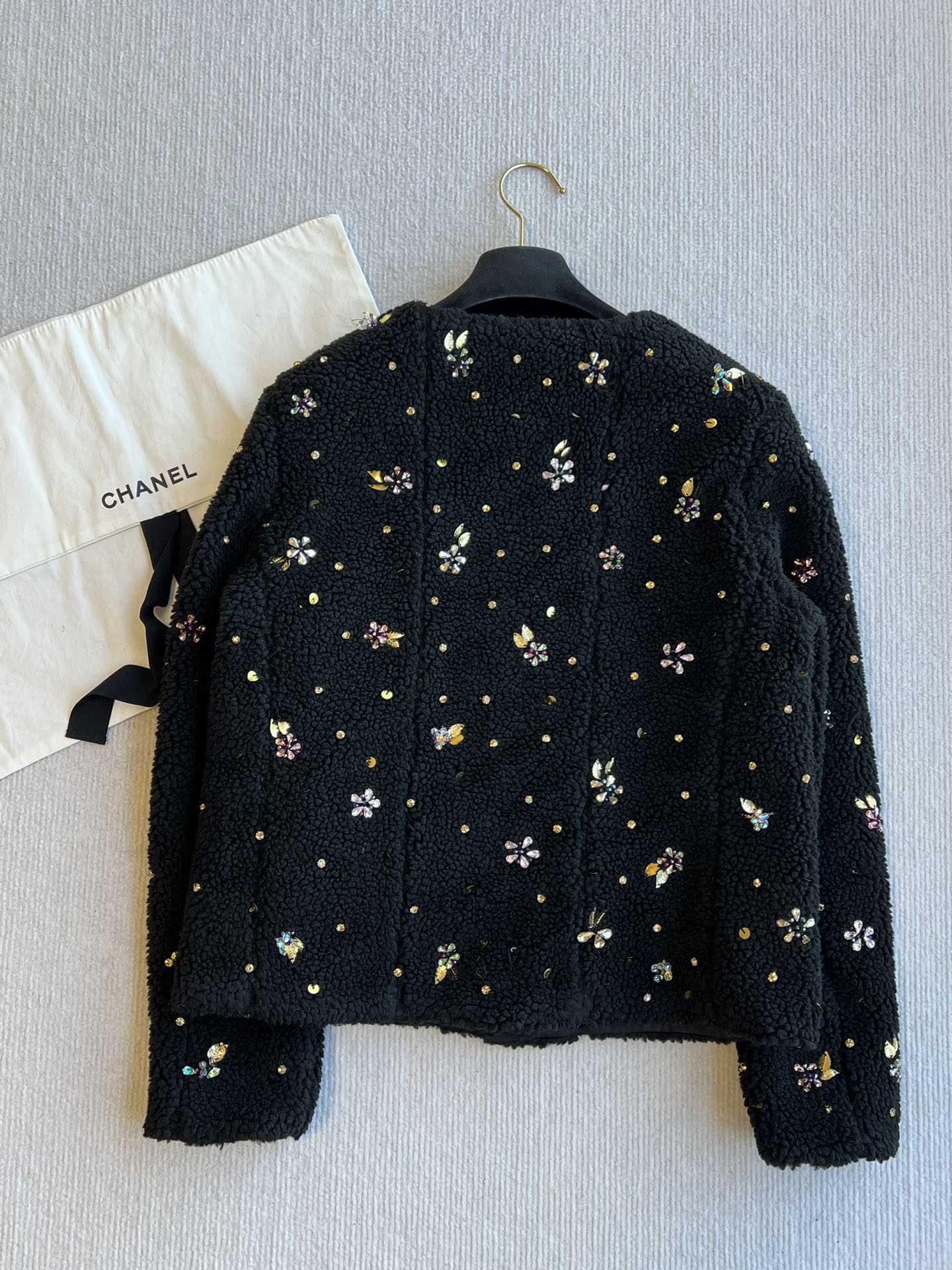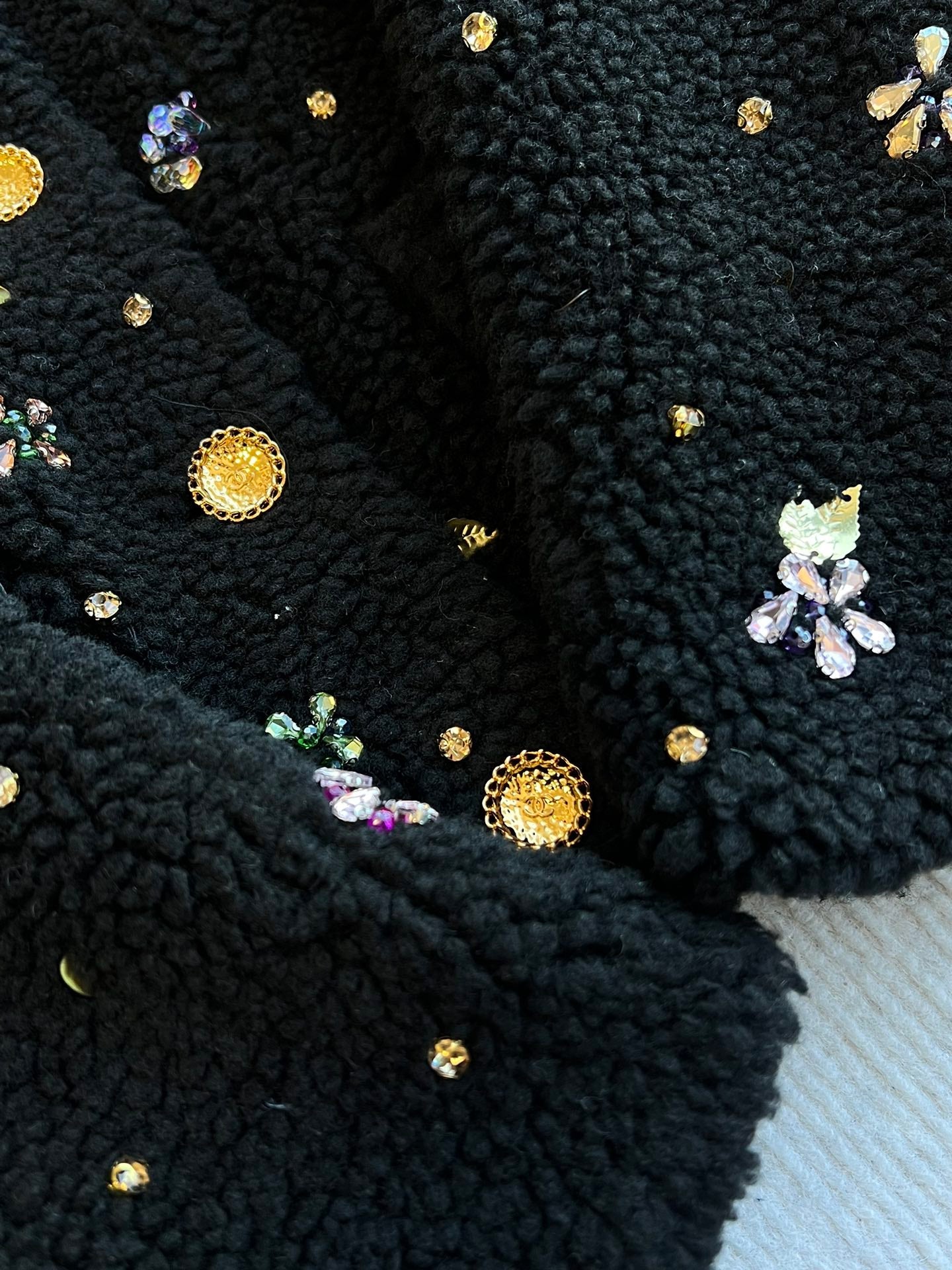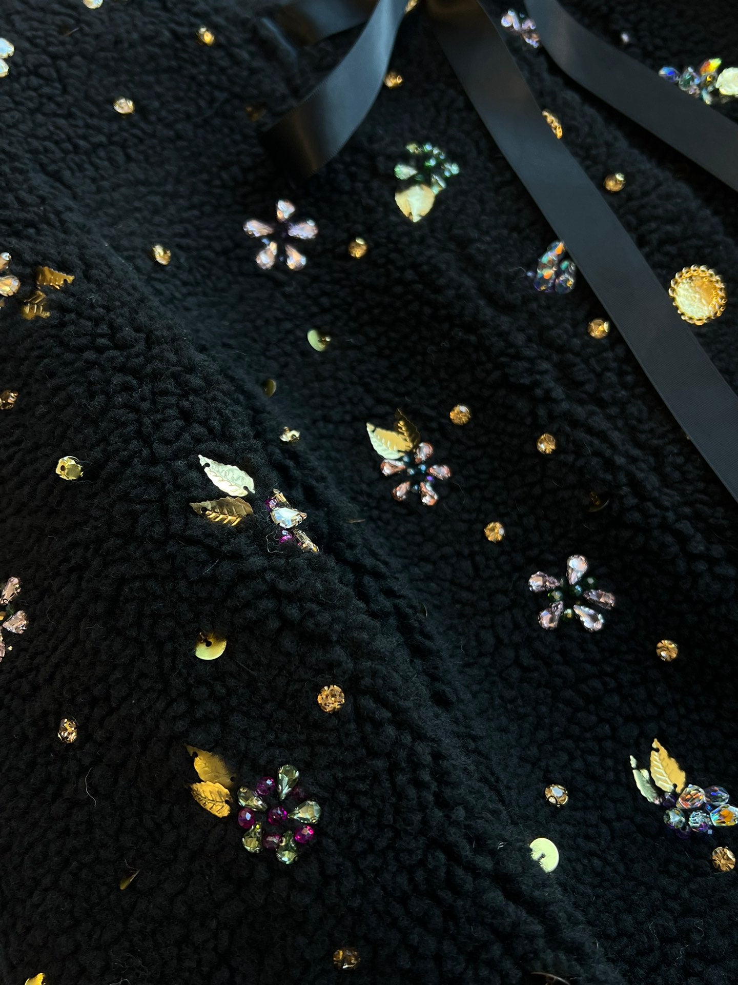 CC 25C Round Neck Jacket Strappy Bow In Black Laine Wool 212350