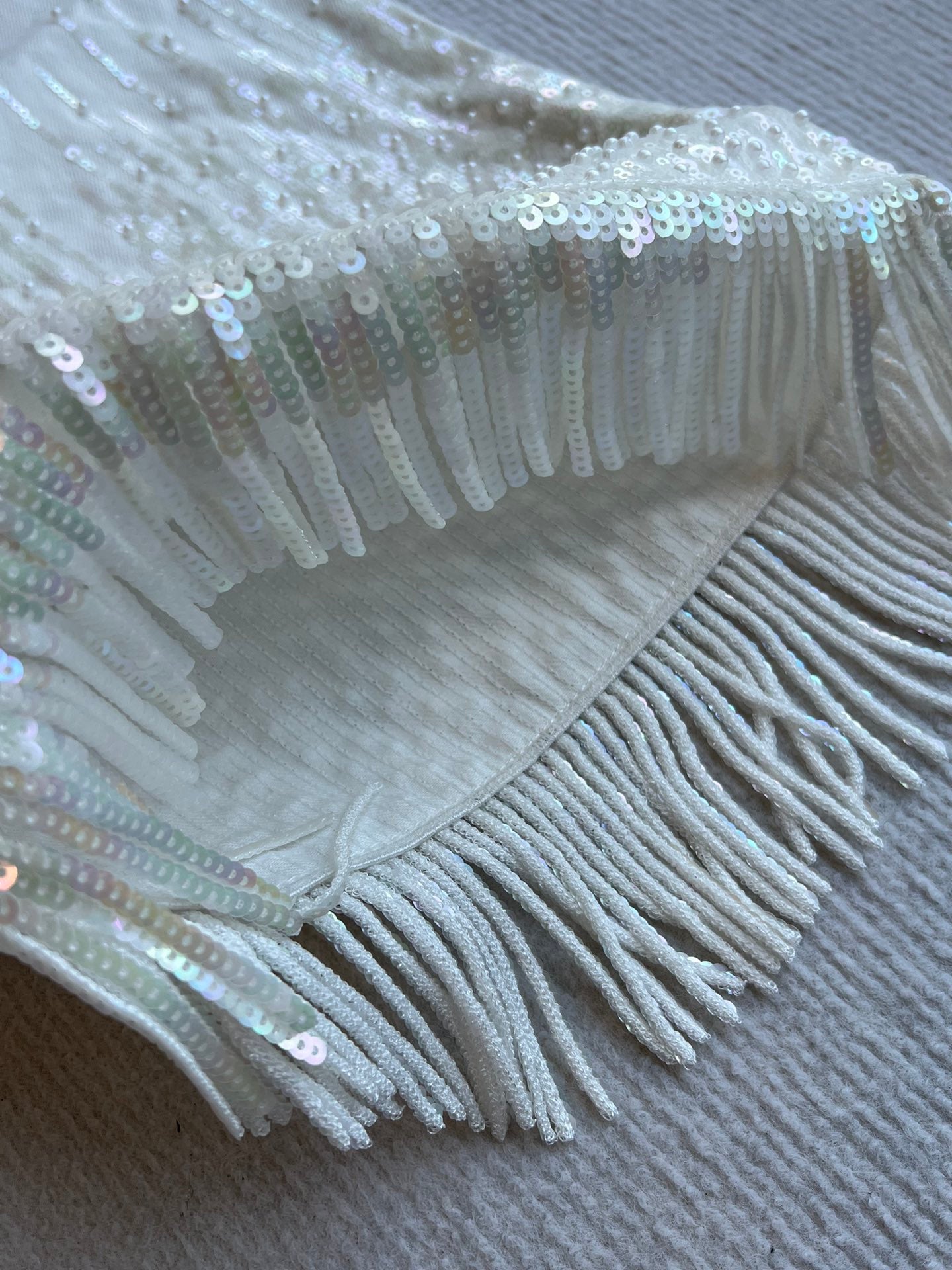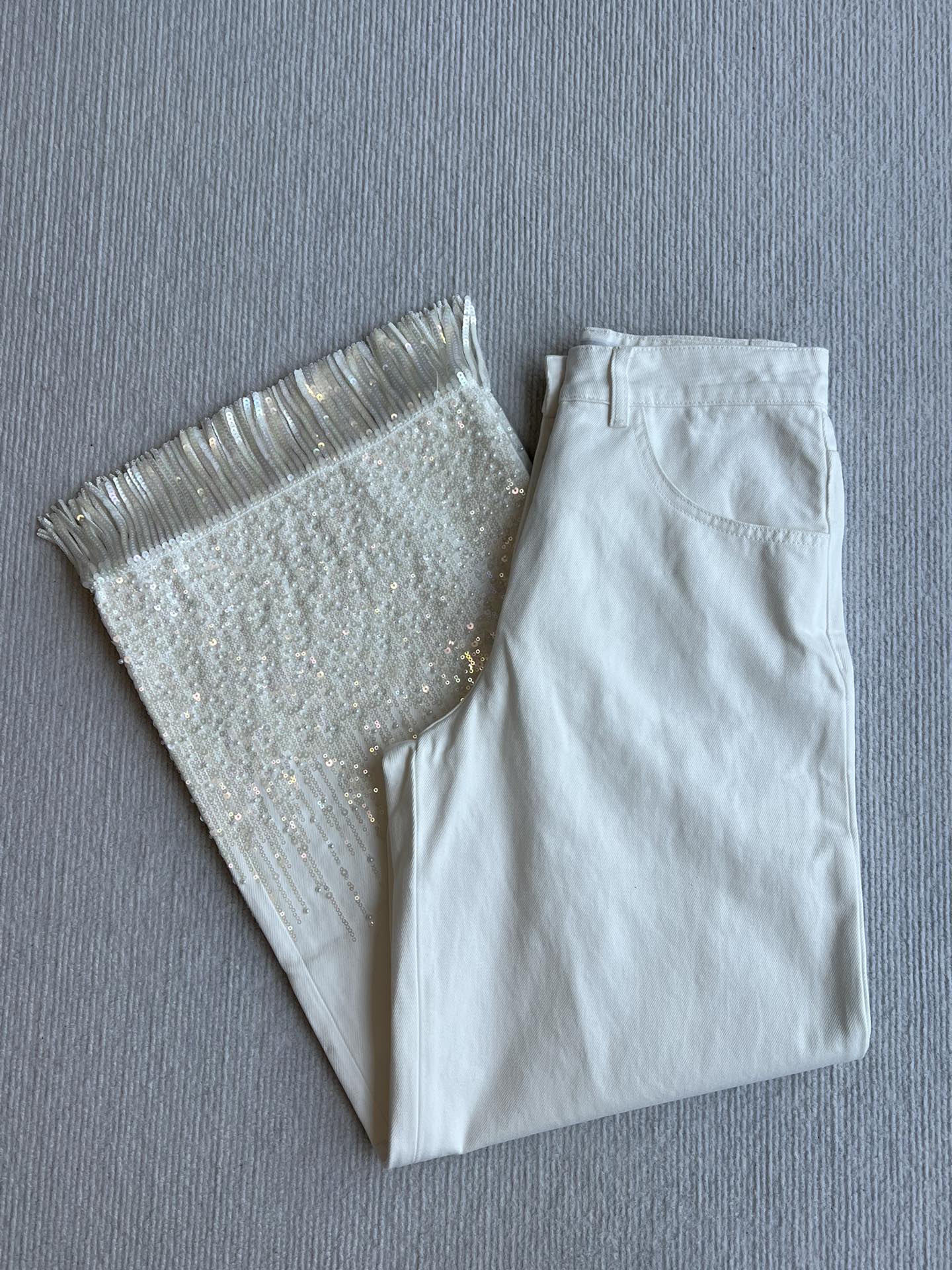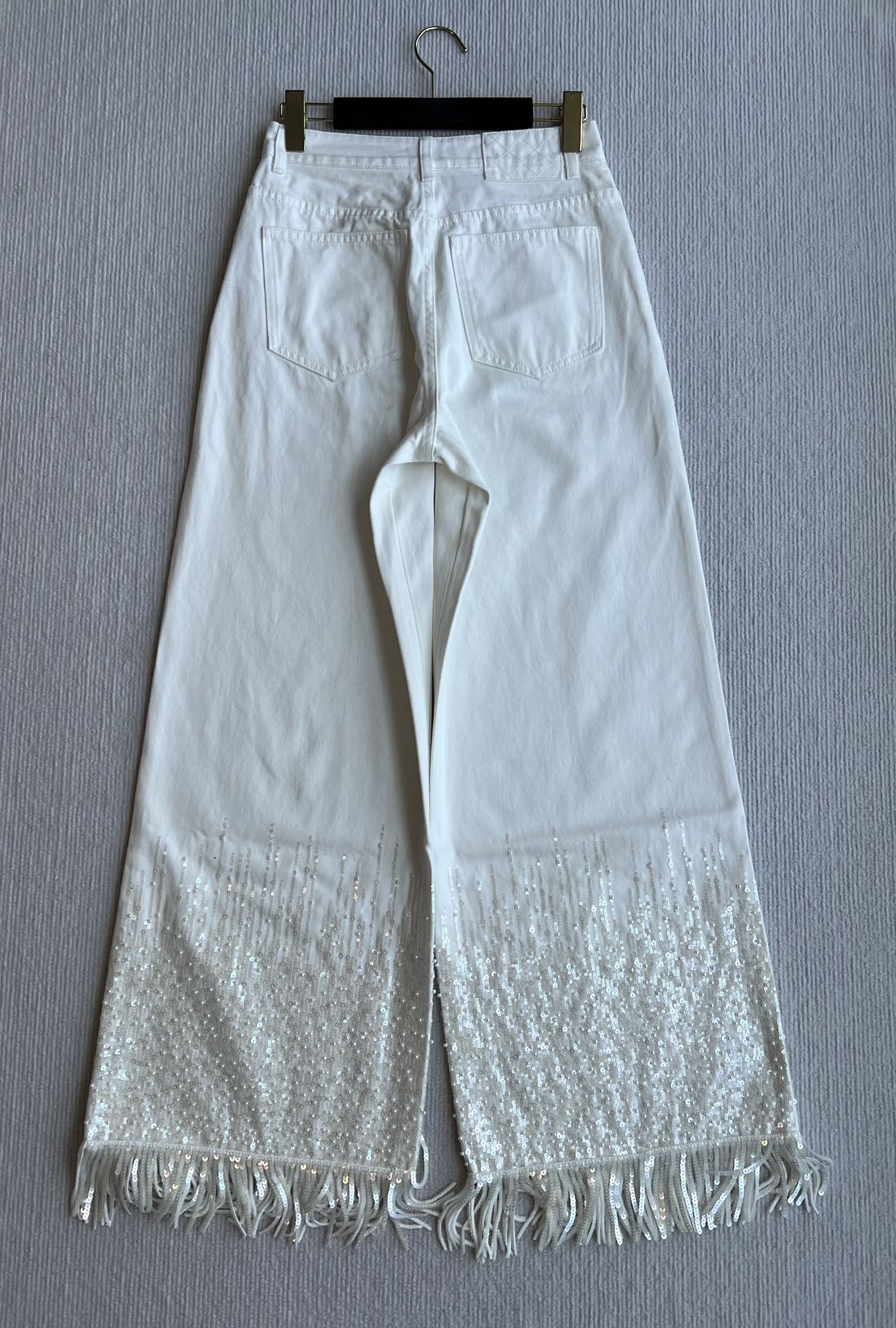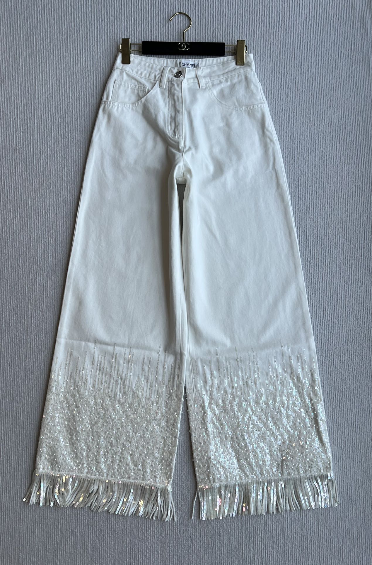 CC 25SS Wide-Leg Pants Beaded Tassel White Denim 277238