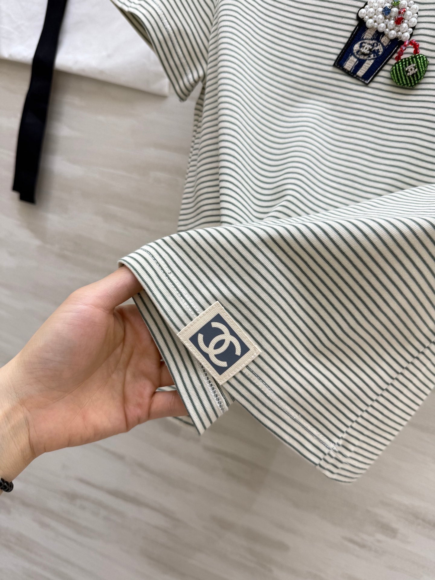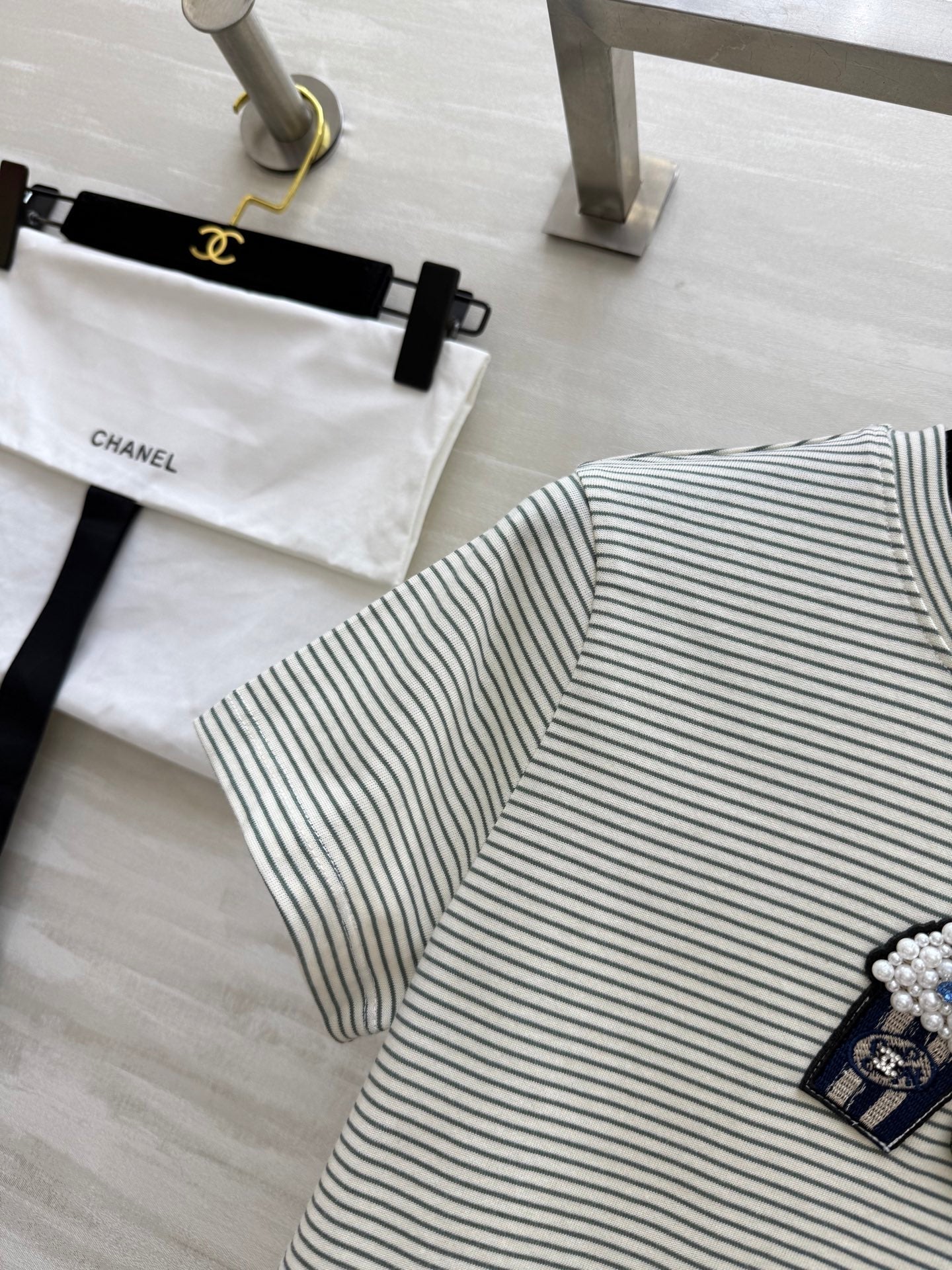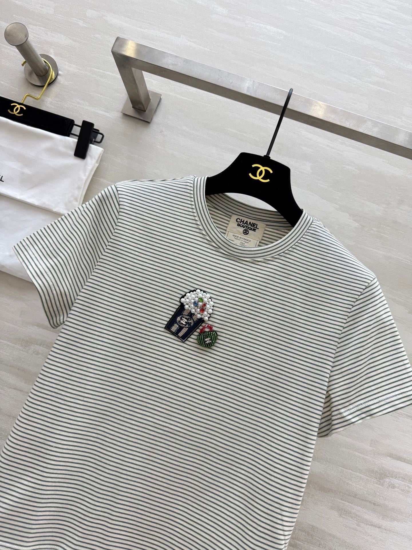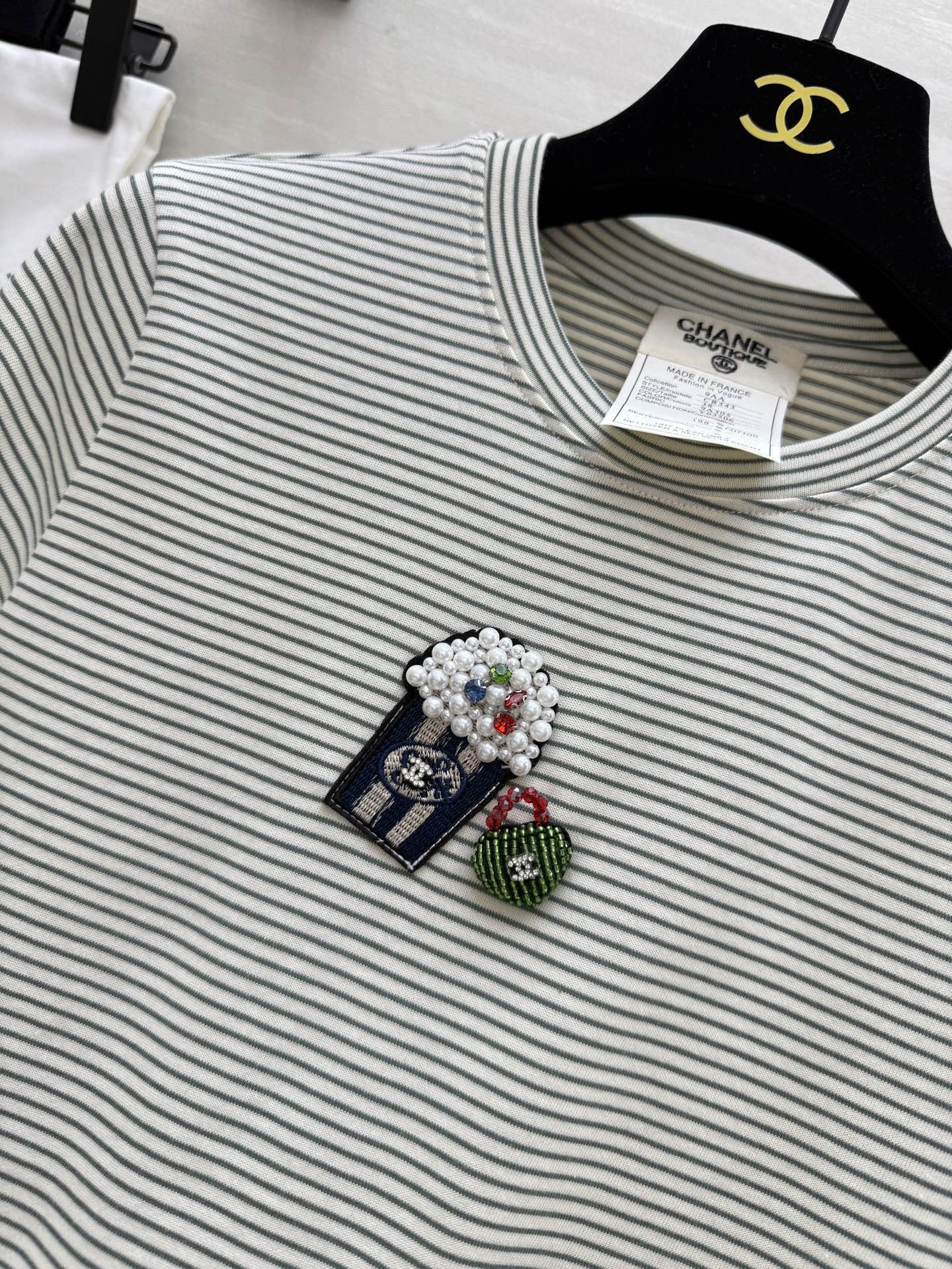 CC Beaded T-shirt Gray White Cotton