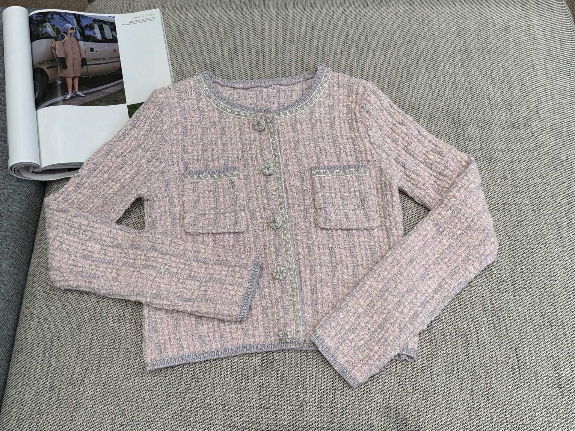CC Tweed Beaded Coat Pink White Cotton Acrylic 251307