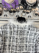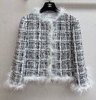 CC Tweed Fur Coat Black White Cotton Polyamide 251826