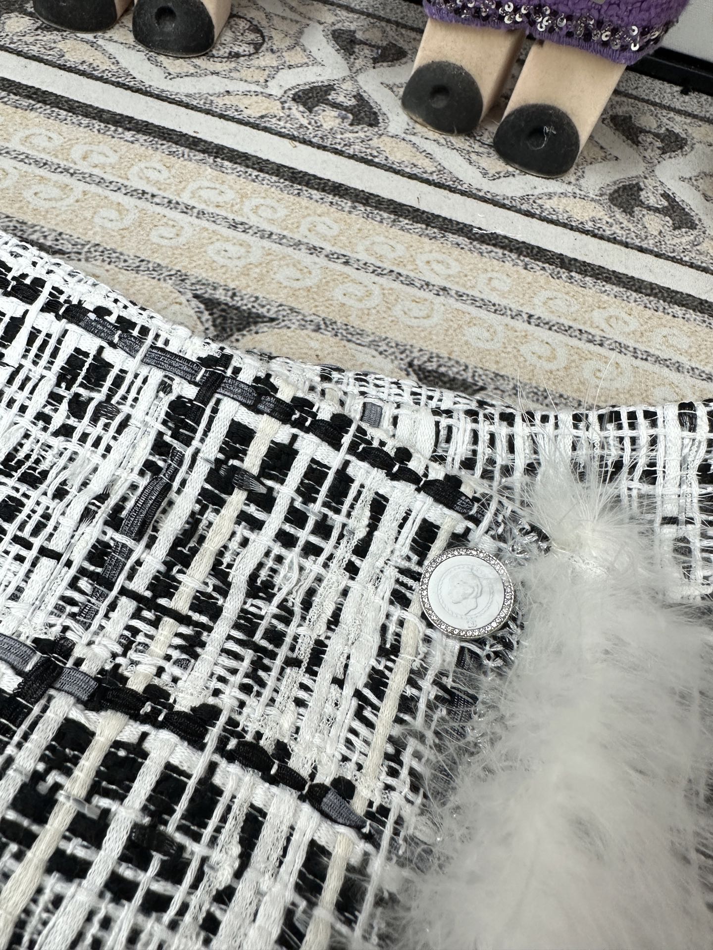 CC Tweed Fur Skirt Black White Cotton Polyamide 251825