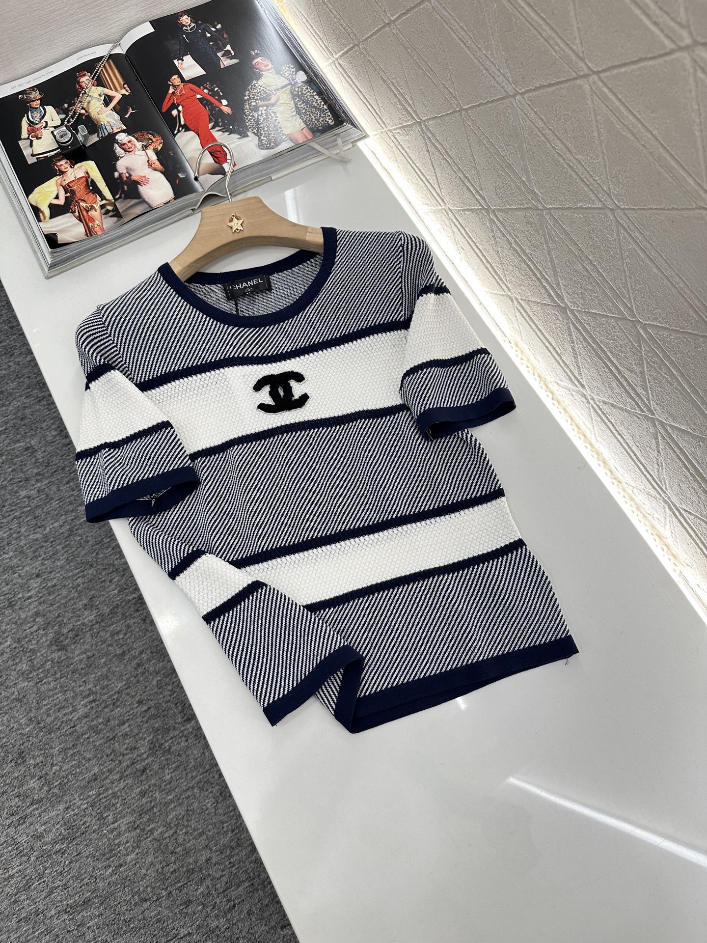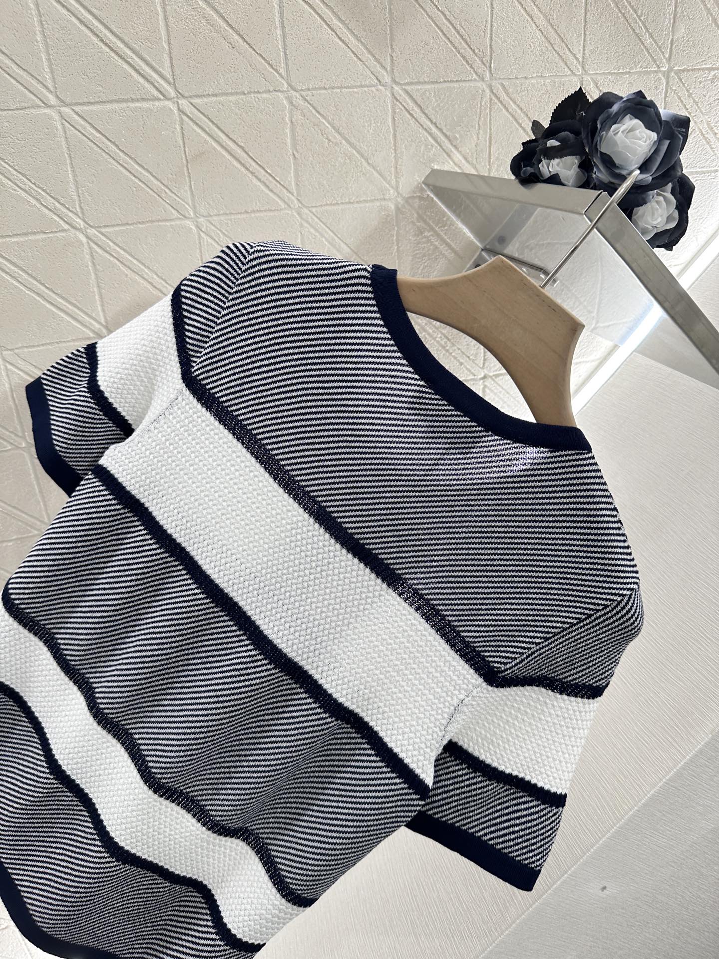 Chanel 25 T-shirt Black White Patchwork Knitted Crewneck