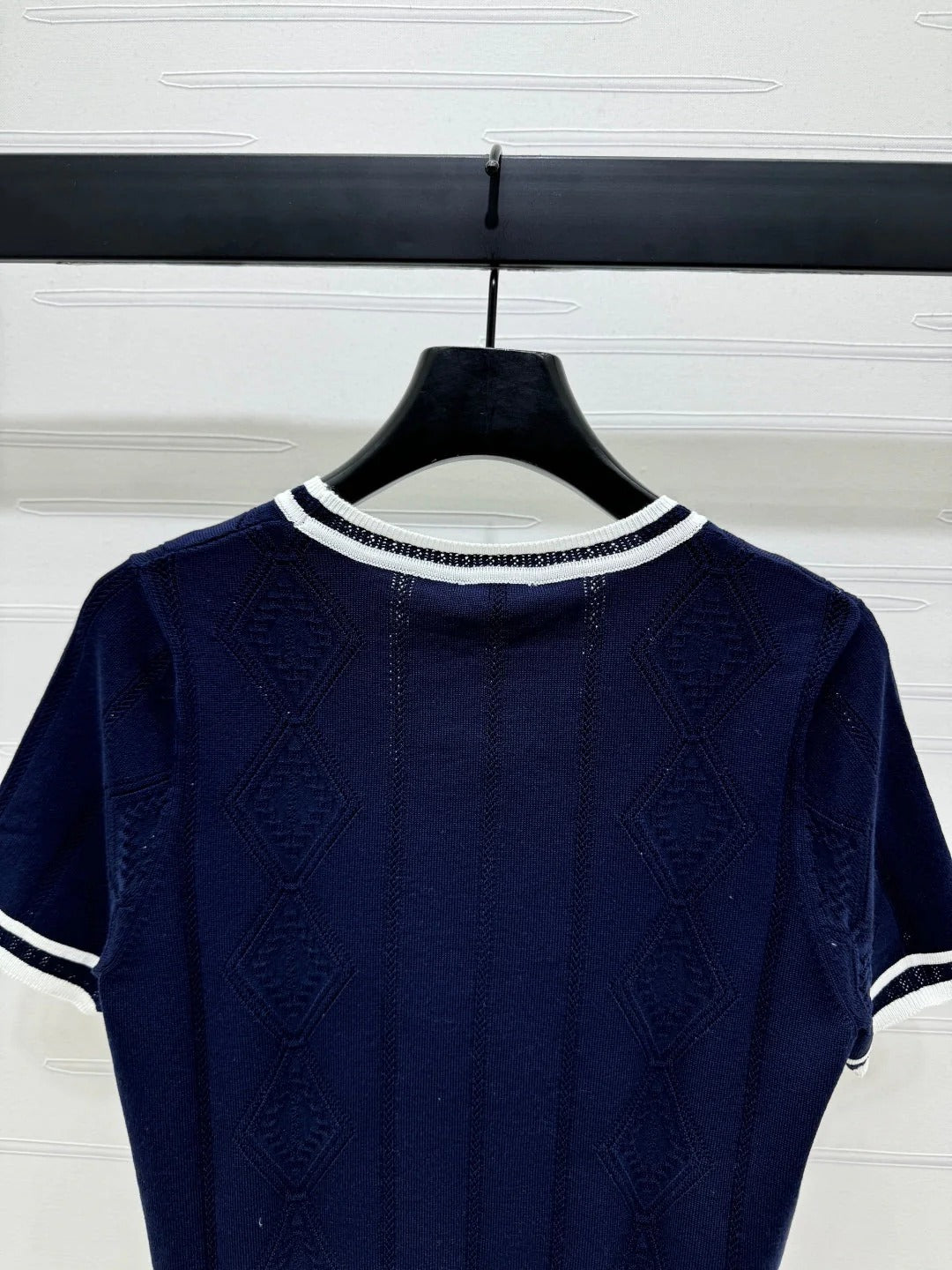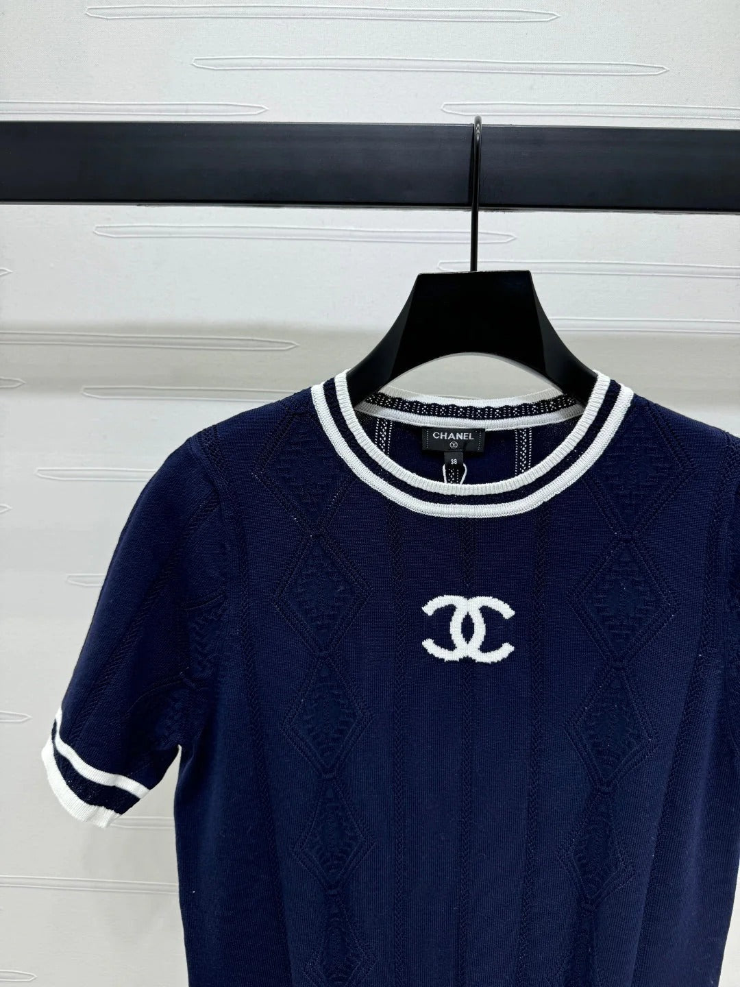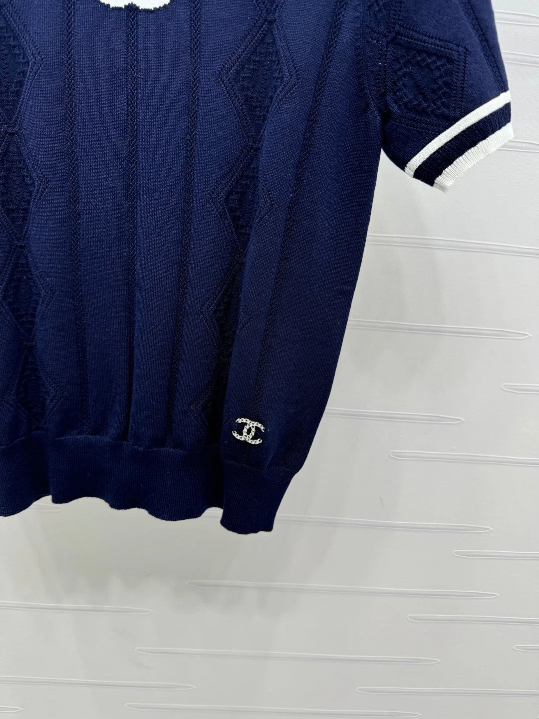 CHANEL 25S DIAMOND KNIT SHORT SLEEVE SHIRT 264172
