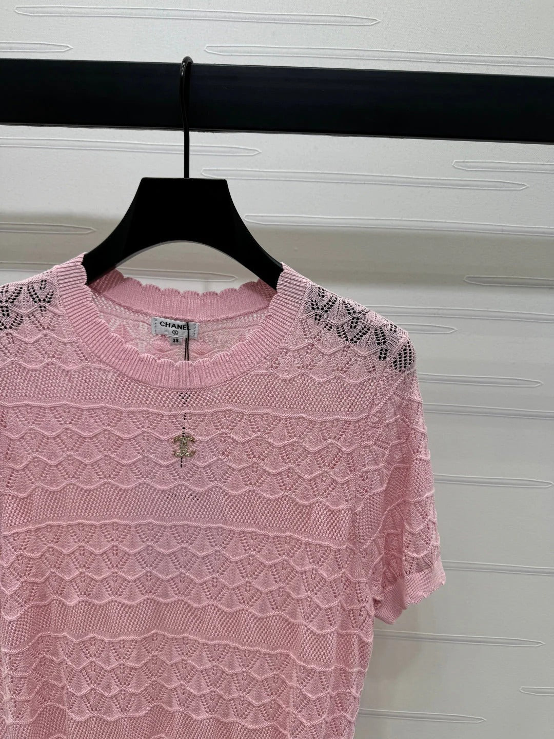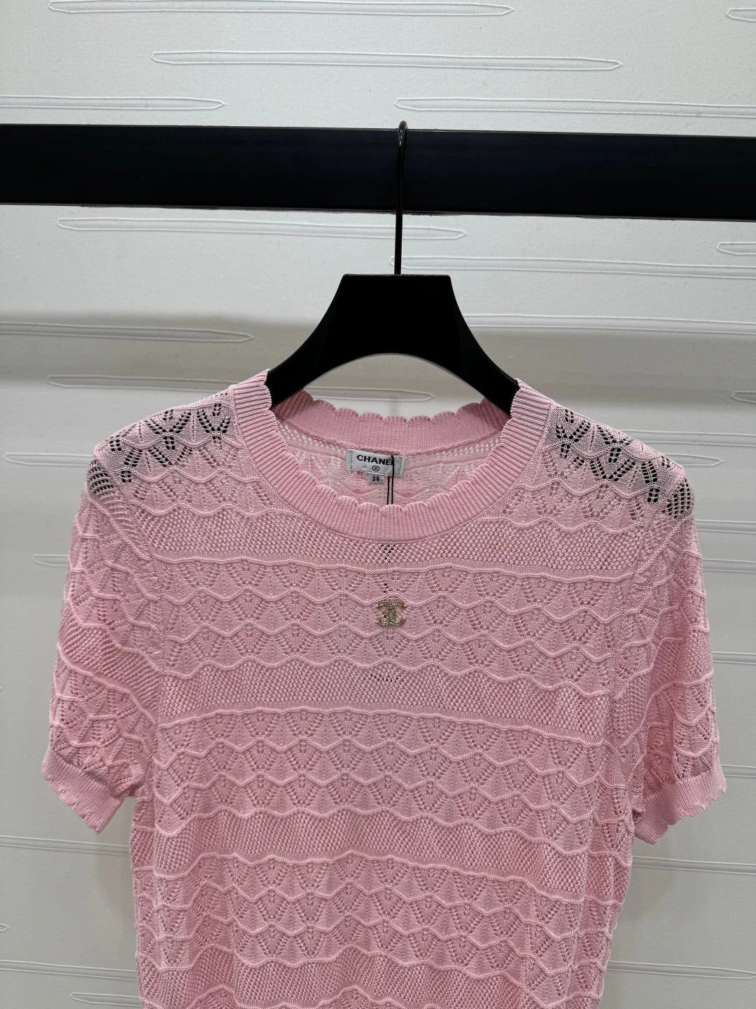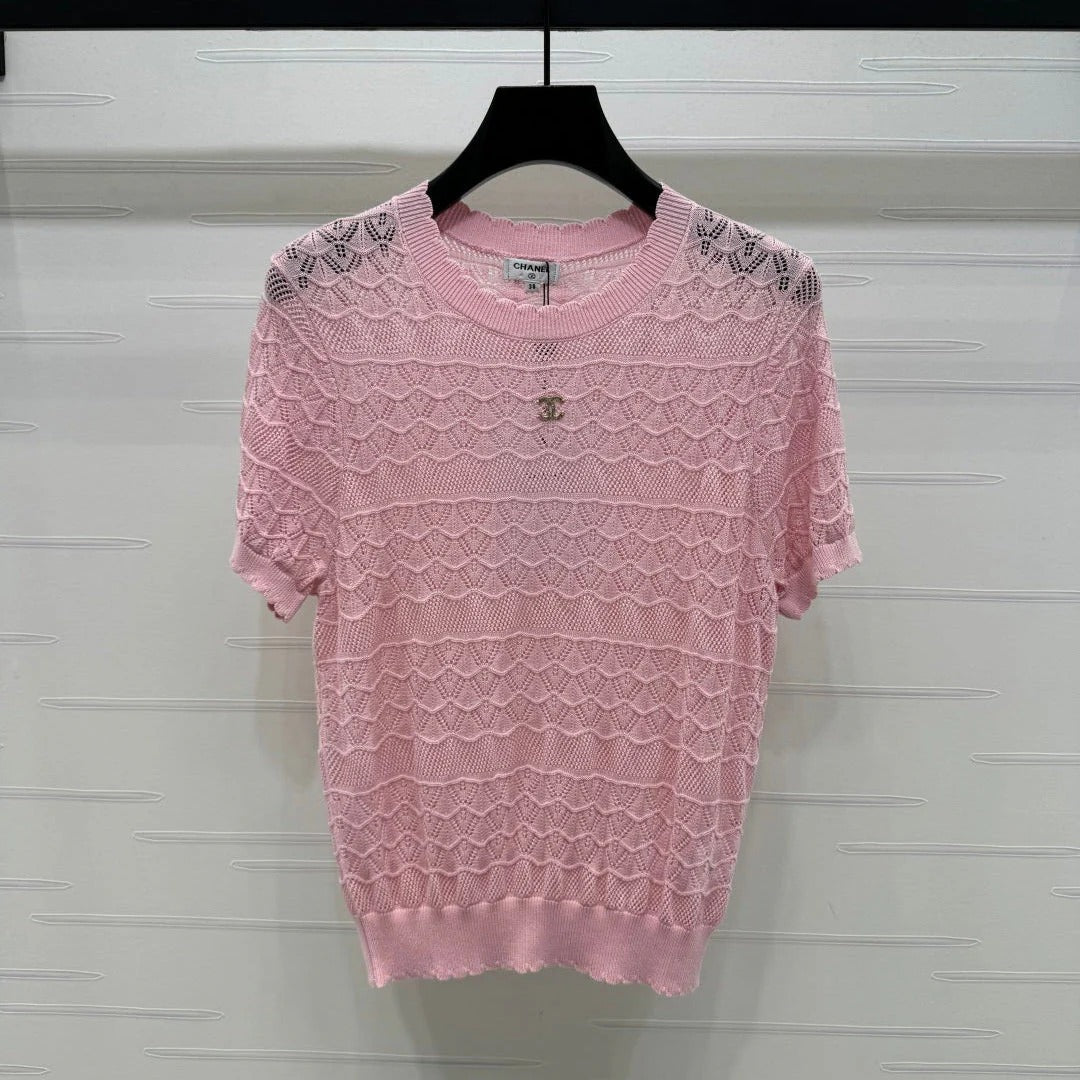 CHANEL 25S HOLLOW KNIT SHORT SLEEVE TOP 264152