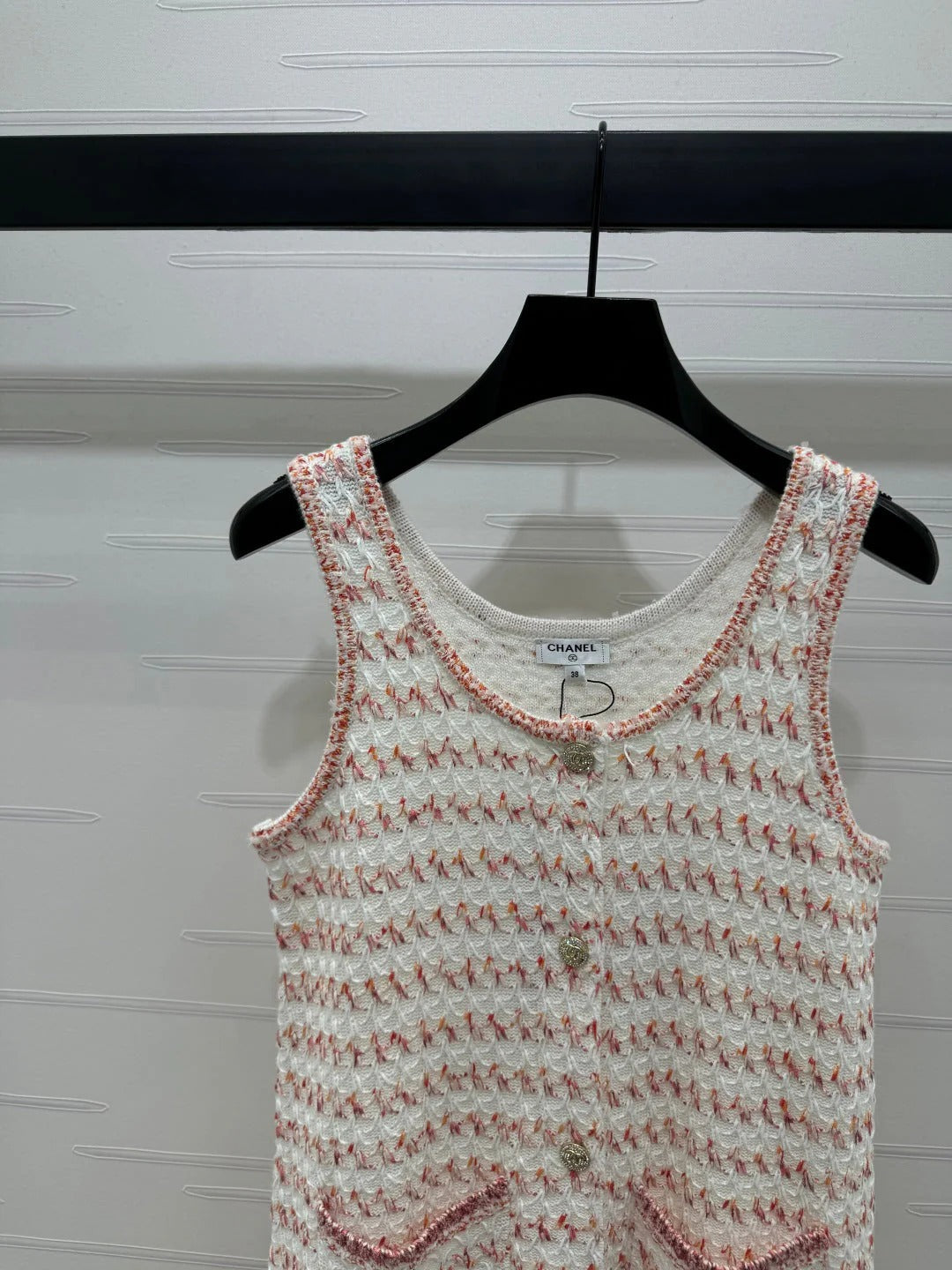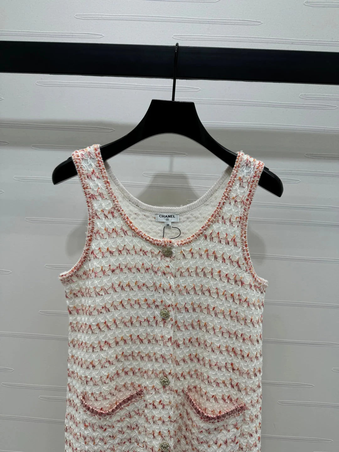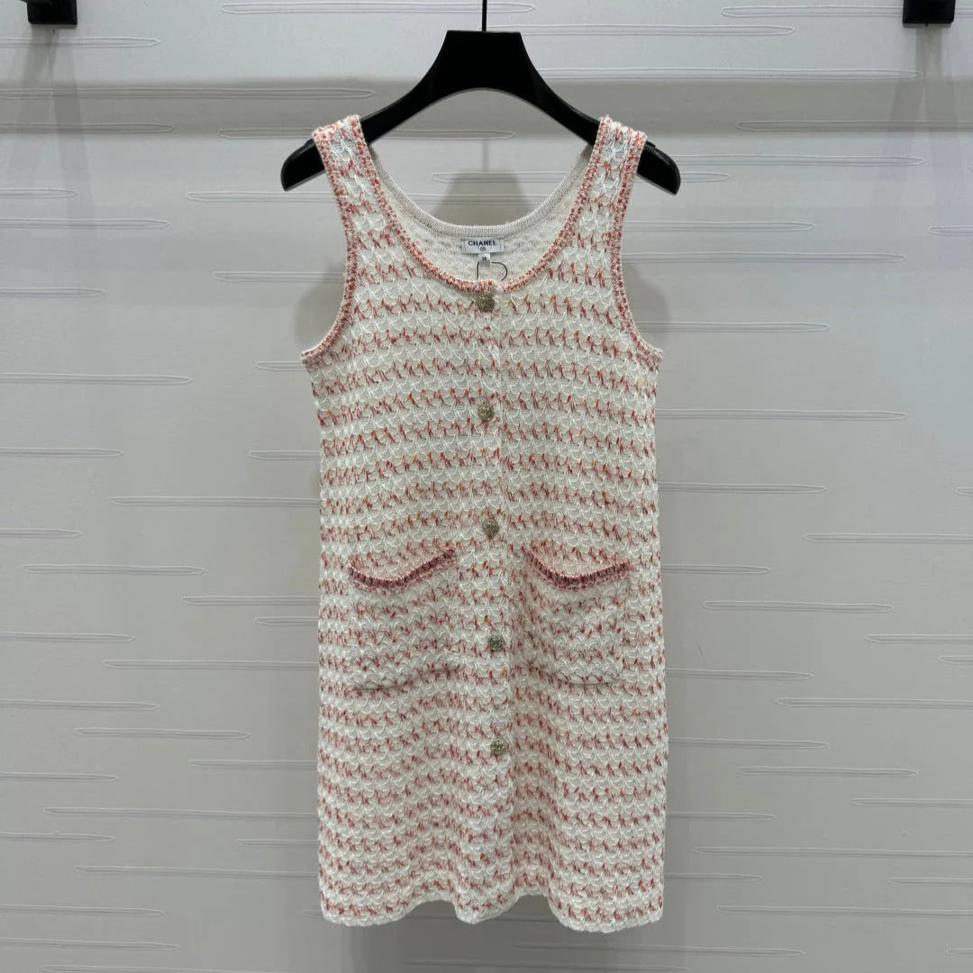 CHANEL 25S ROUND NECK KNIT DRESS WITH PEARL TAG 264026
