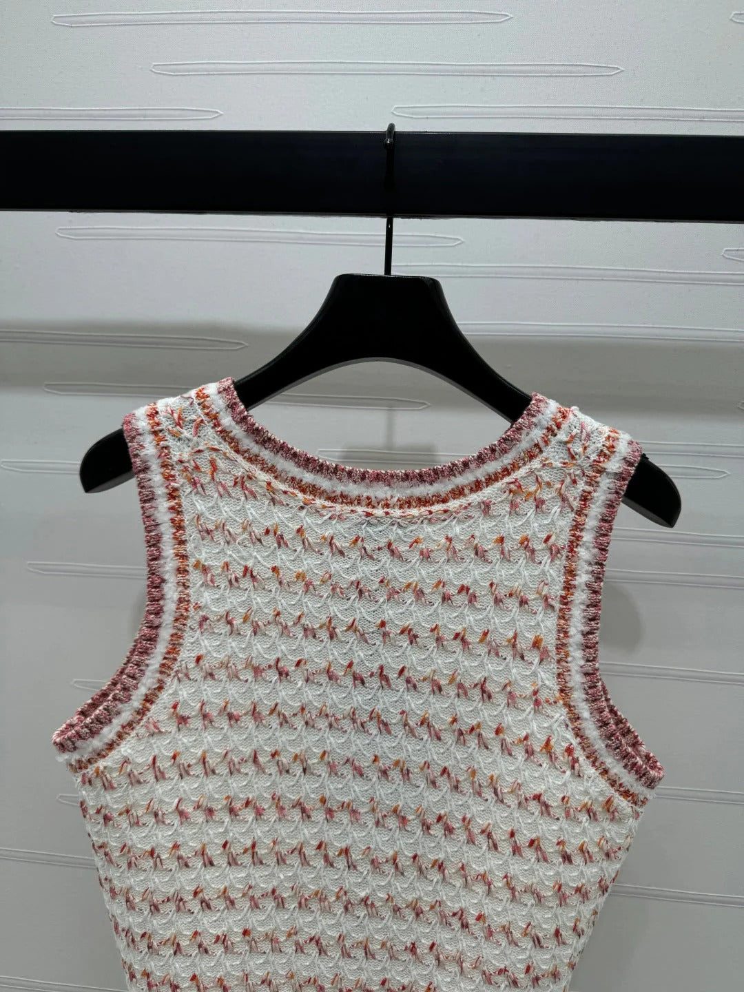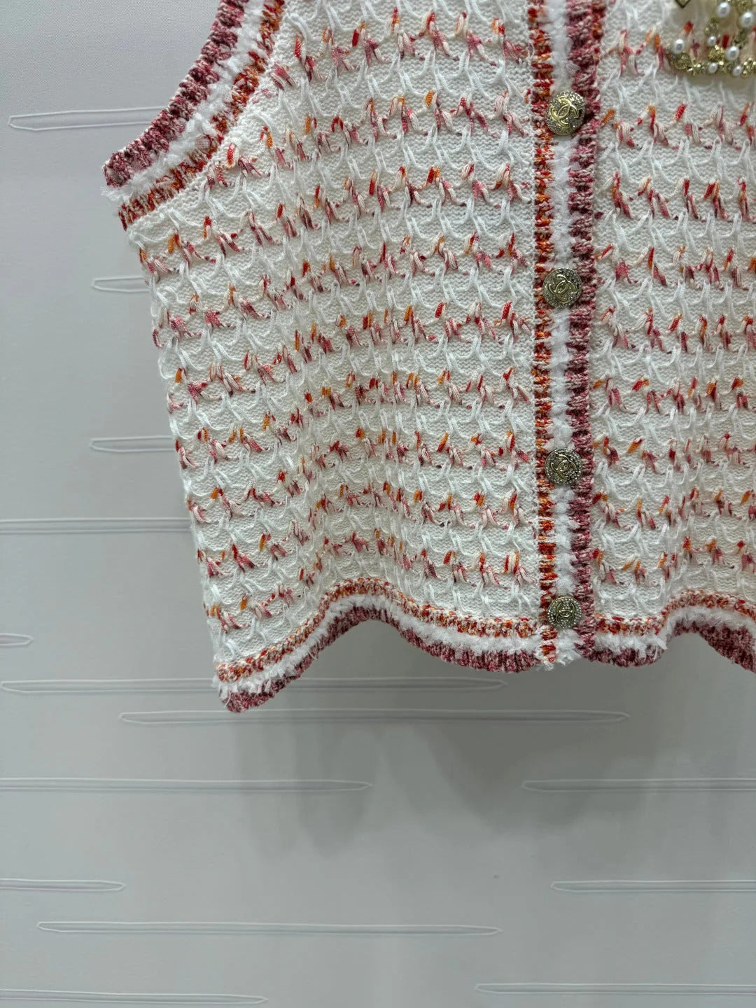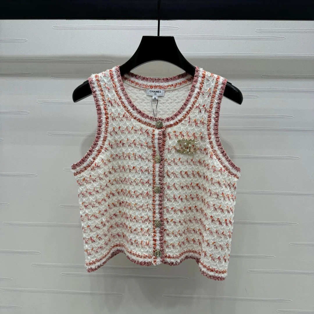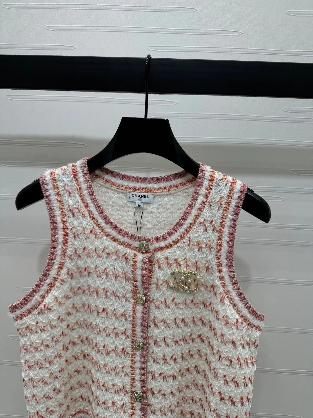 CHANEL 25S ROUND NECK KNITTED VEST WITH PEARL TAG 264029