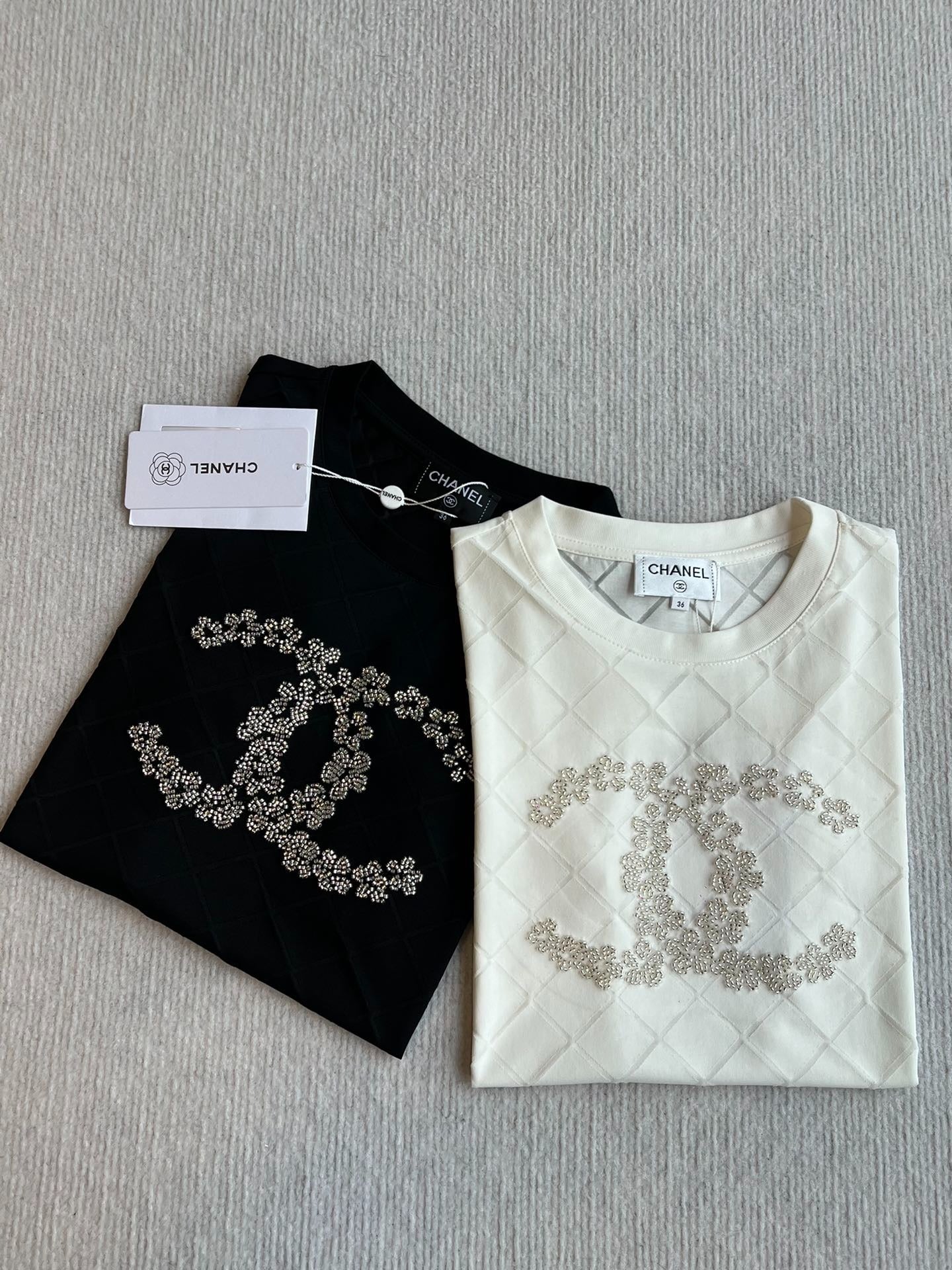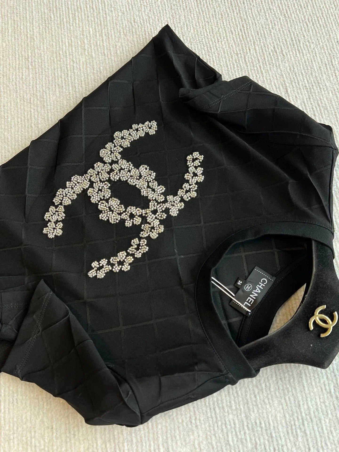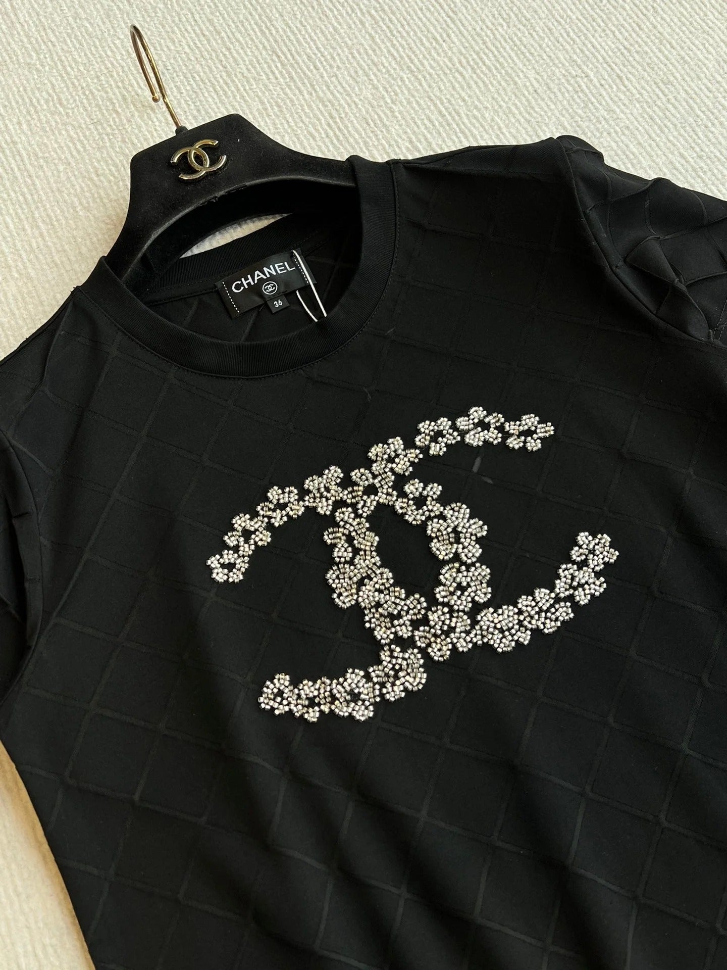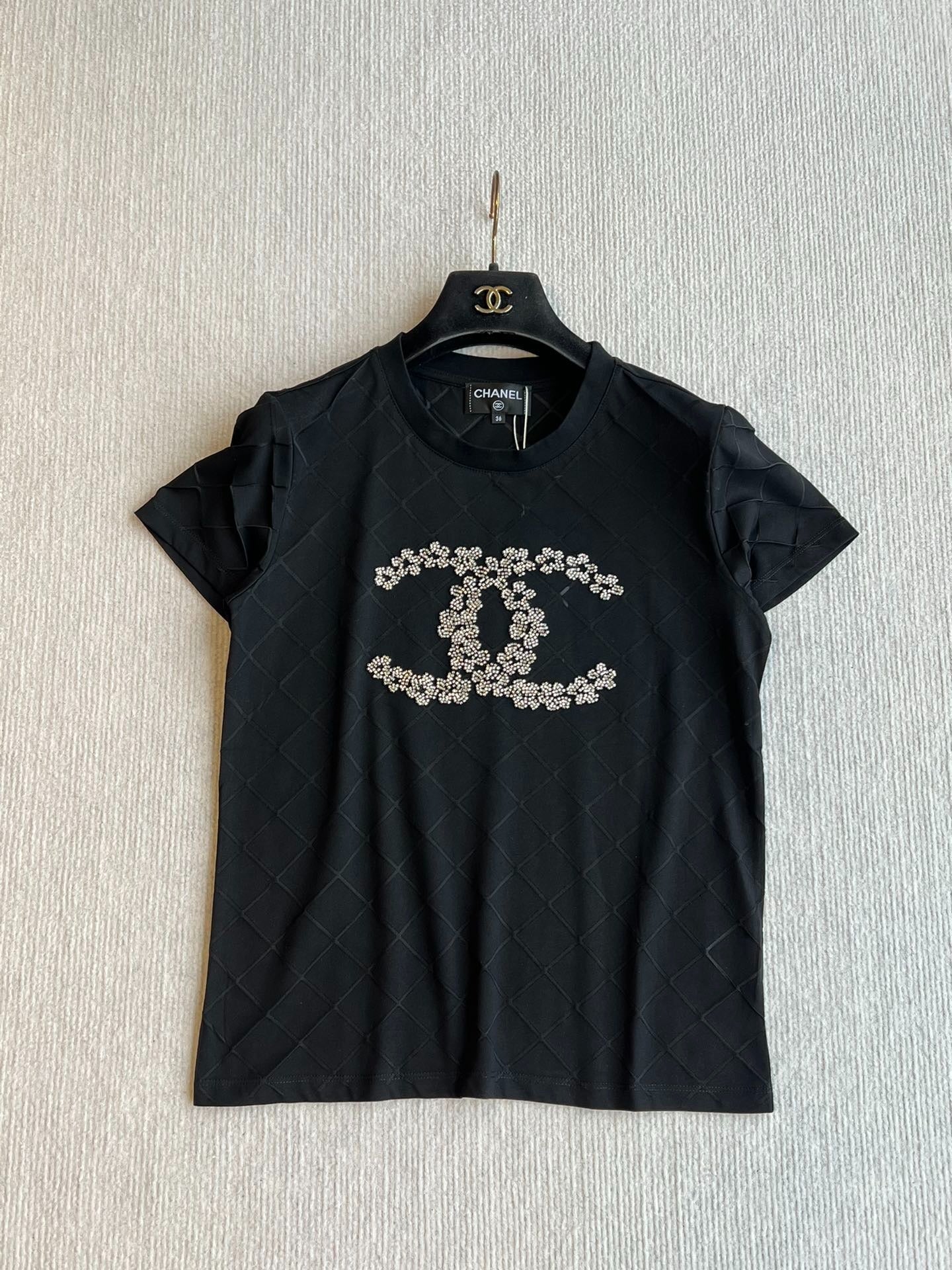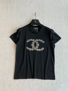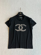 CHANEL BLACK SHORT-SLEEVE EMBELLISHED T-SHIRT
