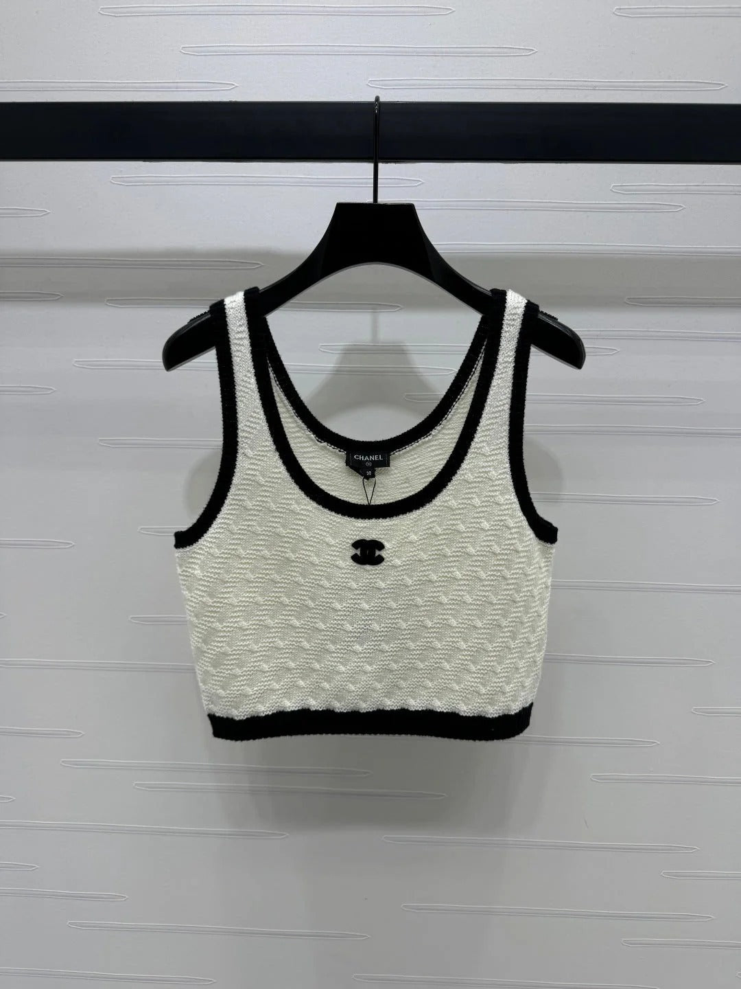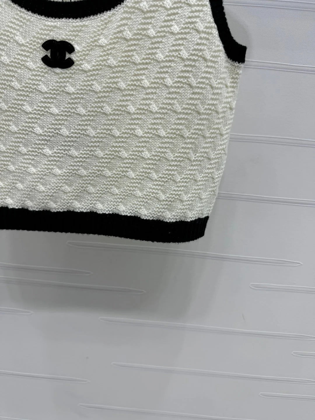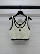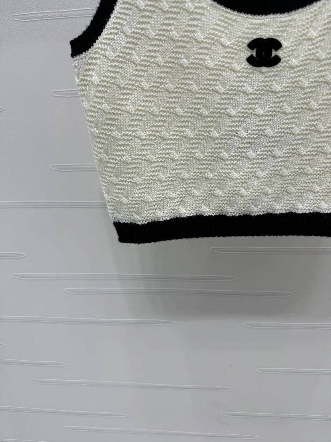 CHANEL CROPPED SLEEVELESS KNIT TOP IN WHITE AND BLACK