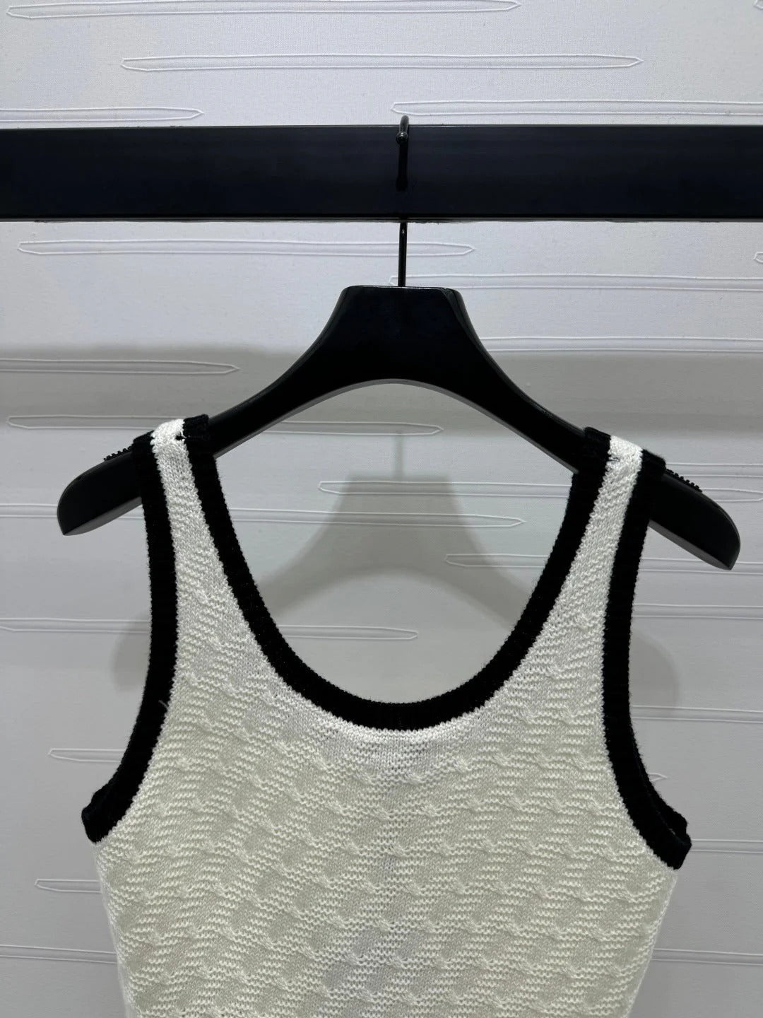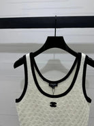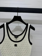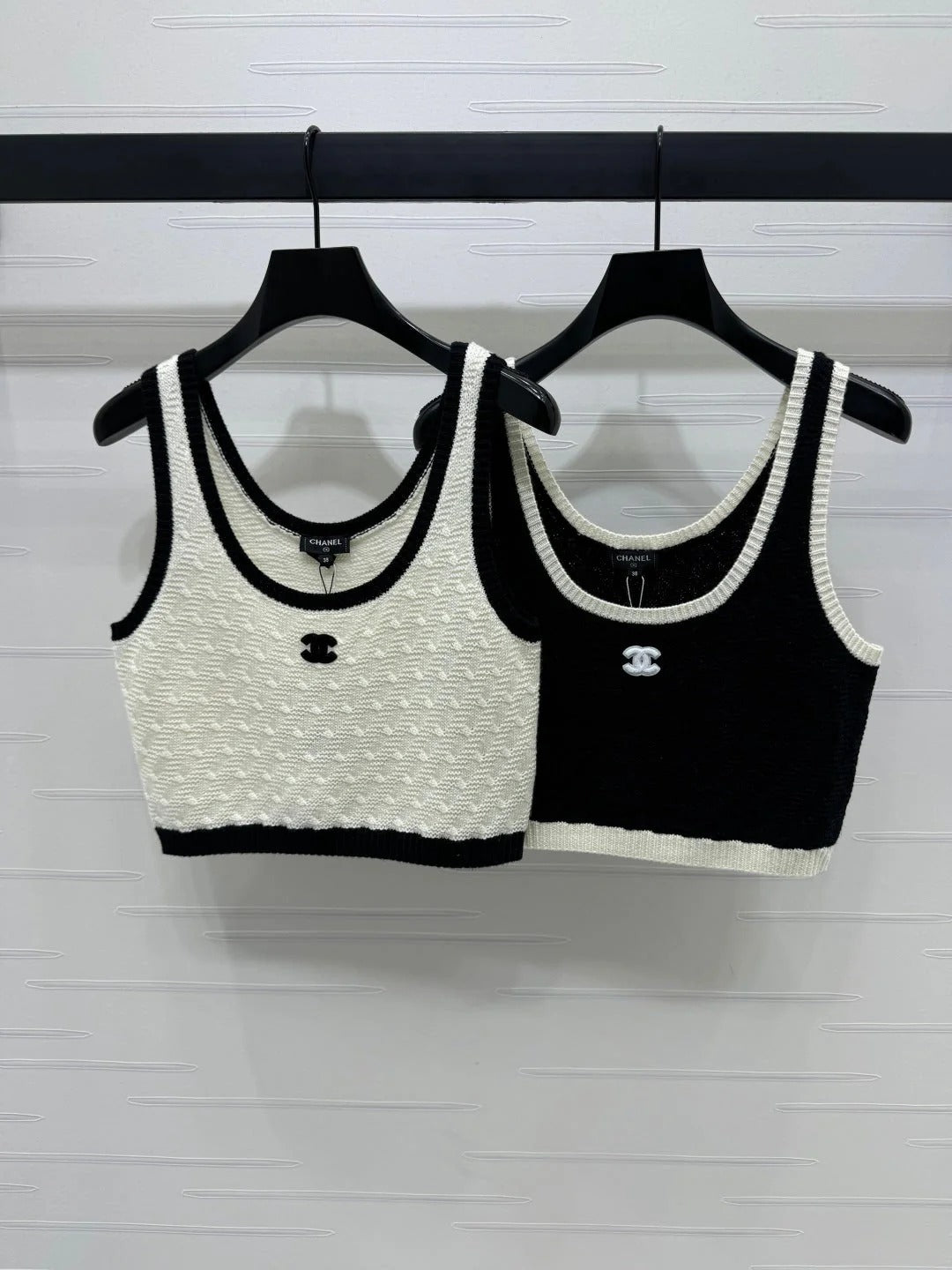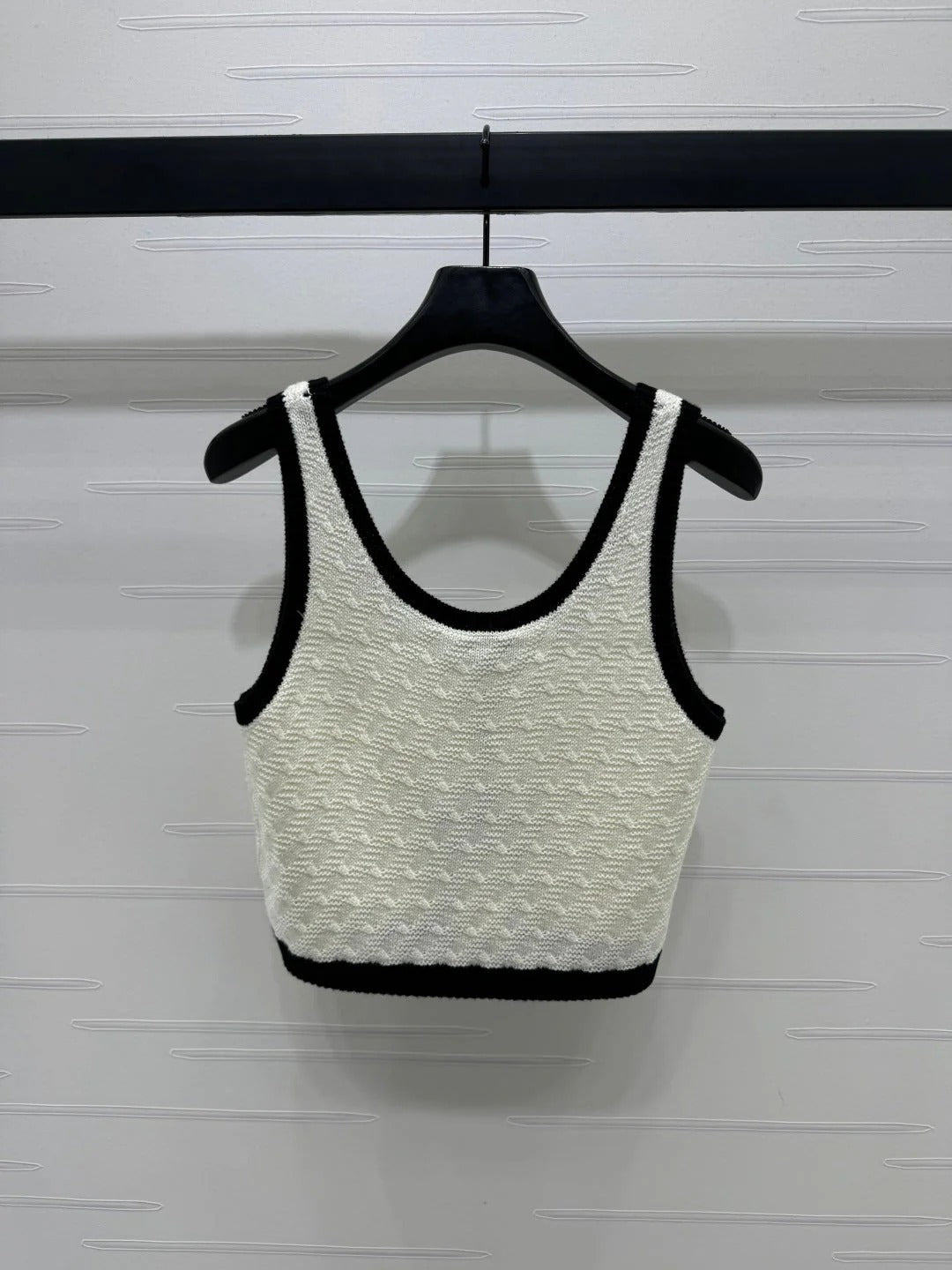 CHANEL CROPPED SLEEVELESS KNIT TOP IN WHITE AND BLACK