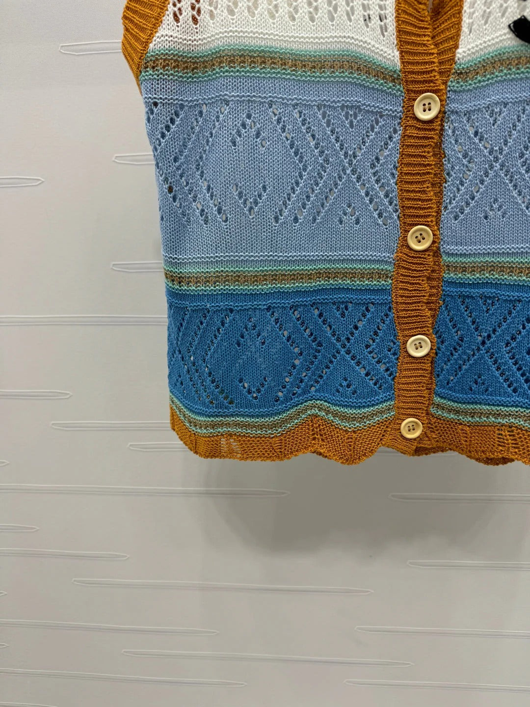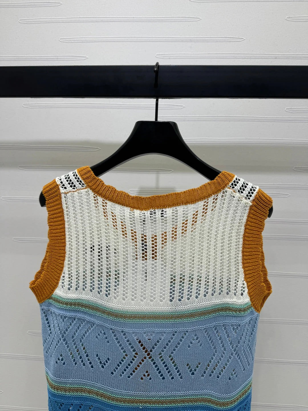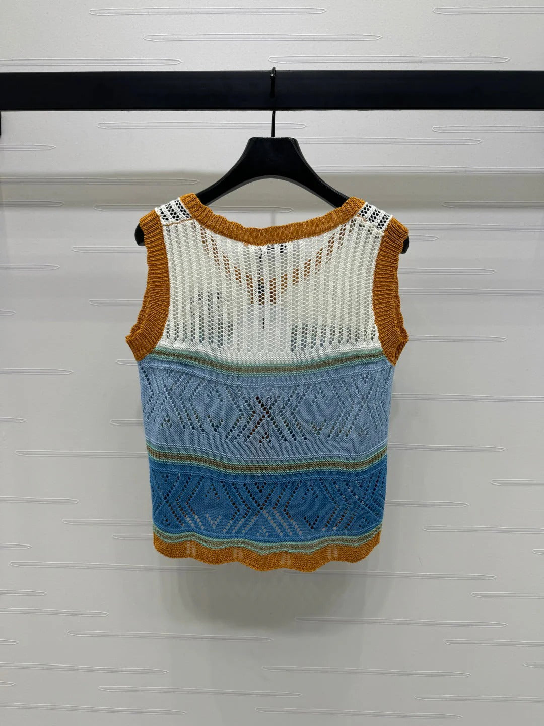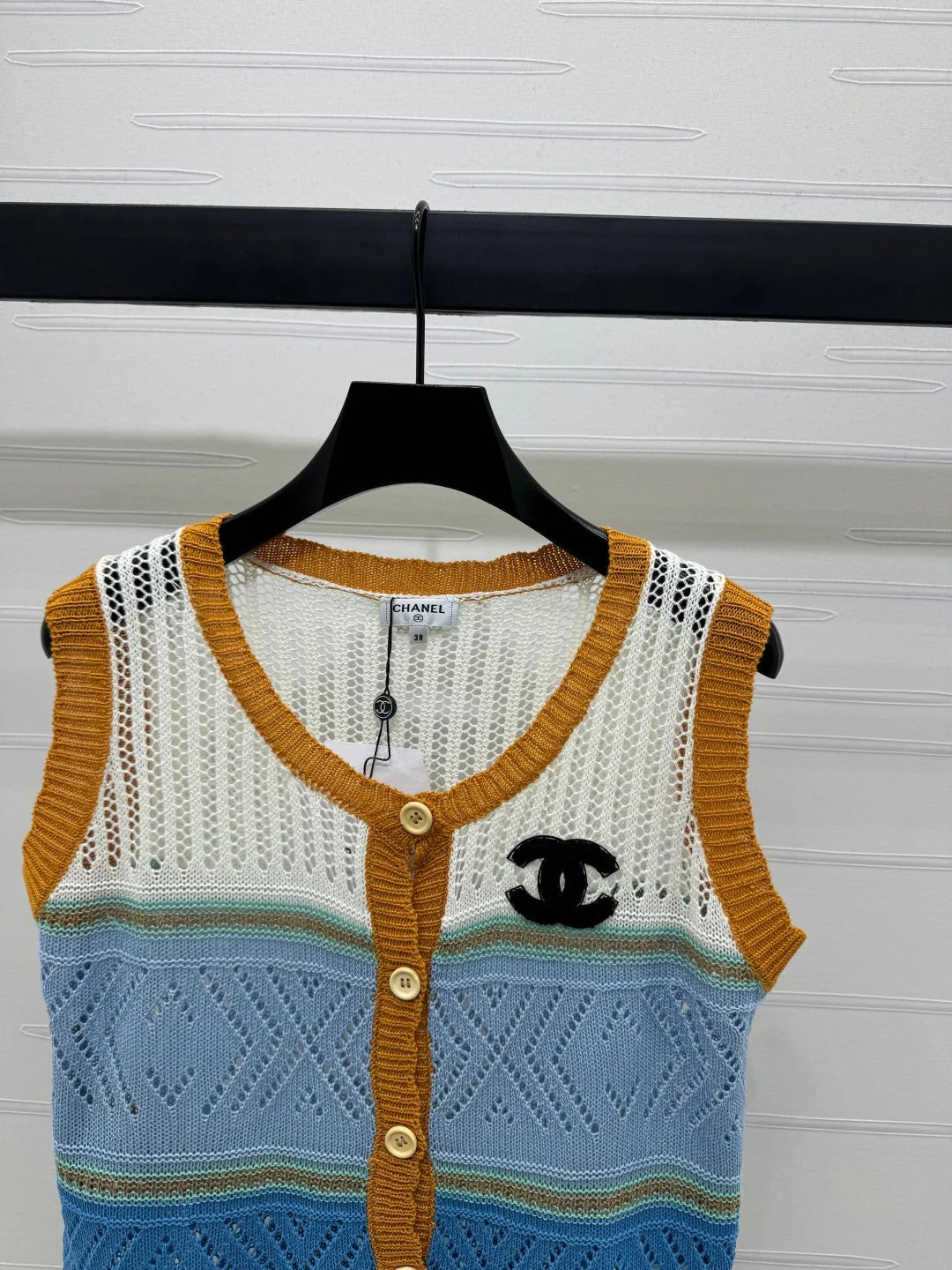 CHANEL EMBROIDERED LOGO OPEN-KNIT VEST 274868