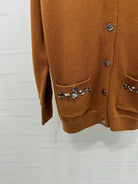 CHANEL HEAVY KNIT CARDIGAN WITH EMBELLISHED FLORAL DETAILS 274877
