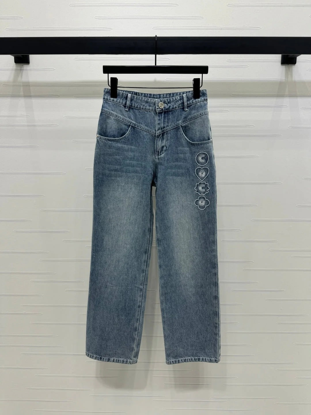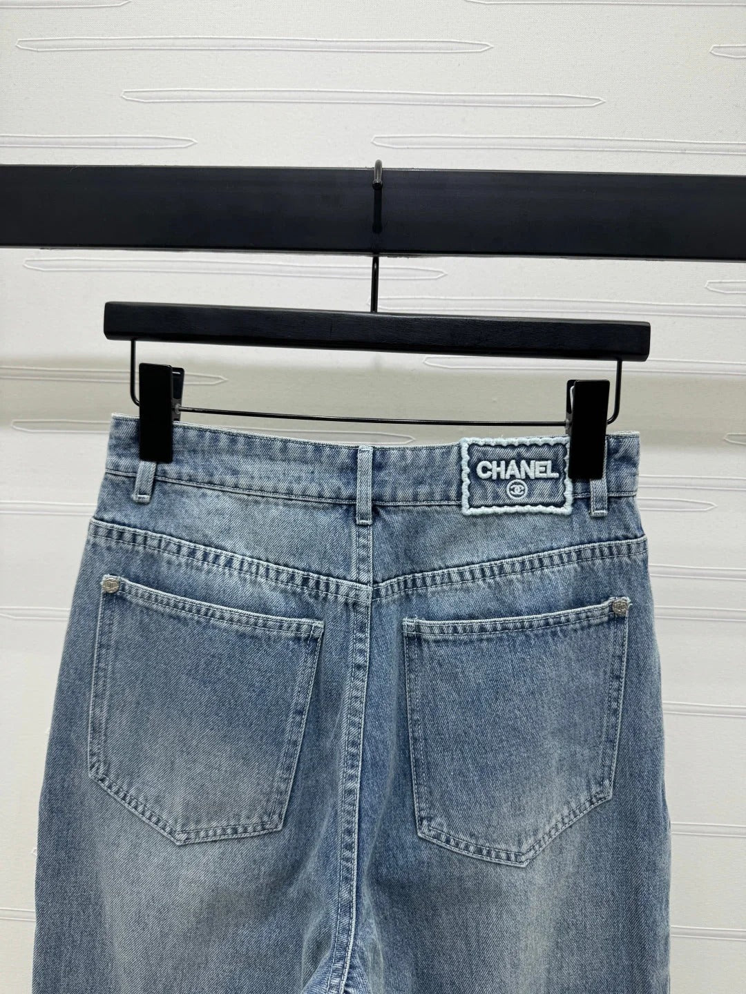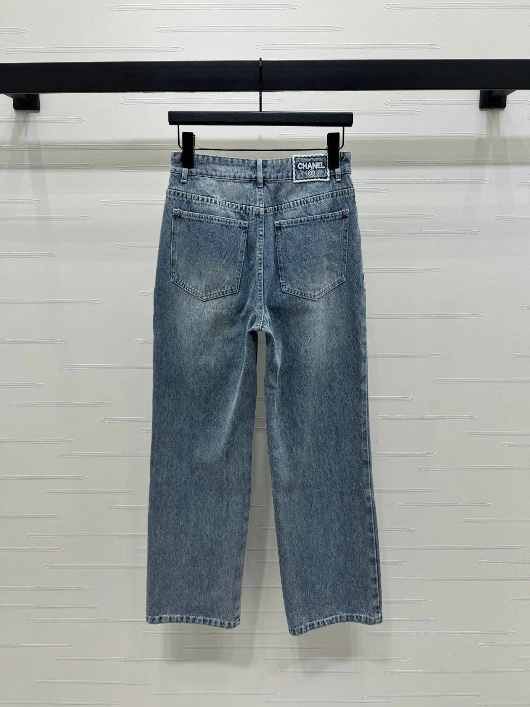 CHANEL HIGH-WAIST STRAIGHT-LEG DENIM PANTS