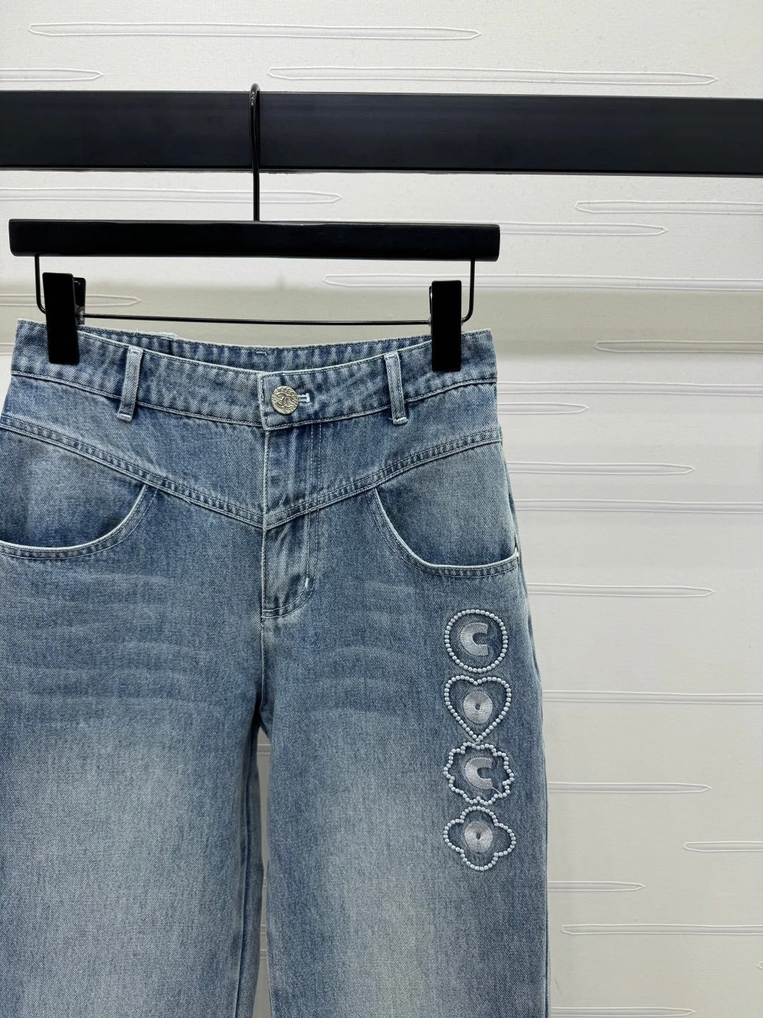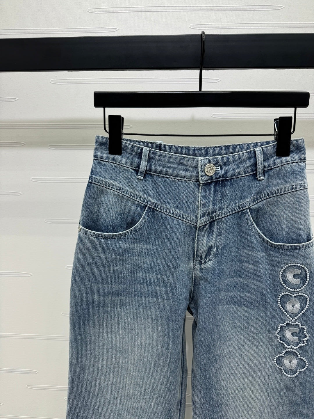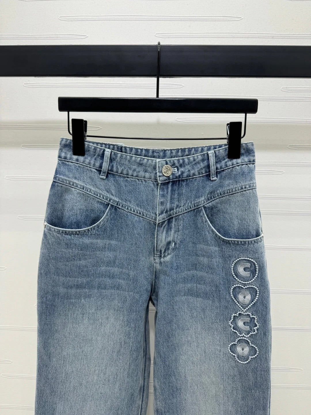 CHANEL HIGH-WAIST STRAIGHT-LEG DENIM PANTS