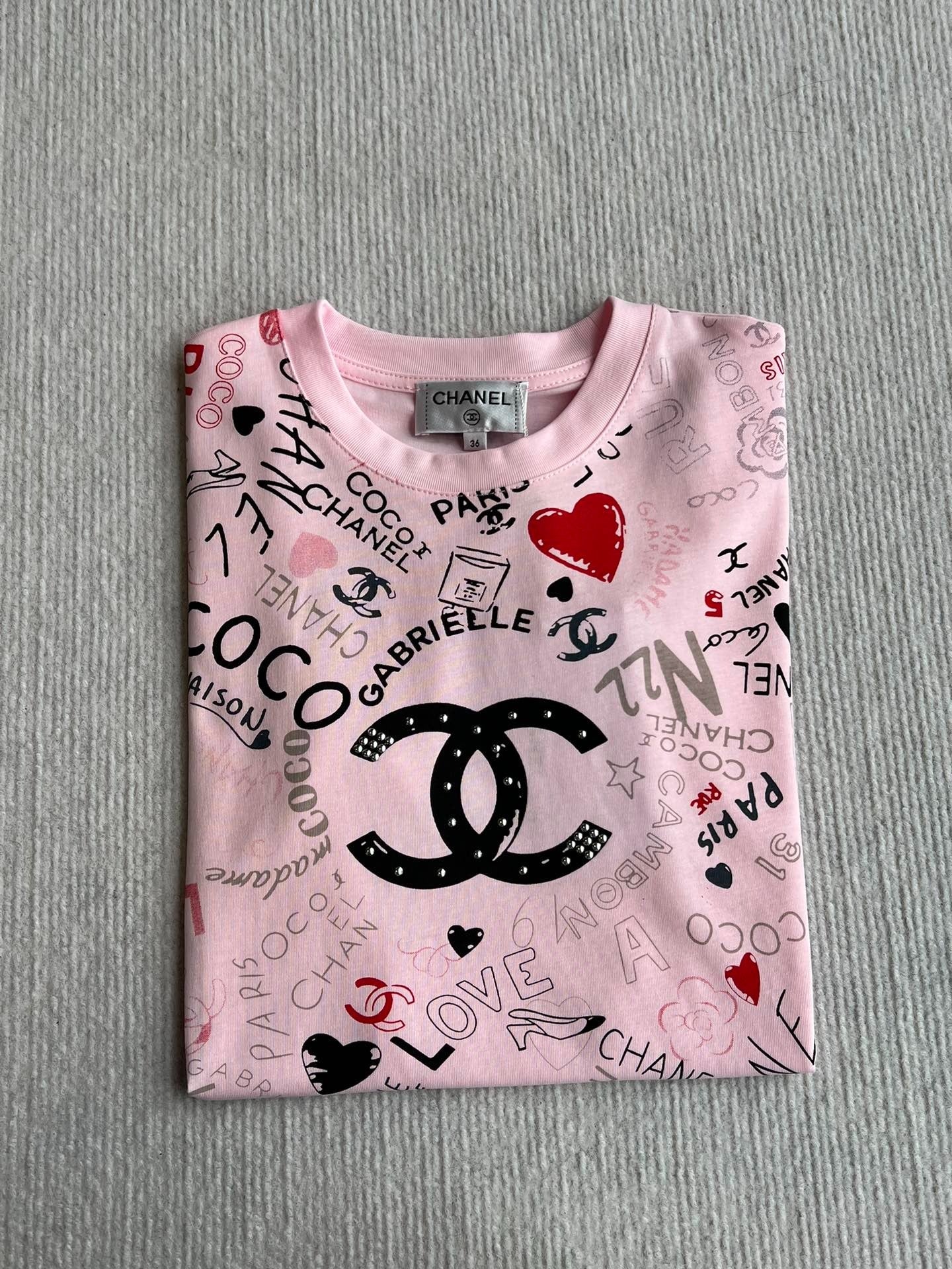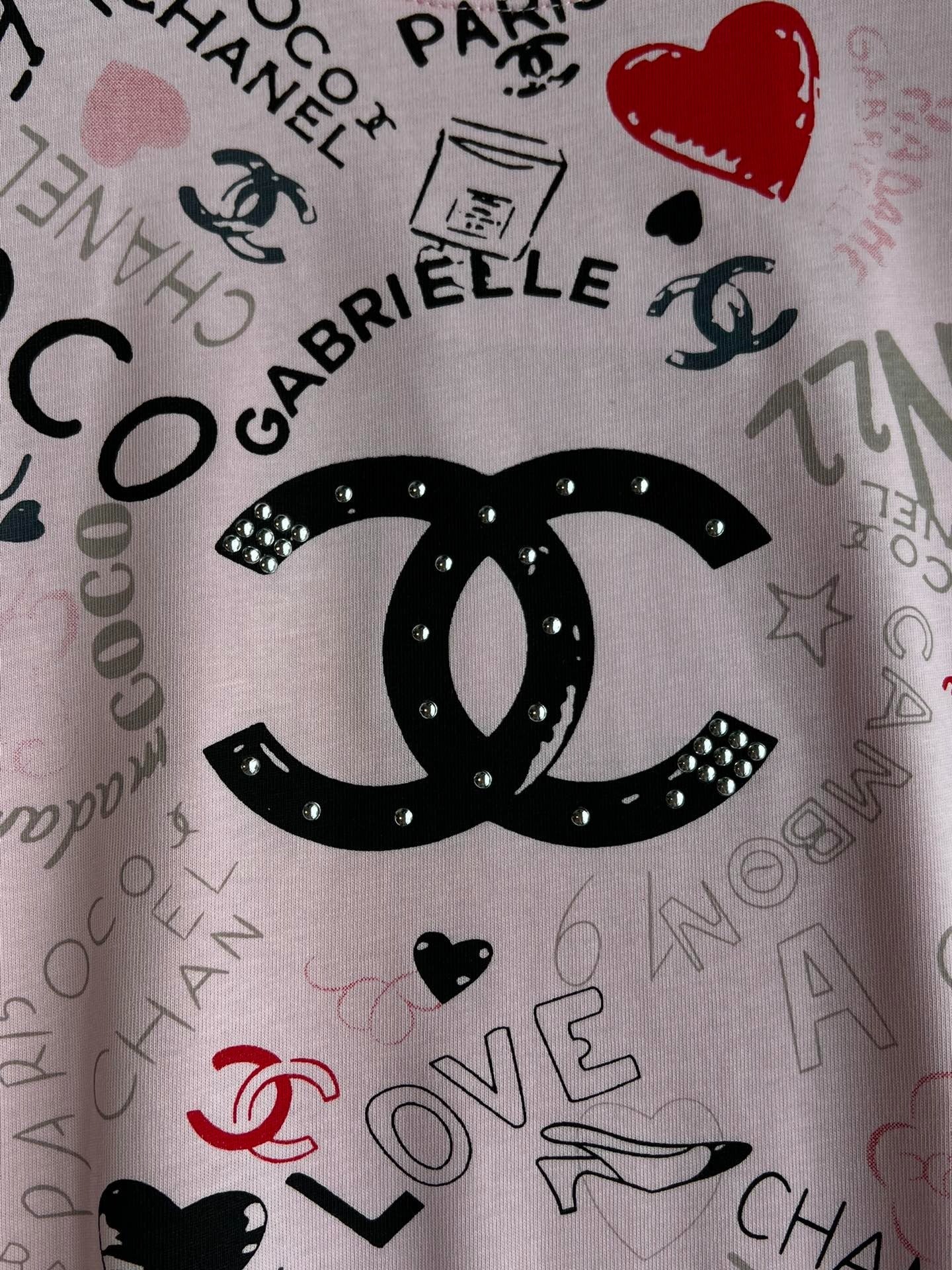 CHANEL PINK LOGO PRINT T-SHIRT