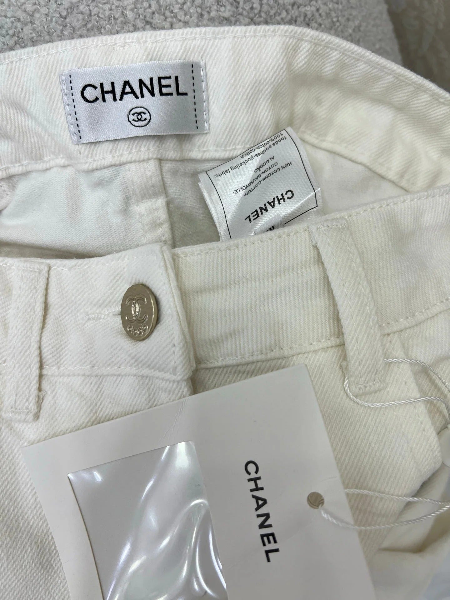 CHANEL PLAIN WHITE DENIM PANTS 275041