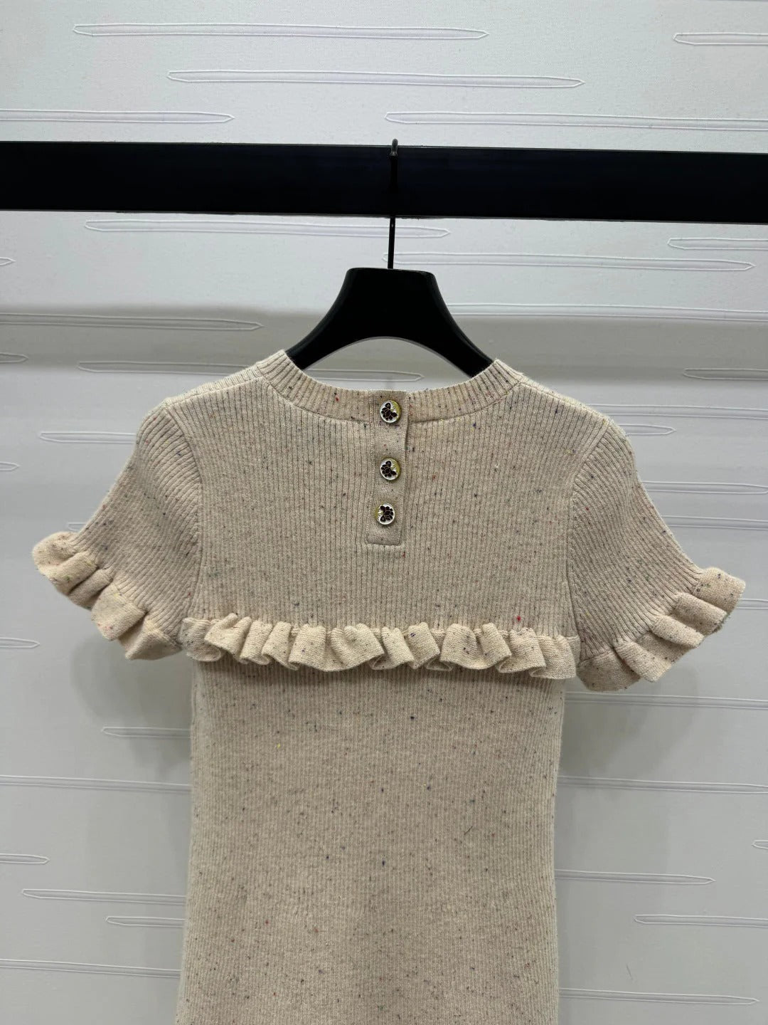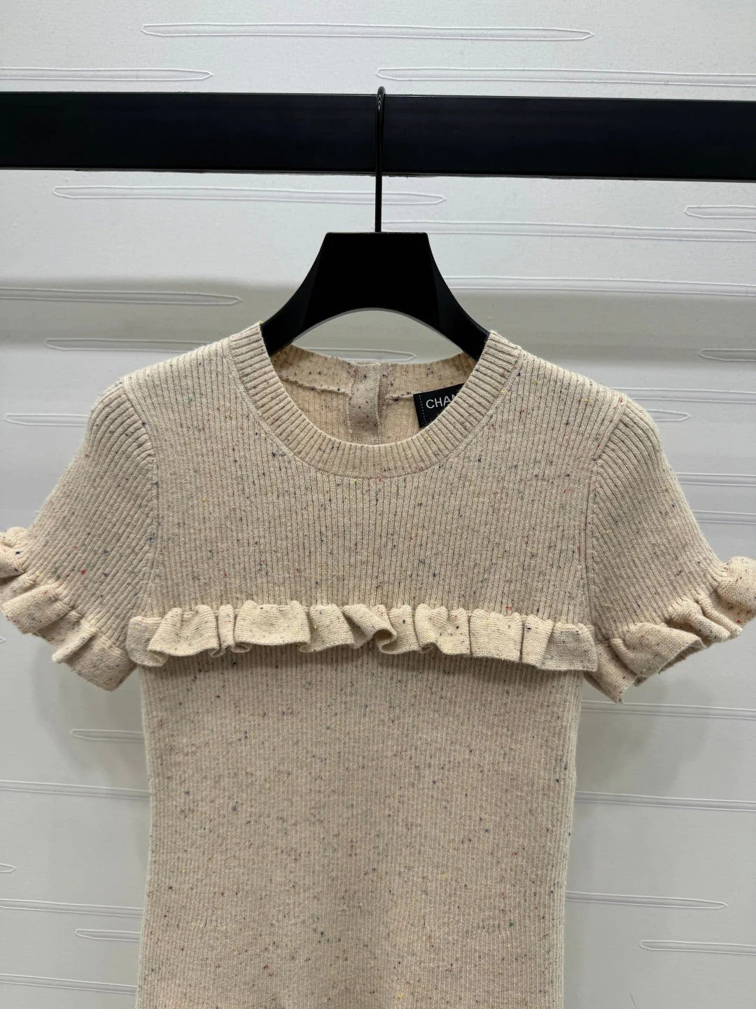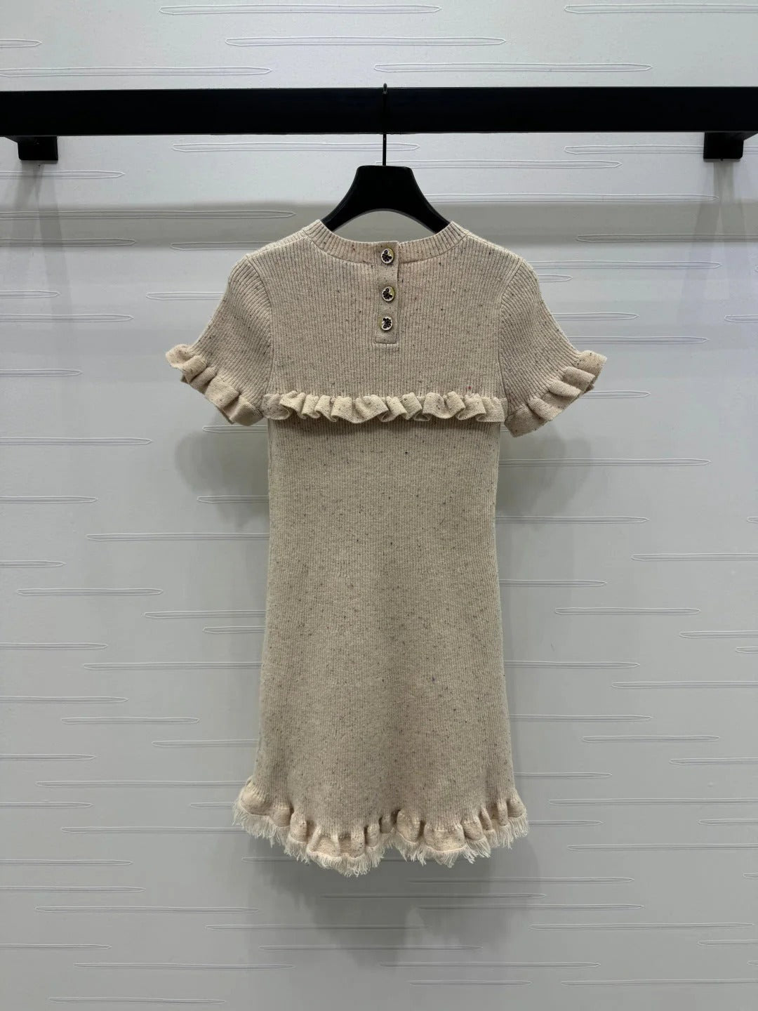 CHANEL SHORT-SLEEVE KNIT DRESS WITH RUFFLED TRIMS 274885