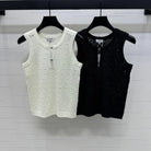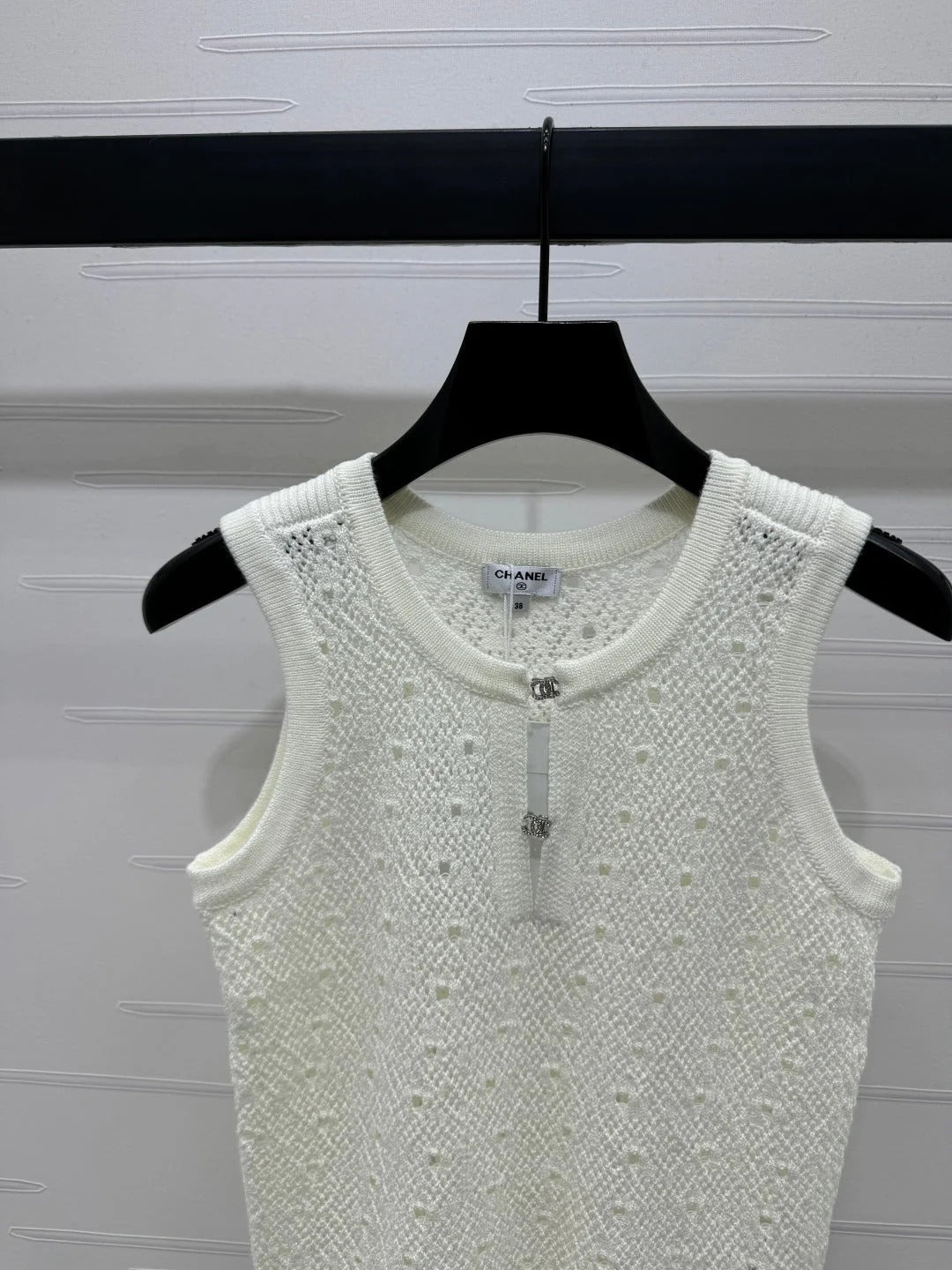 CHANEL SHORT-SLEEVE OPEN-KNIT TOP 274861